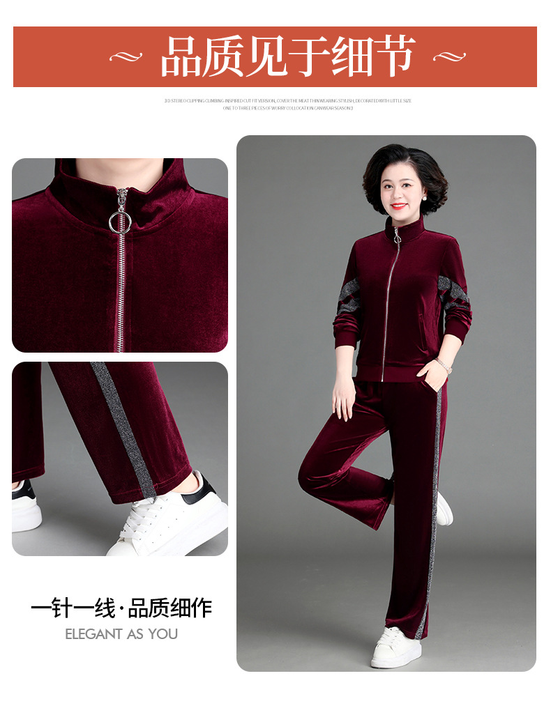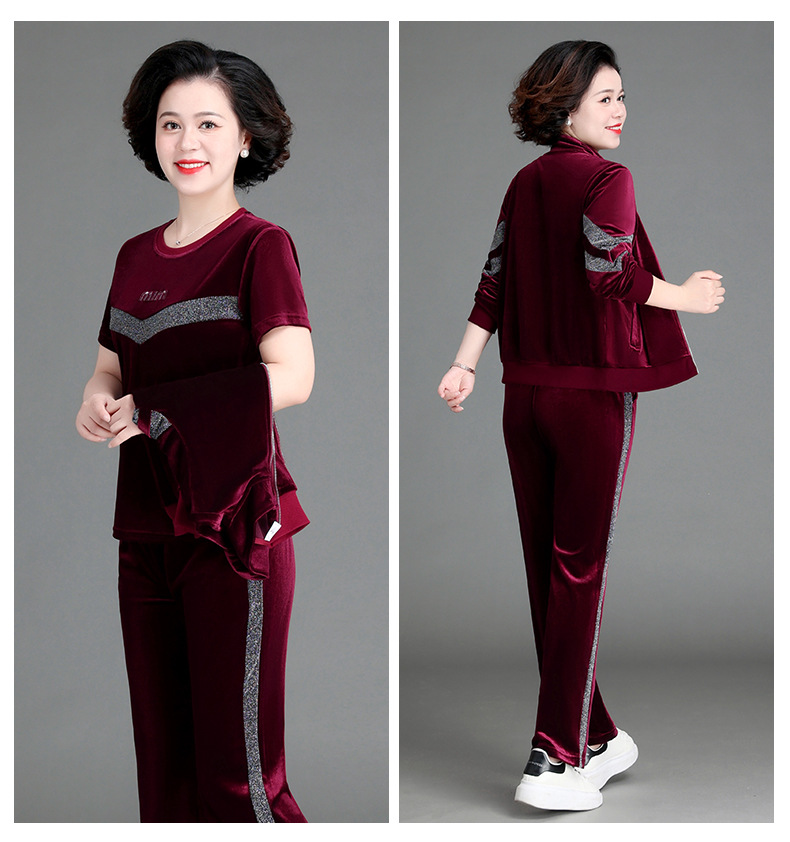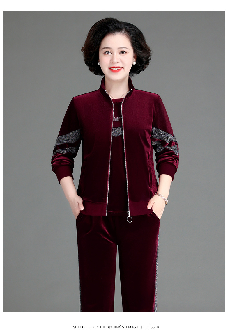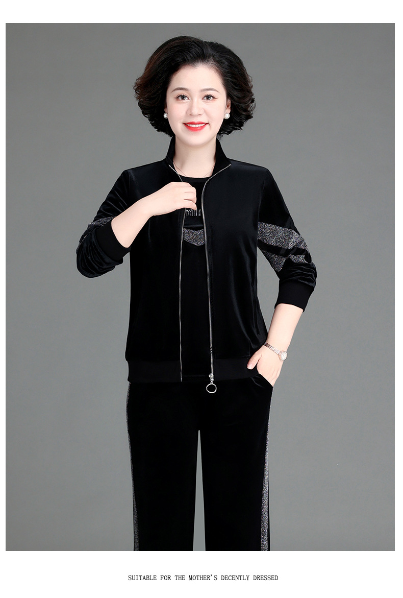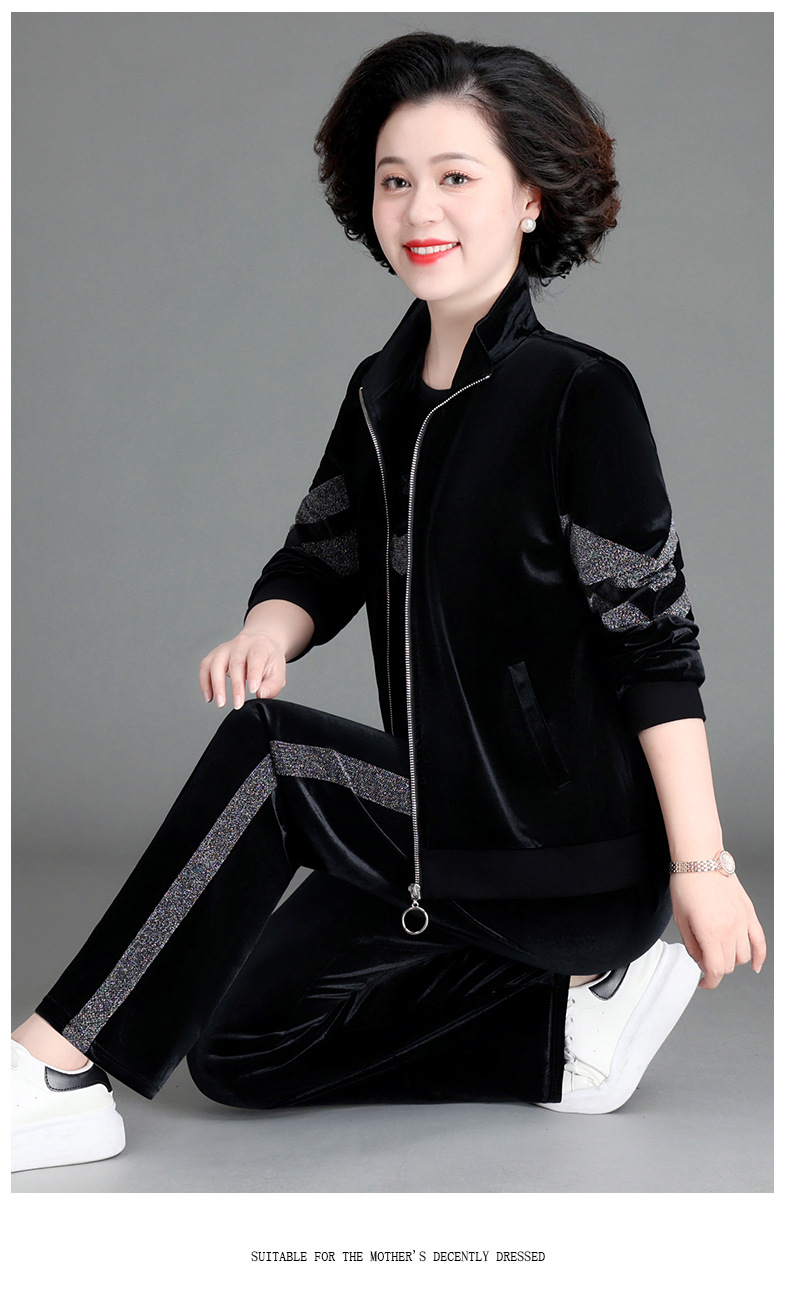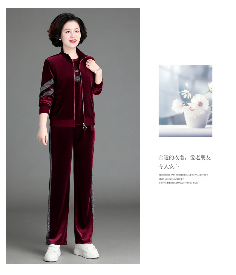 妈妈秋装外套洋气金丝绒休闲运动服三件套装ZB-XH213088