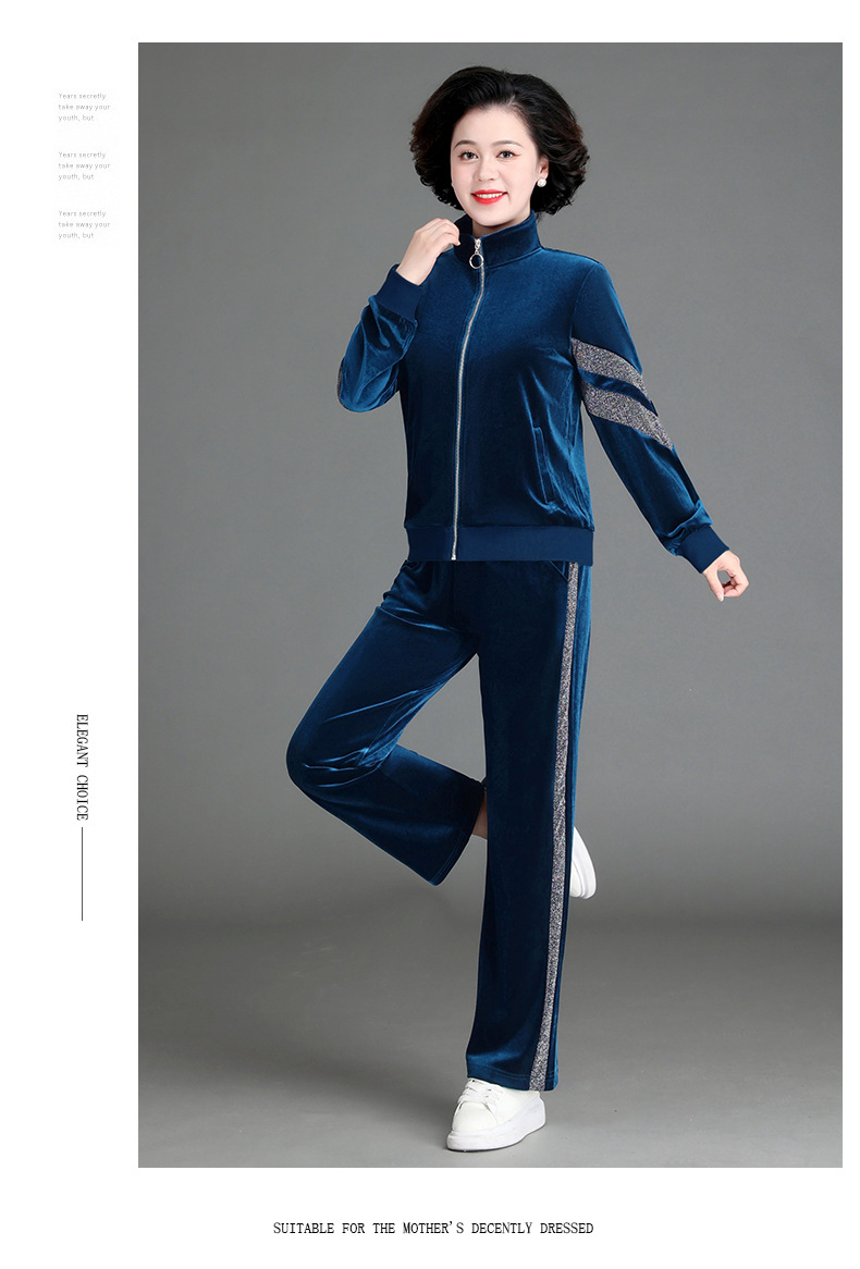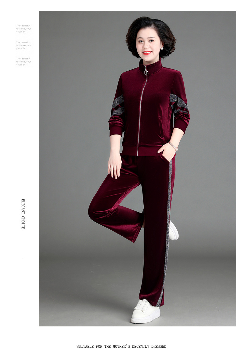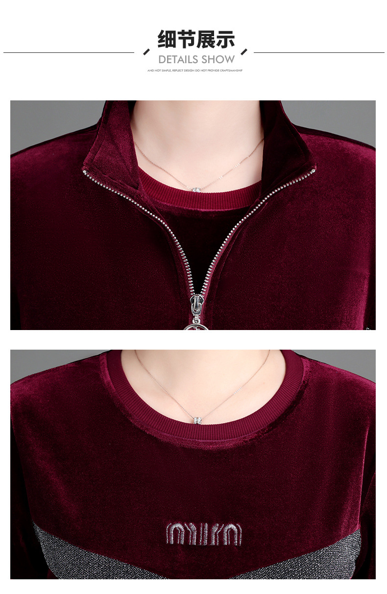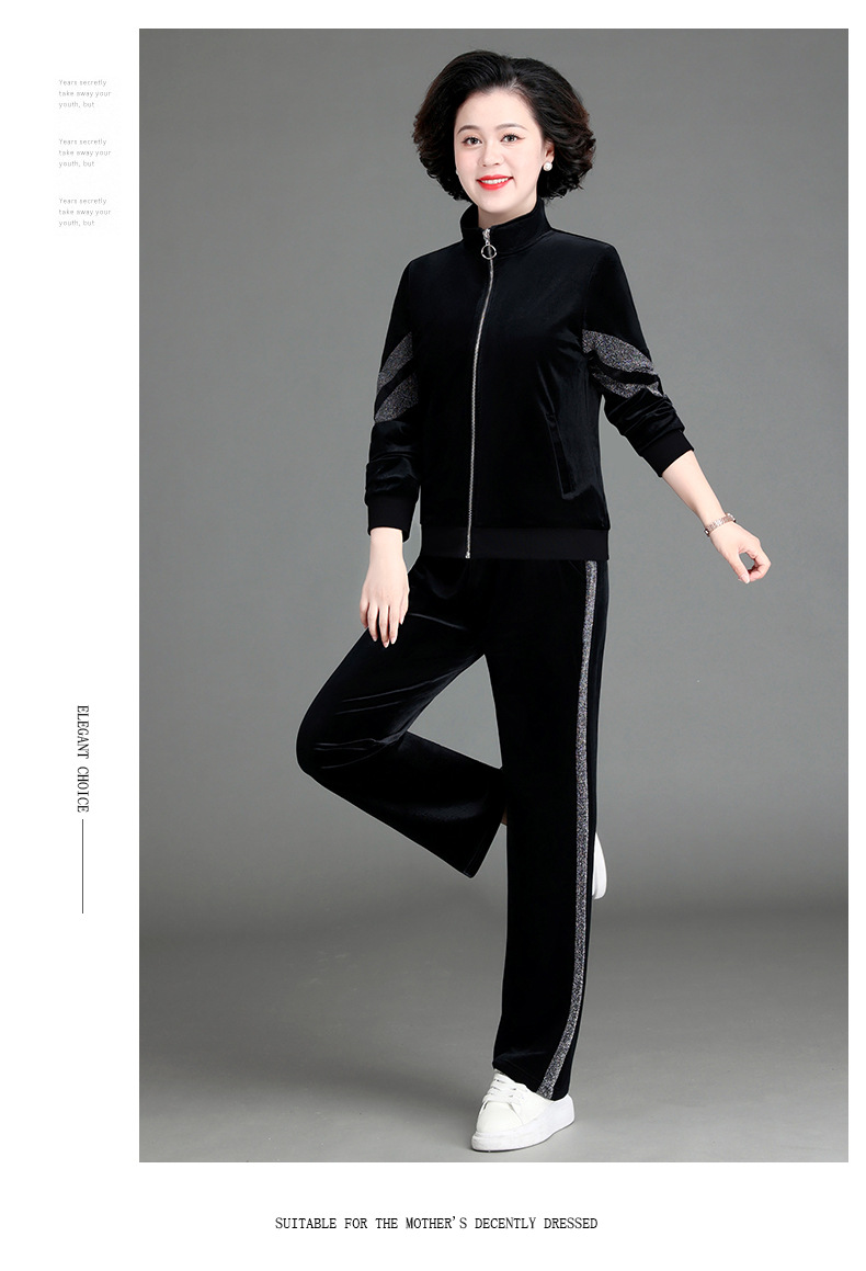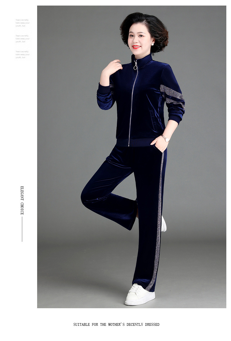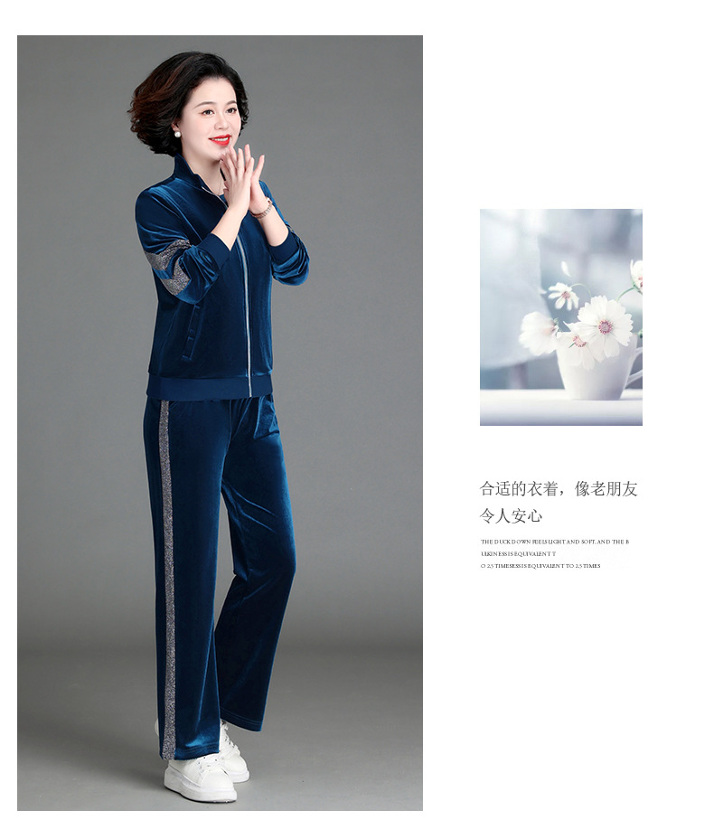 妈妈秋装外套洋气金丝绒休闲运动服三件套装ZB-XH213088