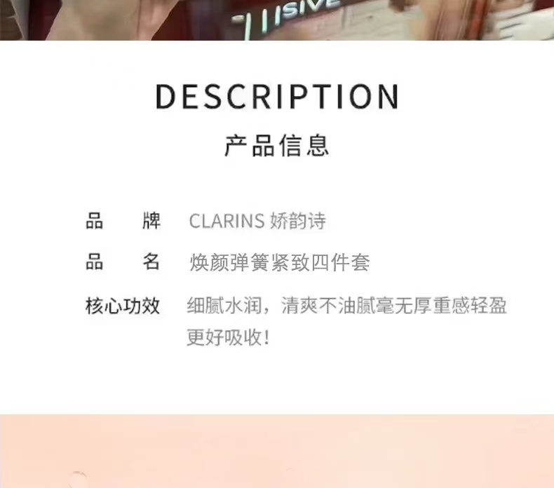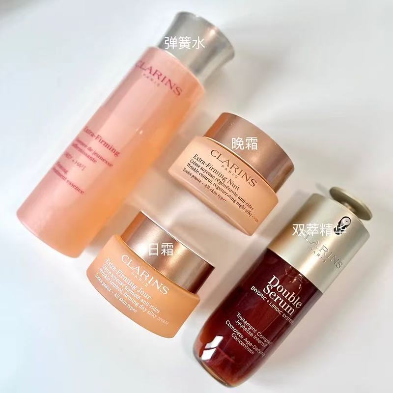 【双12抢先购 限时特惠】法国 Clarins娇韵诗弹簧四件套(弹簧水200ml双萃精华50ml日霜50ml晚霜50ml)送礼盒礼袋