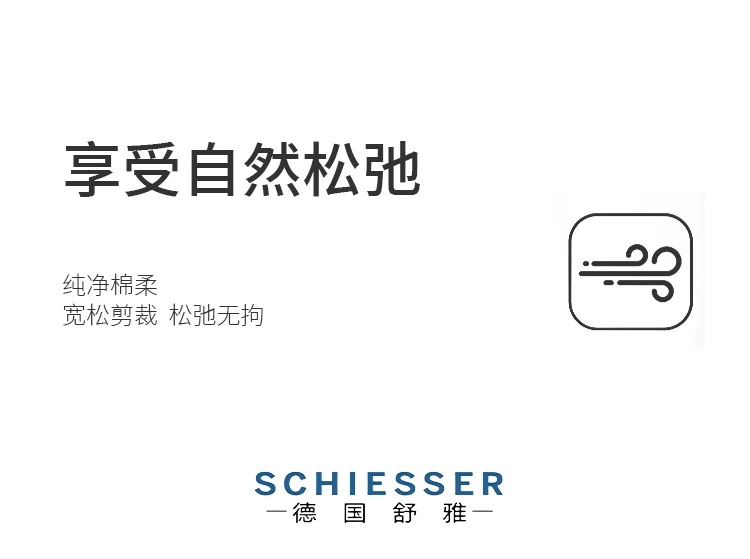 - 来自德国的SCHIESSER舒雅,专注做内衣一百四十余年,不遗余力的材料创新,因材而异的专业剪裁,健康环保的加工技术以及充满文化关注的时尚主题,做你认识之外的舒适内衣。