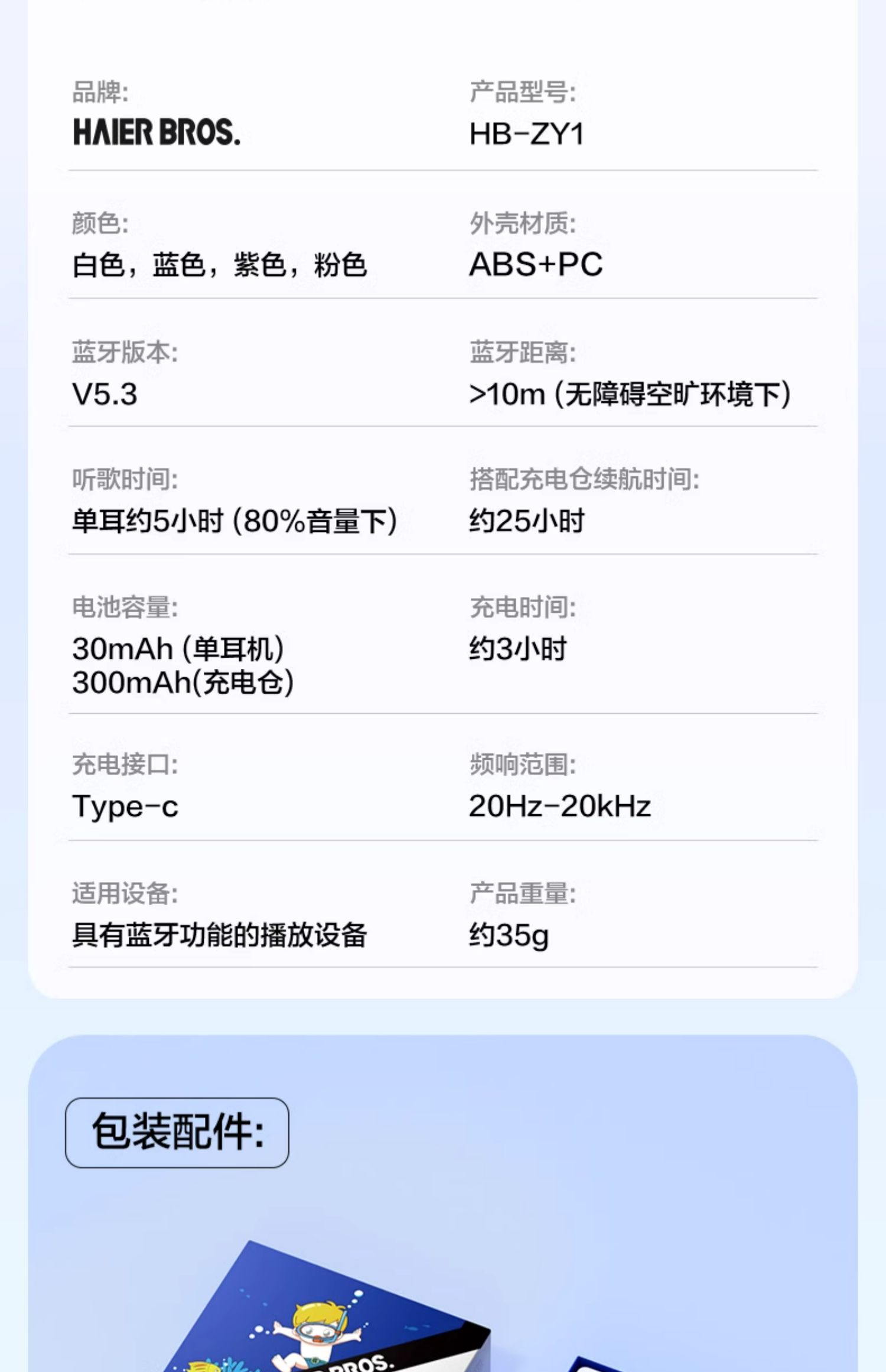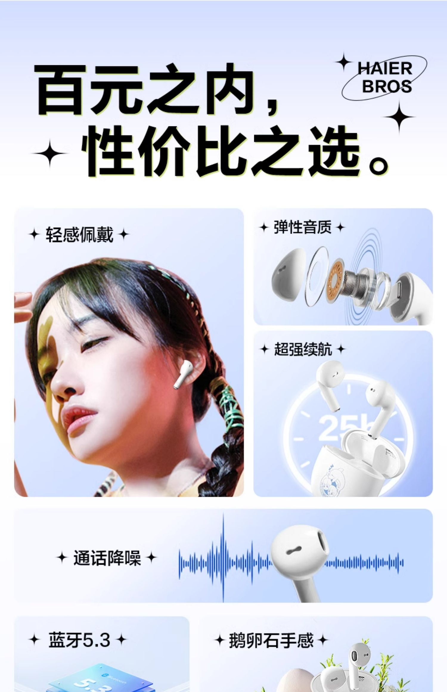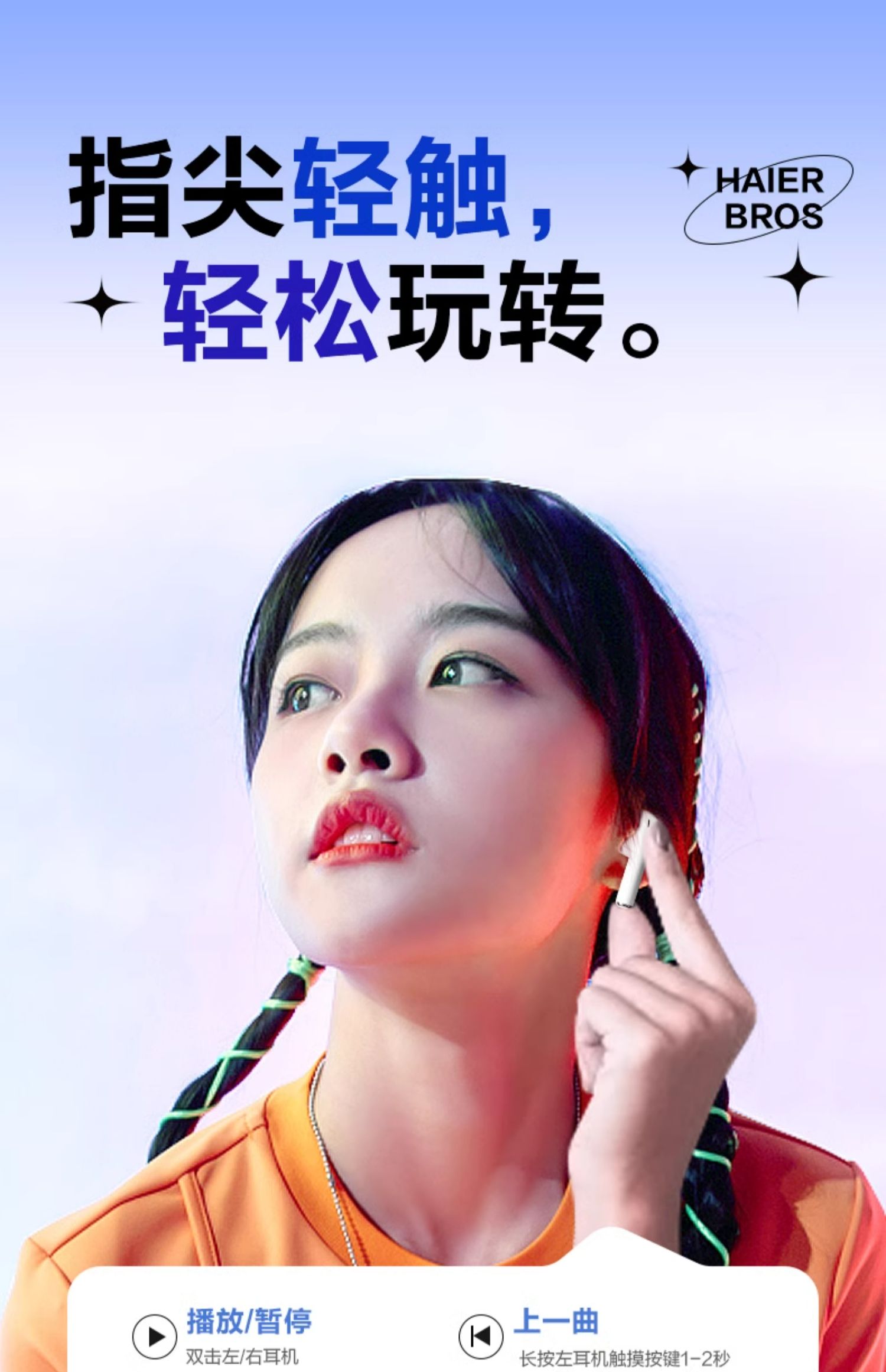 海尔兄弟蓝牙耳机真无线半入耳式2023新款高品质适用苹果华为降噪ZY1