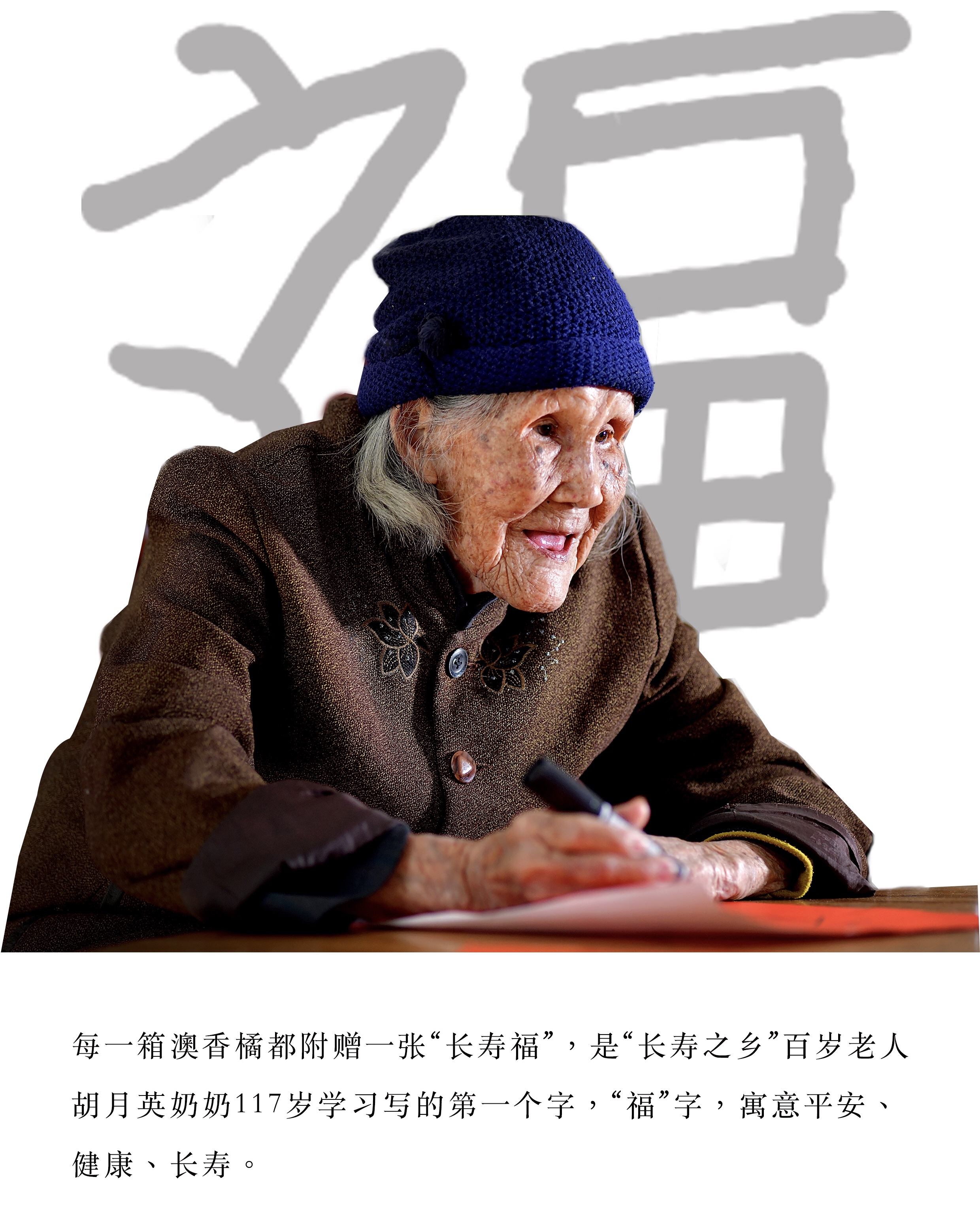 我们邀请了世界最长寿的昭平的117岁胡月英奶奶为澳香橘为大家写下她人生中学习的第一个字∶一个福字。