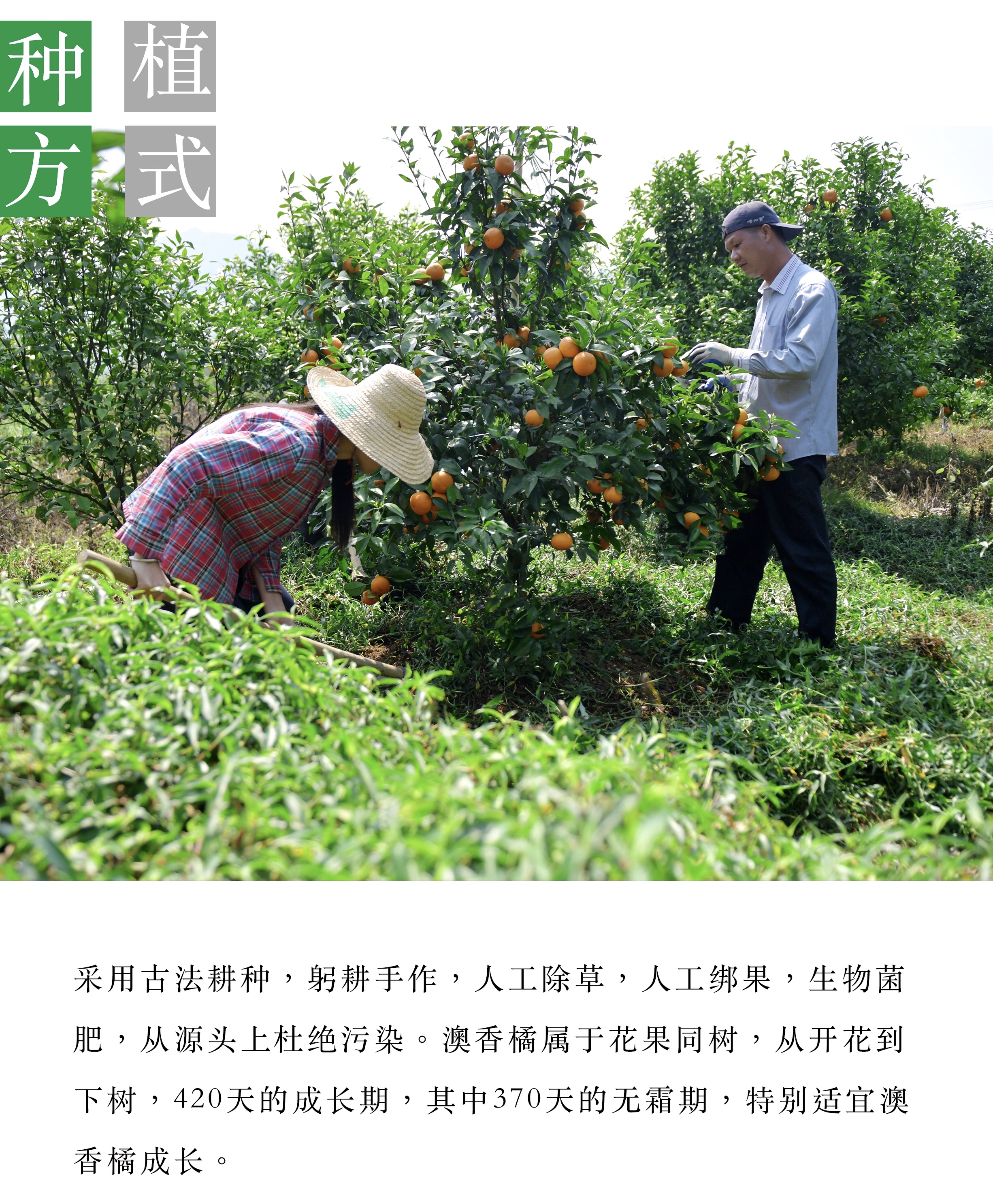 【食用方法】树上自然熟,不打蜡不增甜,口感已上来,年前风味9甜带1酸,糖度15-16度,3月-5月18度-20度。爽口美味,剥皮直接食用即可