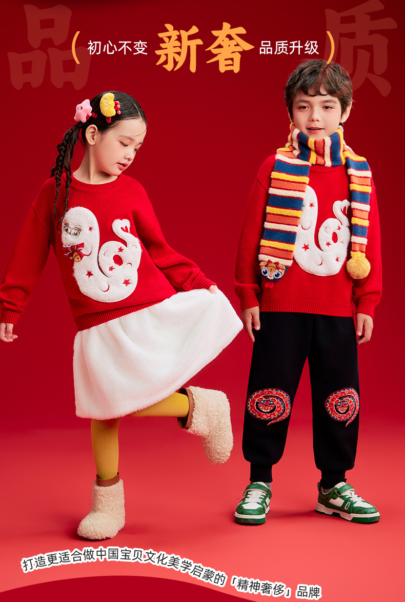 【机灵姐联名款】年衣童装儿童毛衣女款新款冬季中国风宝宝针织衫毛衫拜年服机灵蛇毛衣
