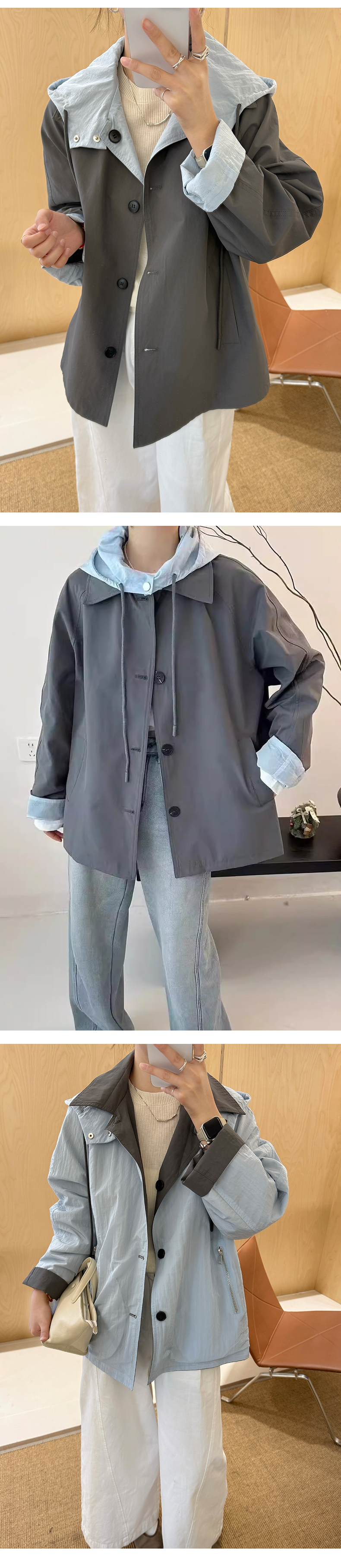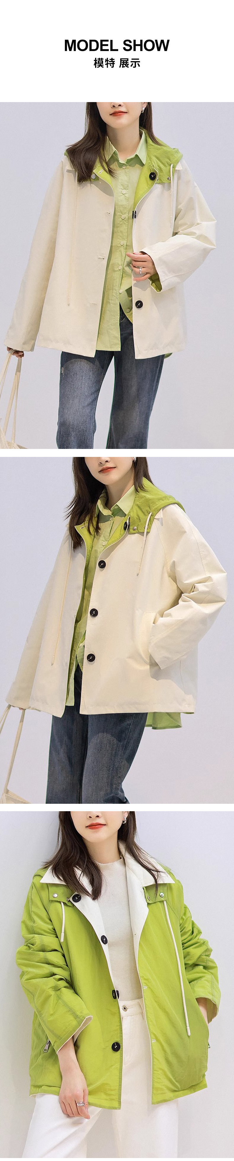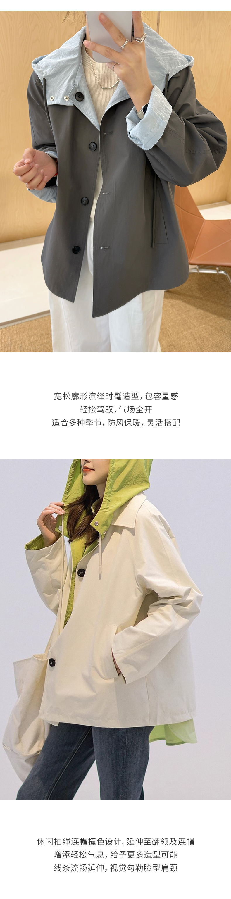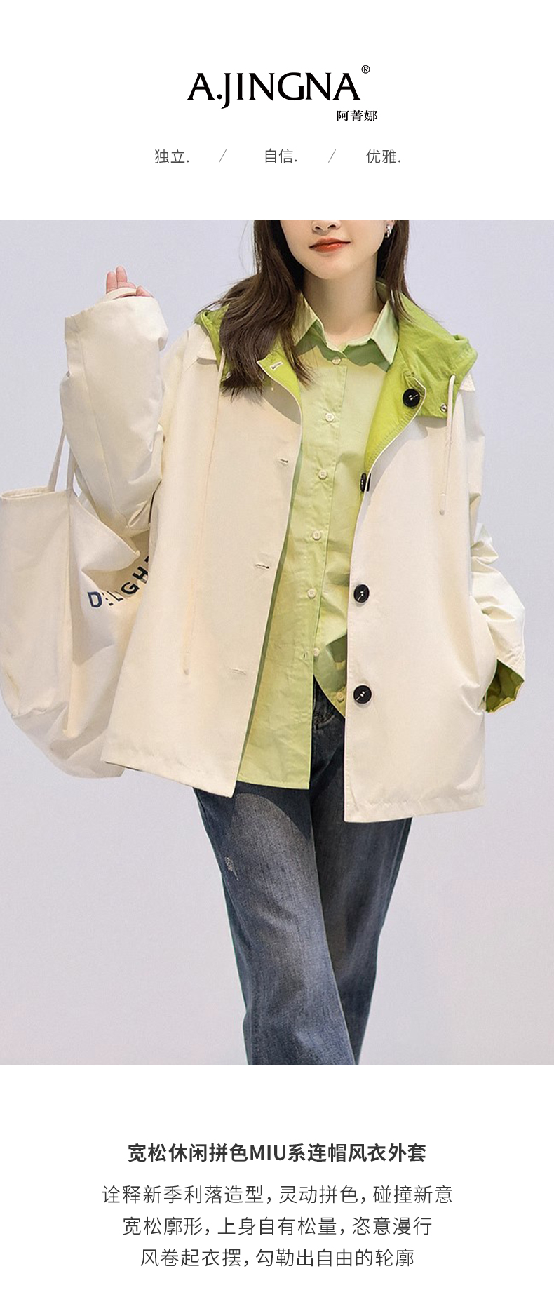【随性洒脱】阿菁娜宽松休闲拼色miu系连帽风衣外套F30C205005