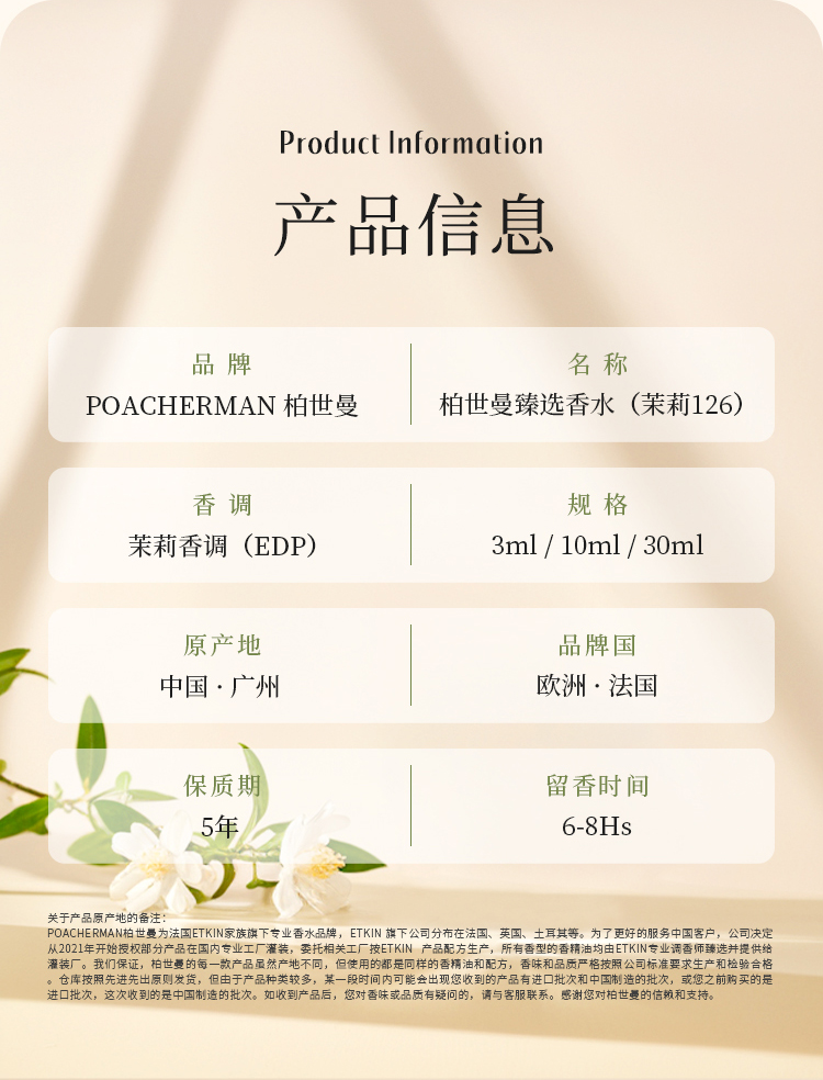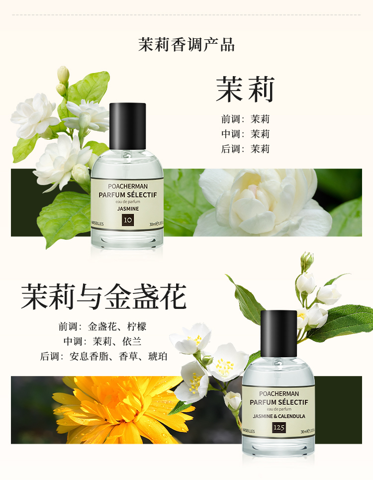 柏世曼126号茉莉香水 天然花香调甜美茉莉花淡香女士香水持久留香