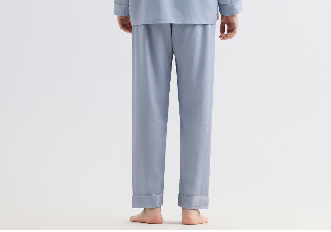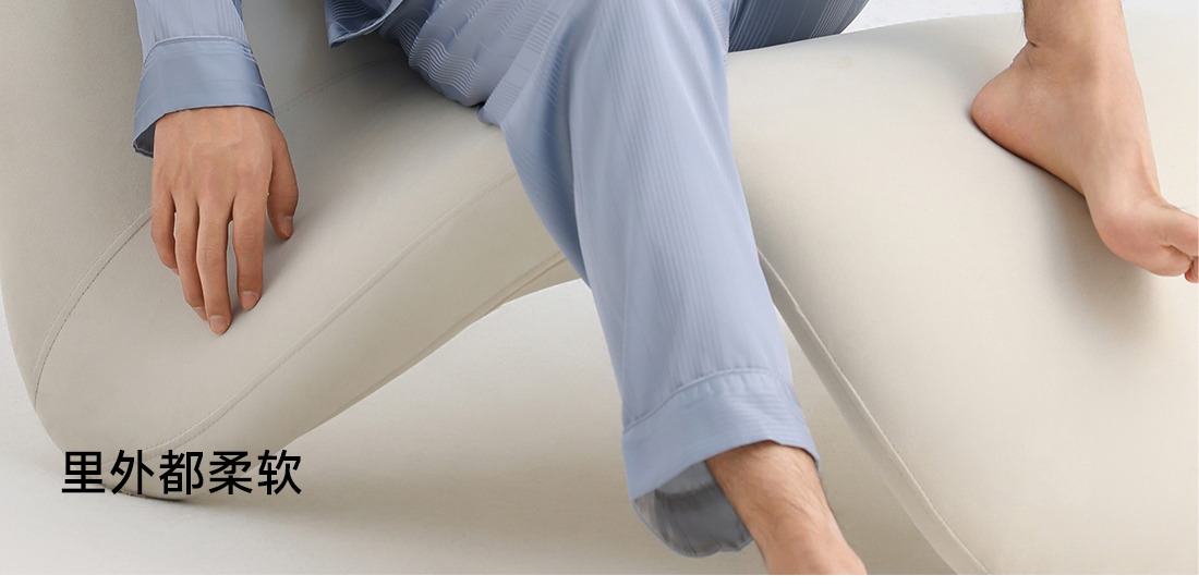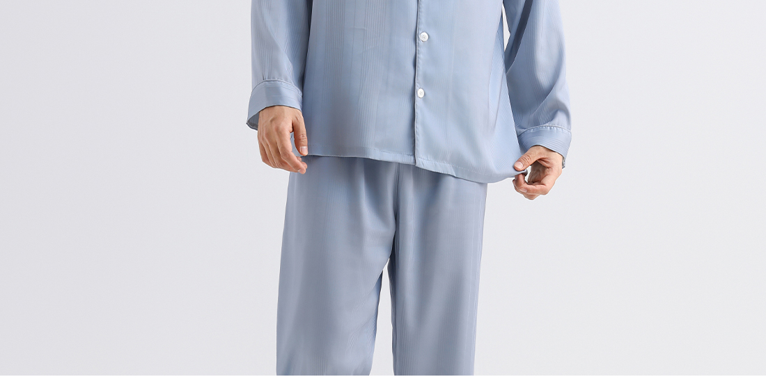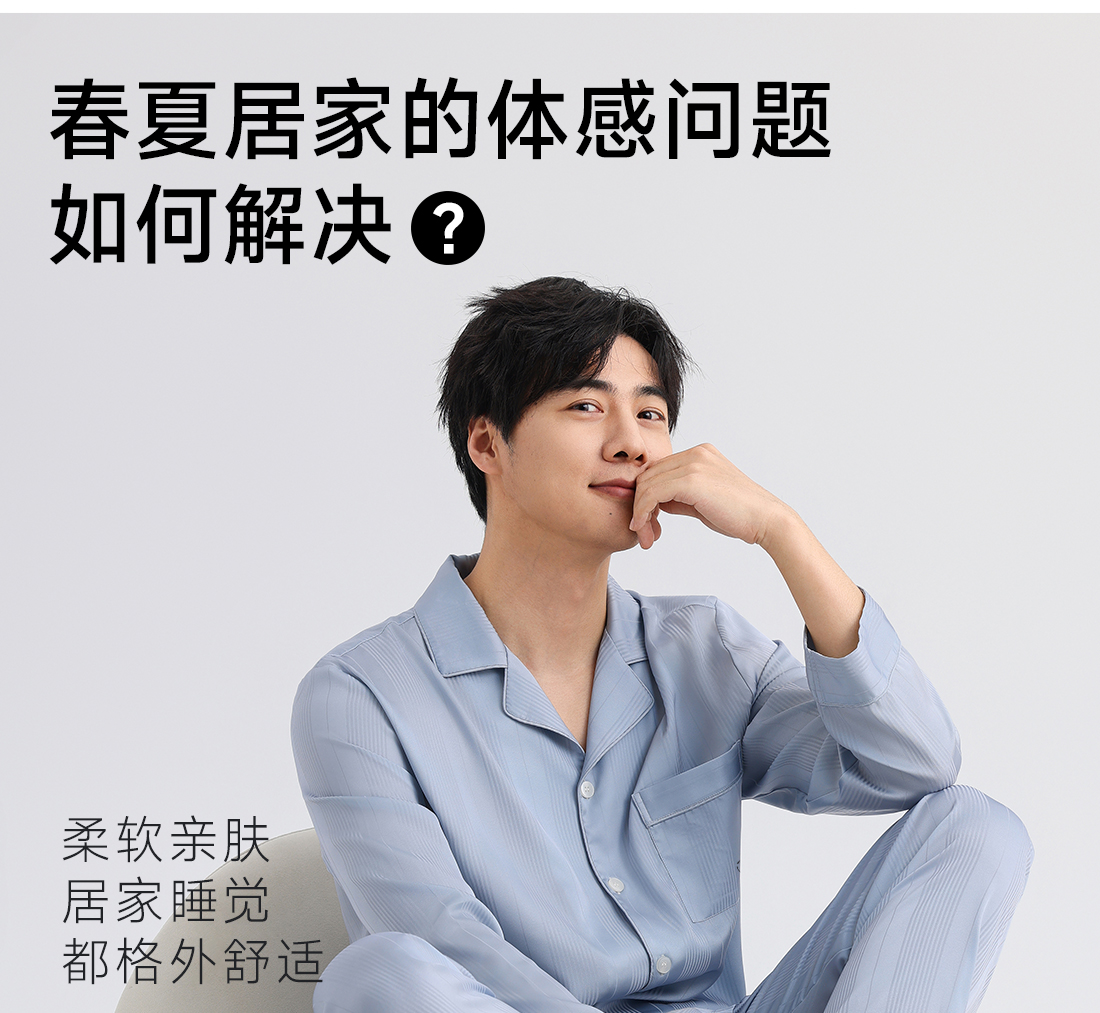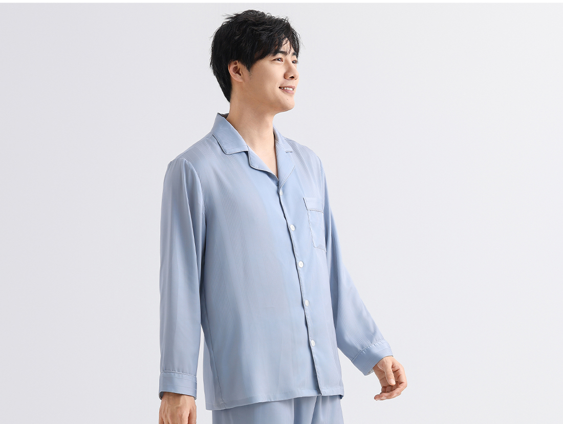 美季美优男士丝质提花刺绣长袖套装