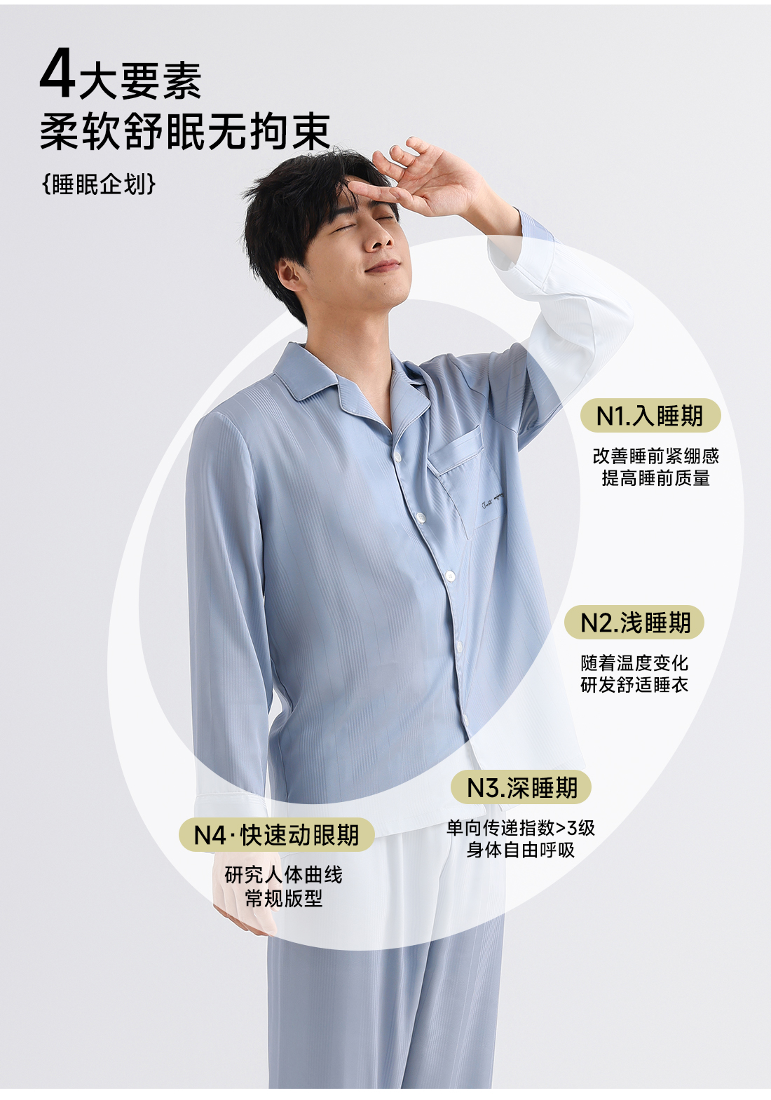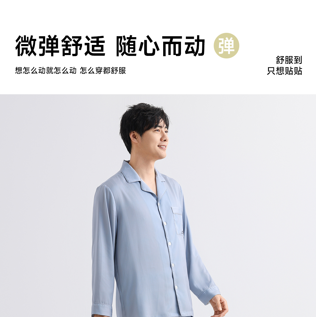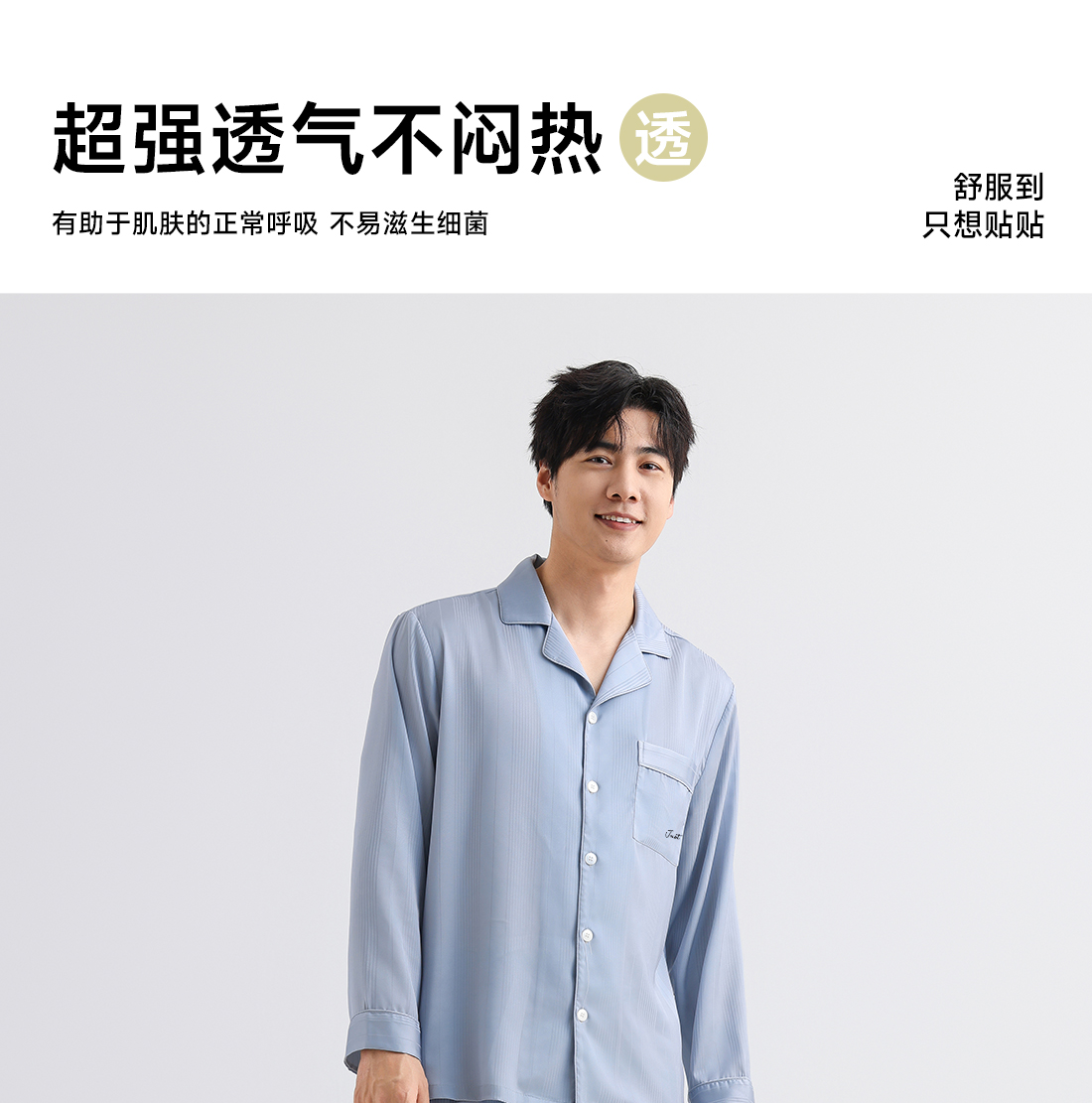美季美优男士丝质提花刺绣长袖套装