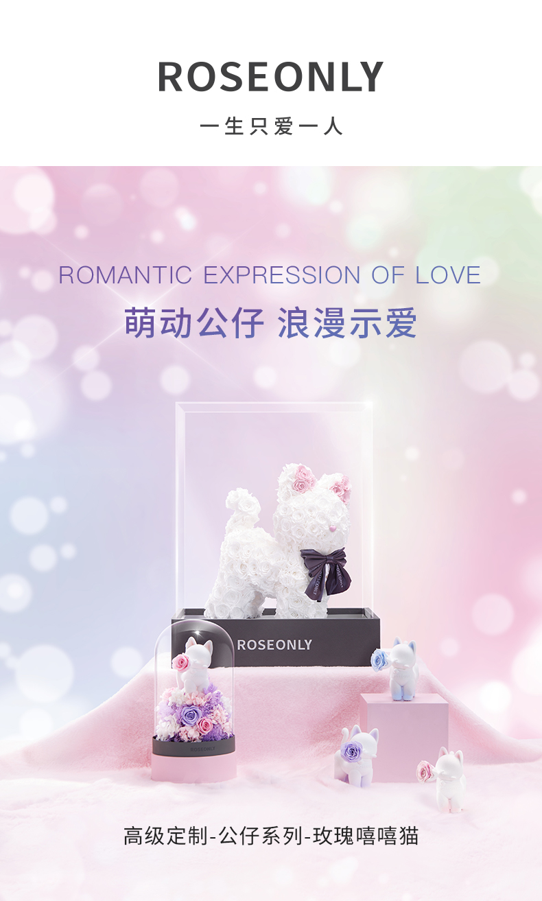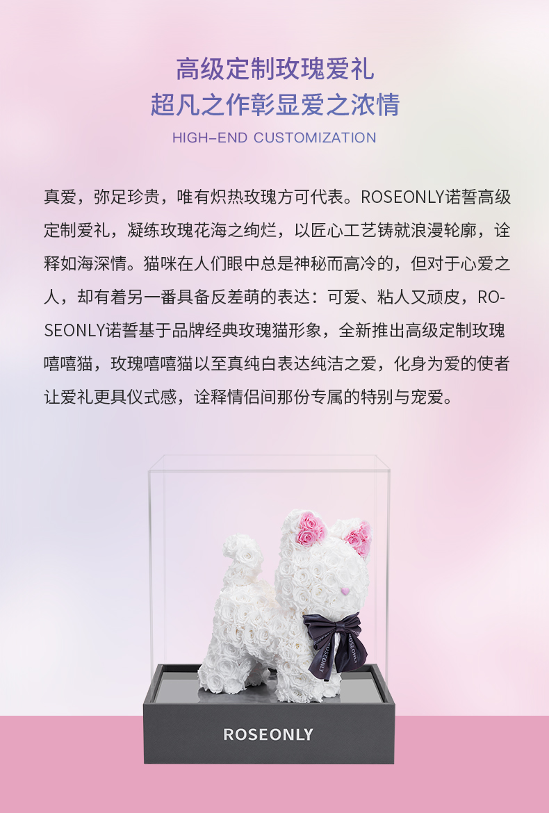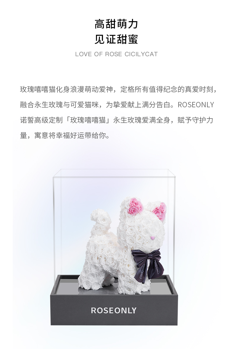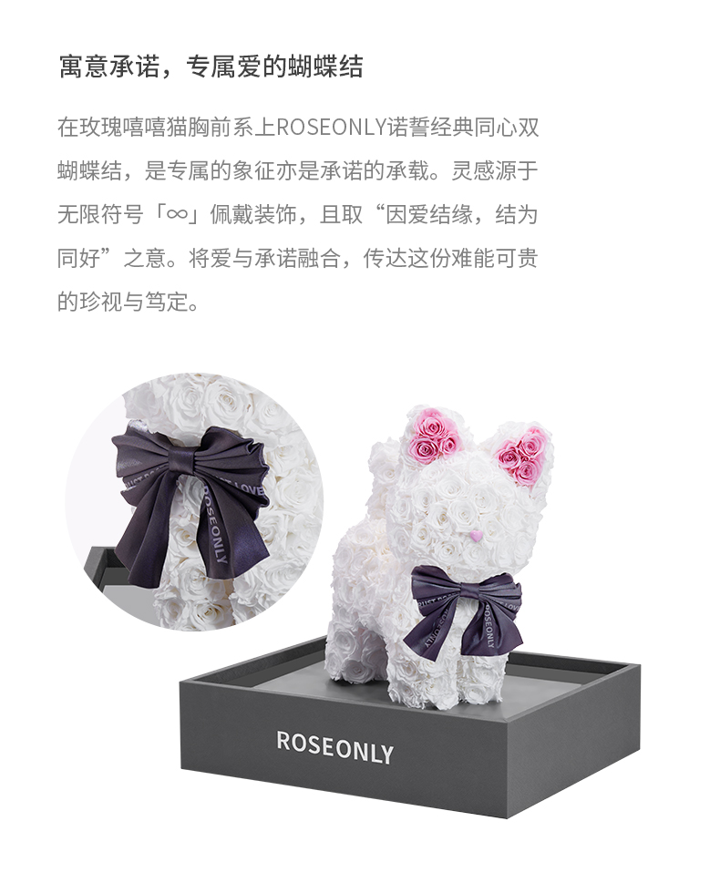 ROSEONLY诺誓 高端定制 永生玫瑰 公仔系列 玫瑰嘻嘻猫 送朋友