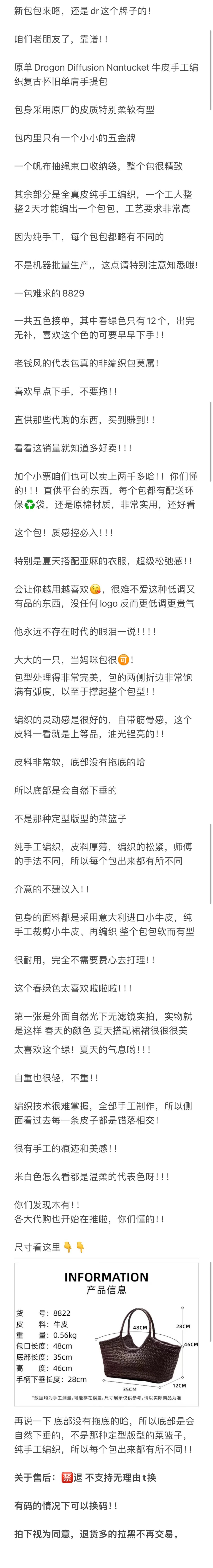 重磅渠道 darg菜篮子编织包 5色入! 纯元渠道26新款 8829编织菜篮子大号