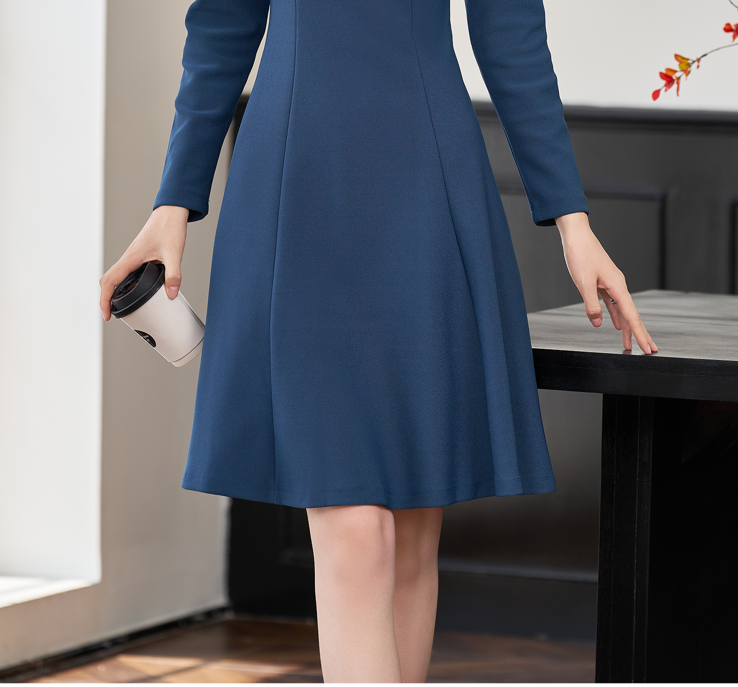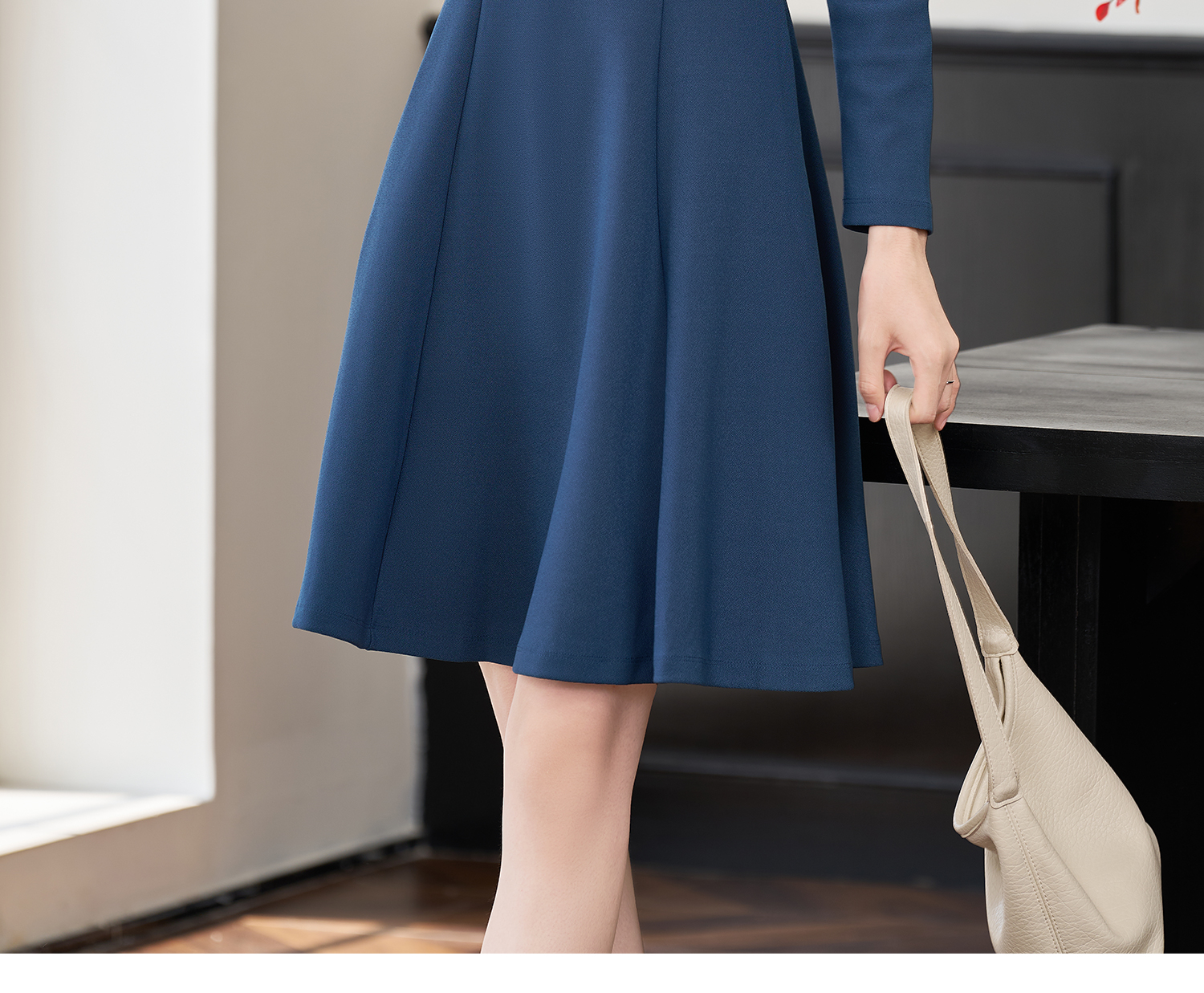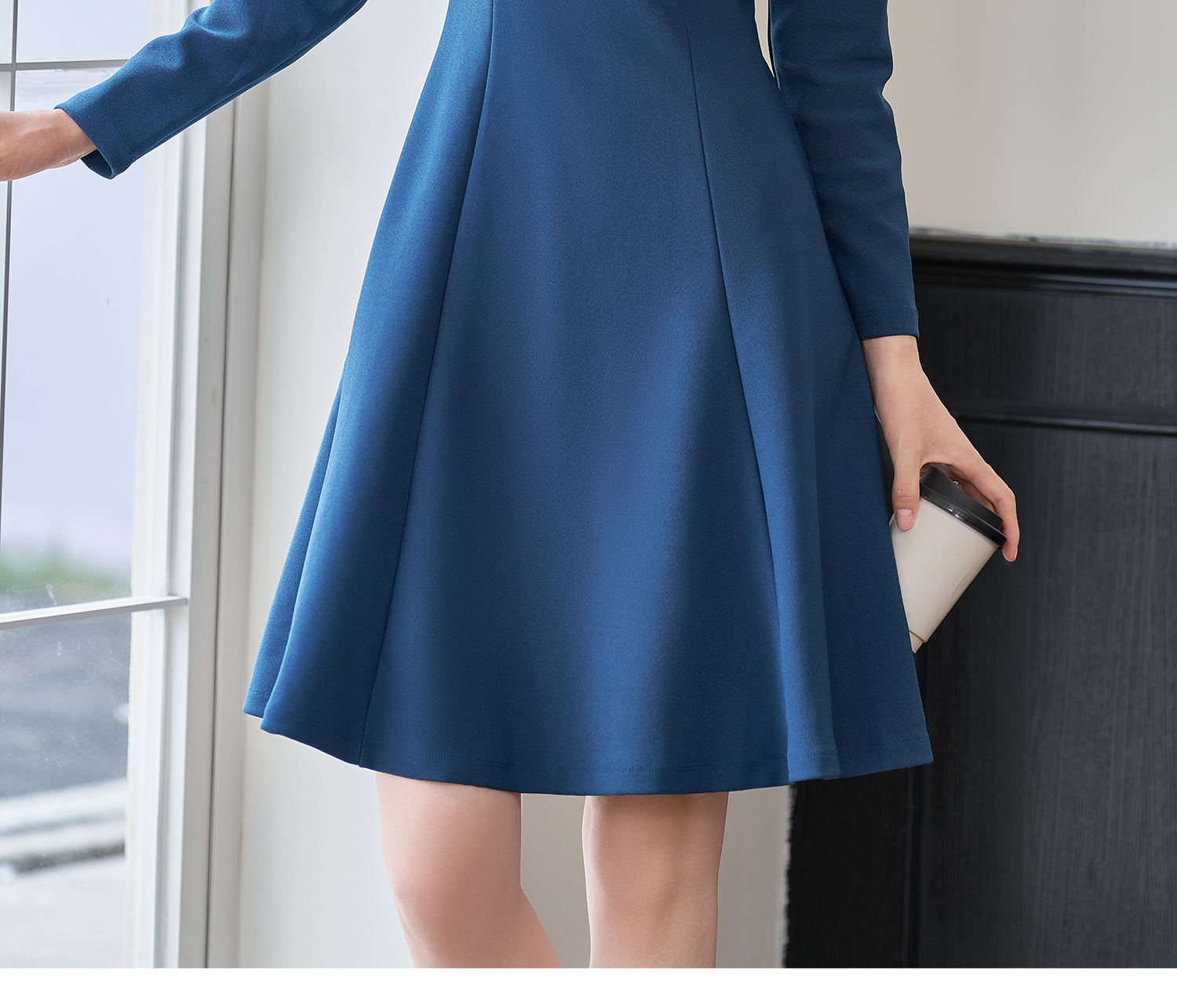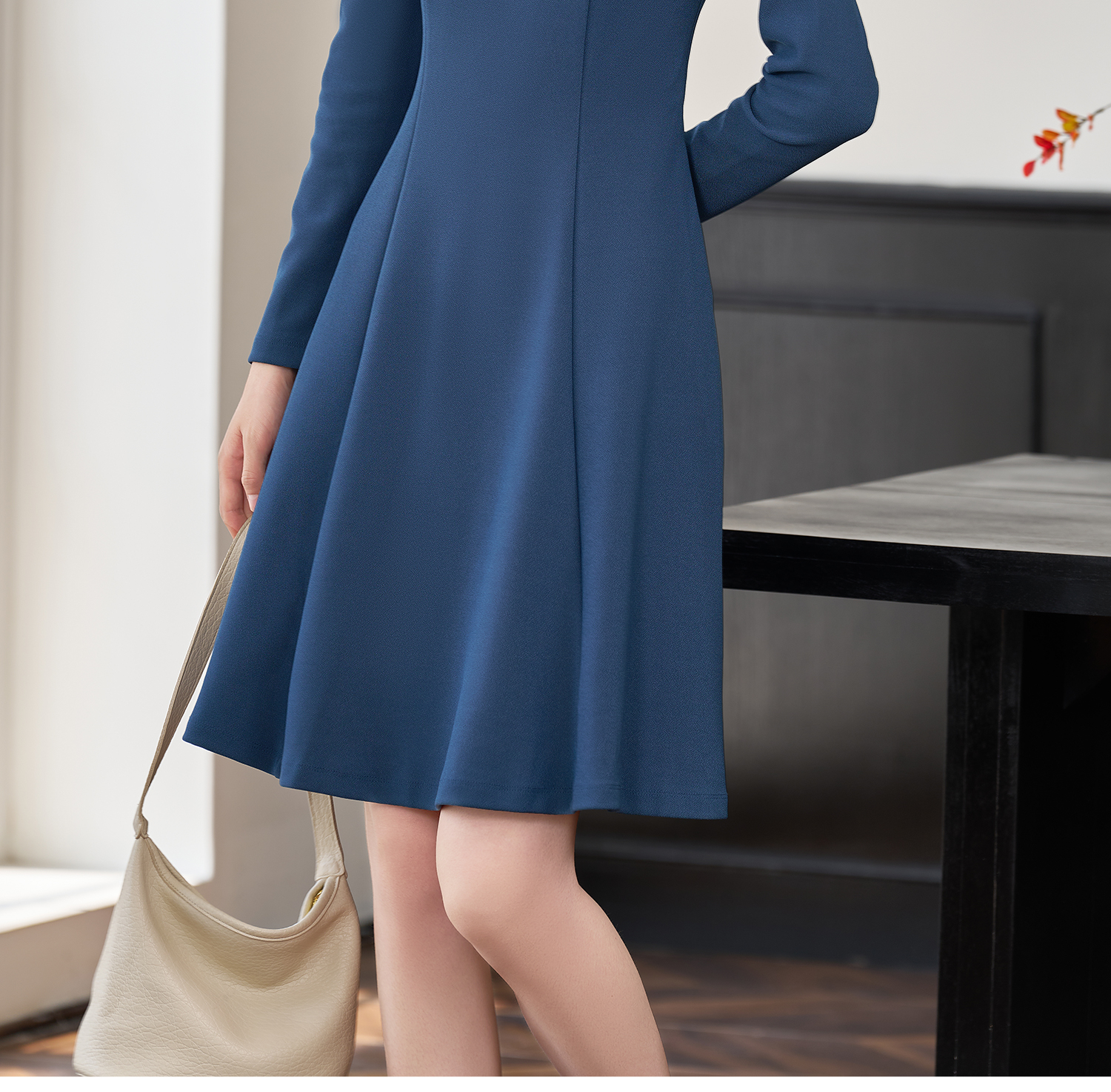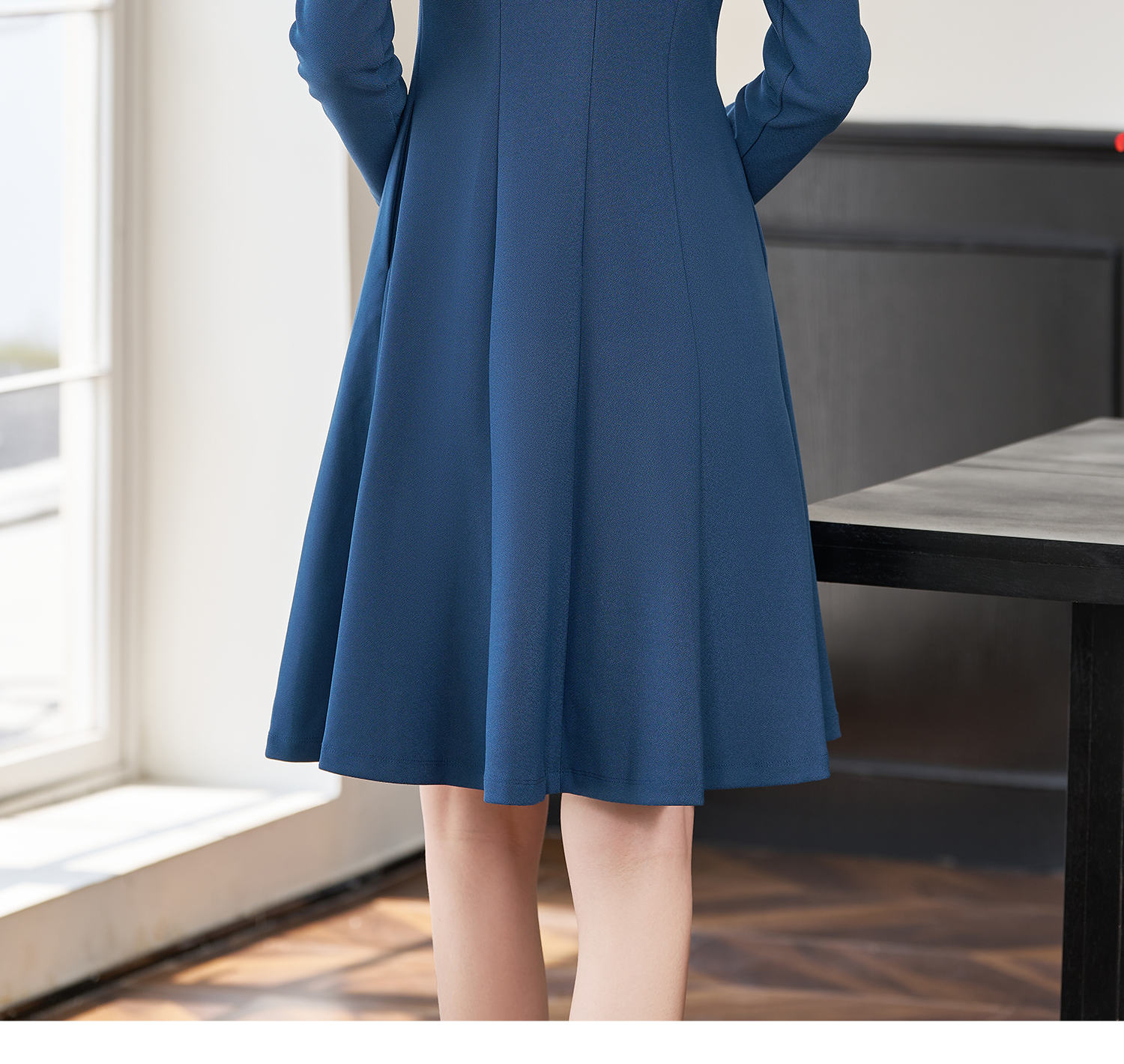 剩XL 简约纯色2026春季修身小众别致长袖大摆裙2101