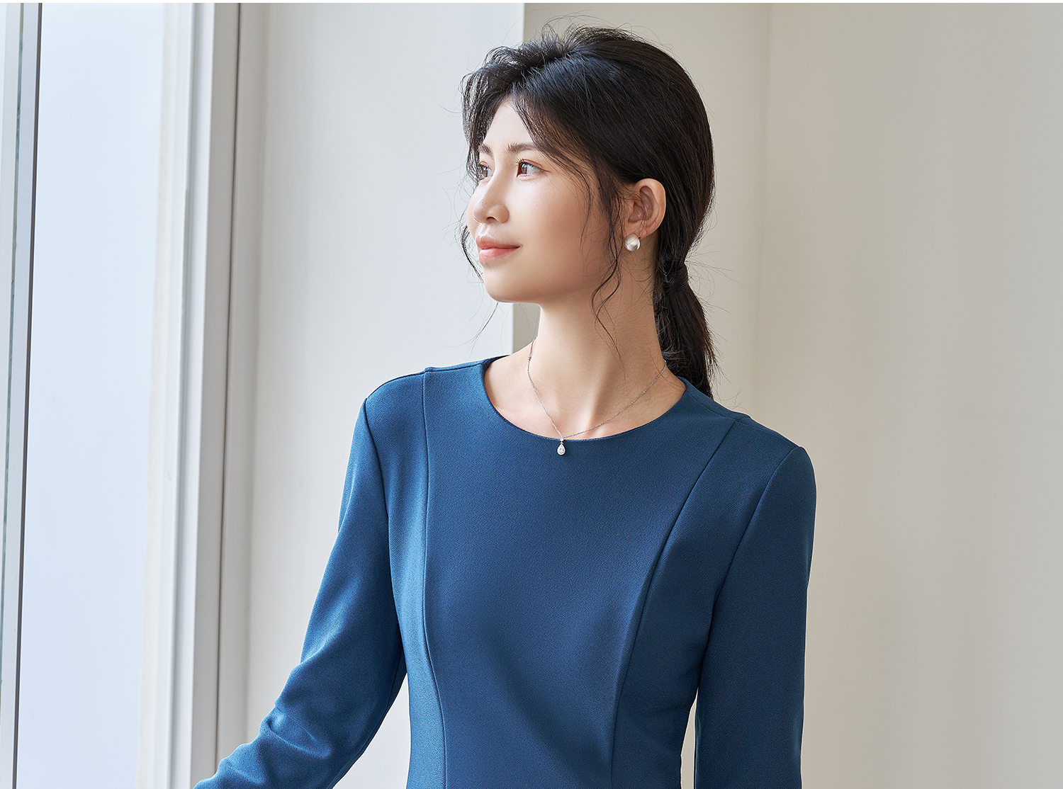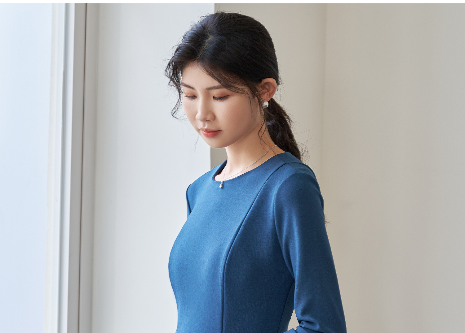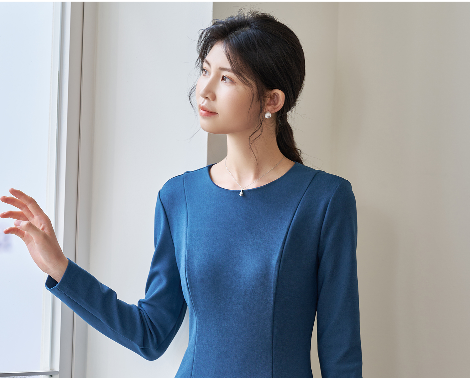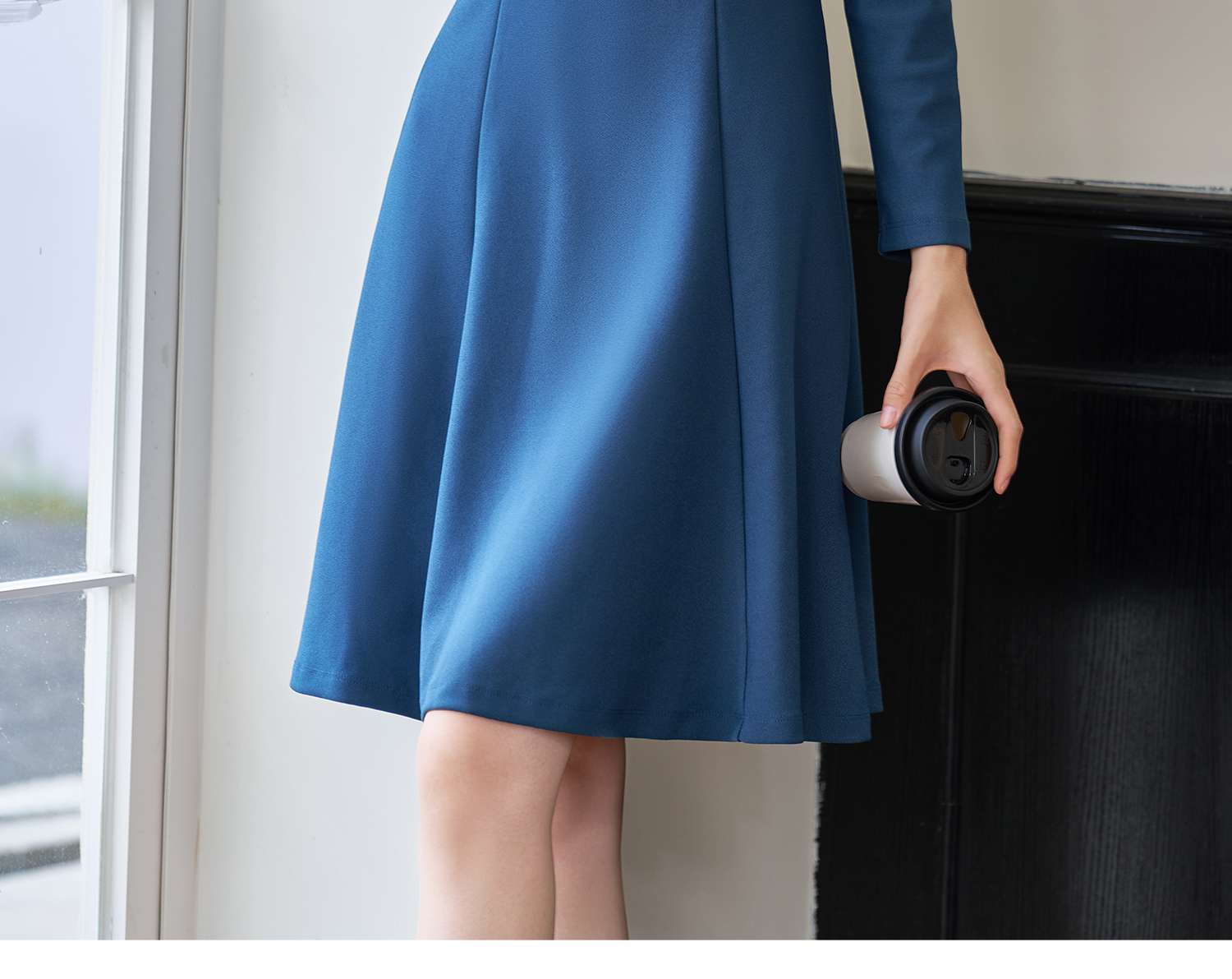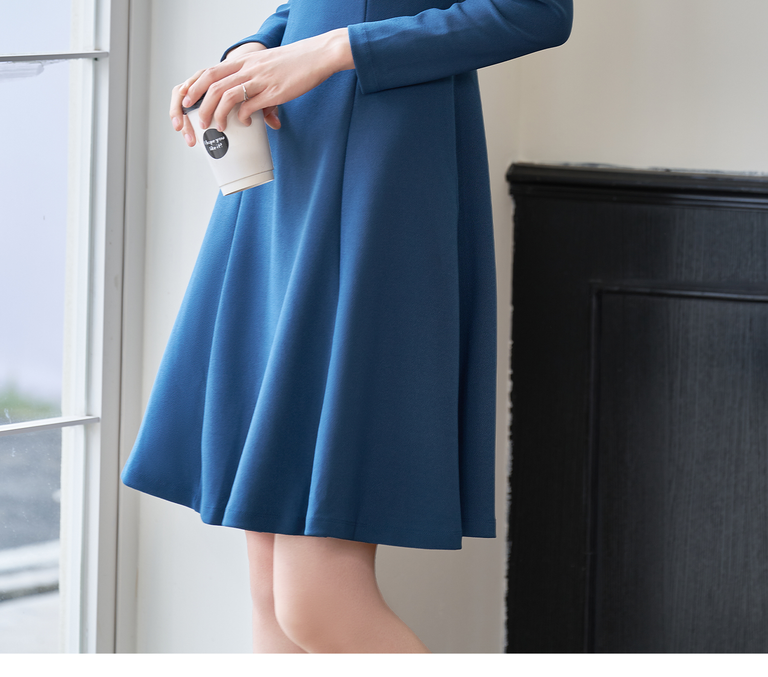 剩XL 简约纯色2026春季修身小众别致长袖大摆裙2101