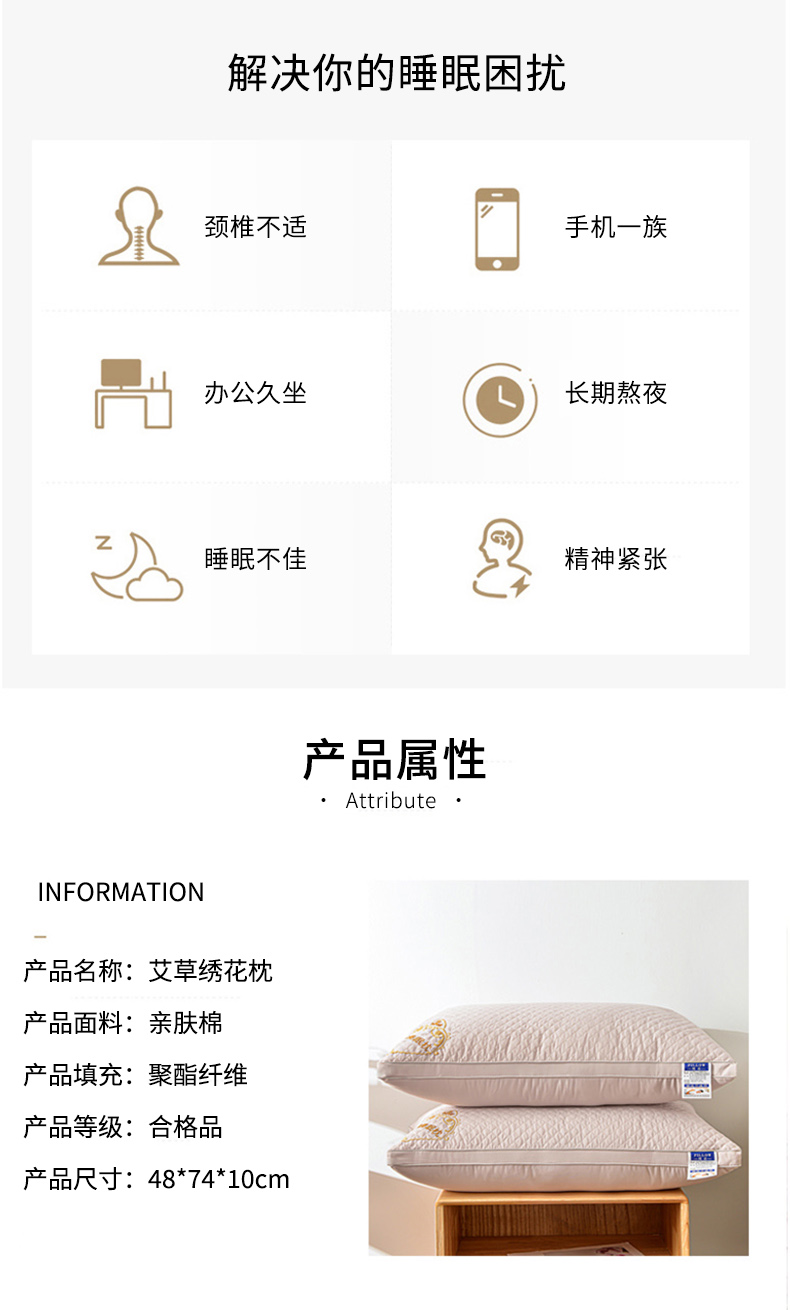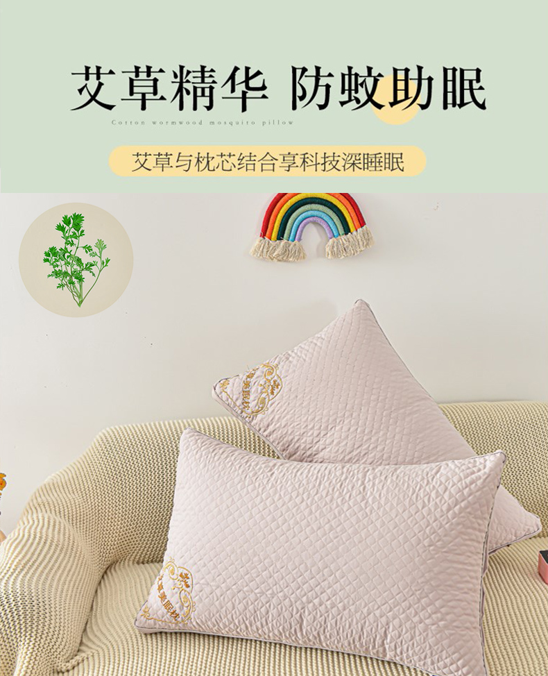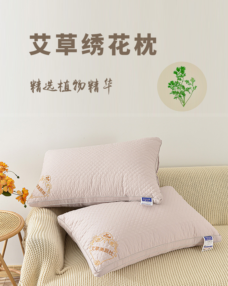 【精选】好眠好梦艾草养生绣花枕48*74*10cm 艾草精华 防蚊助眠