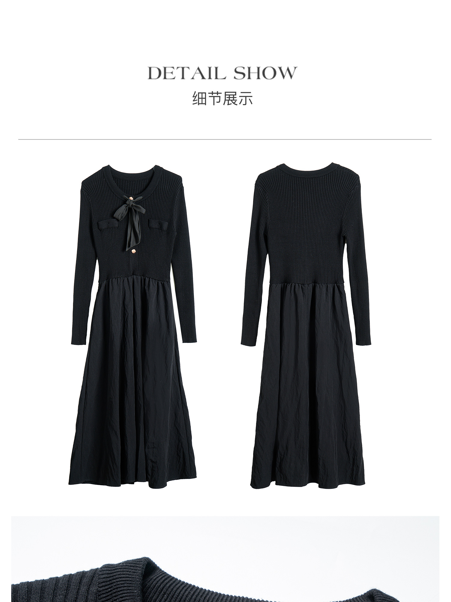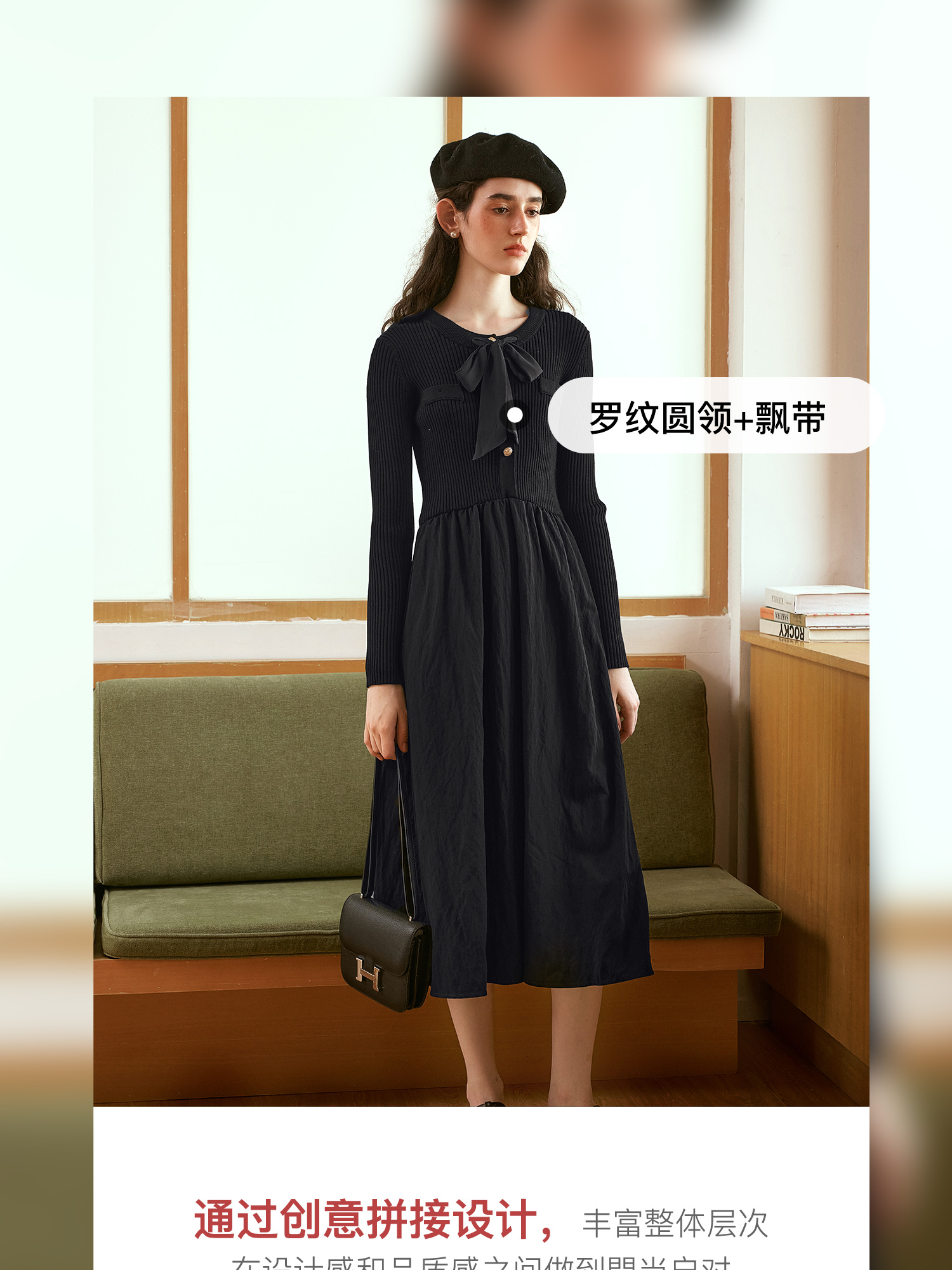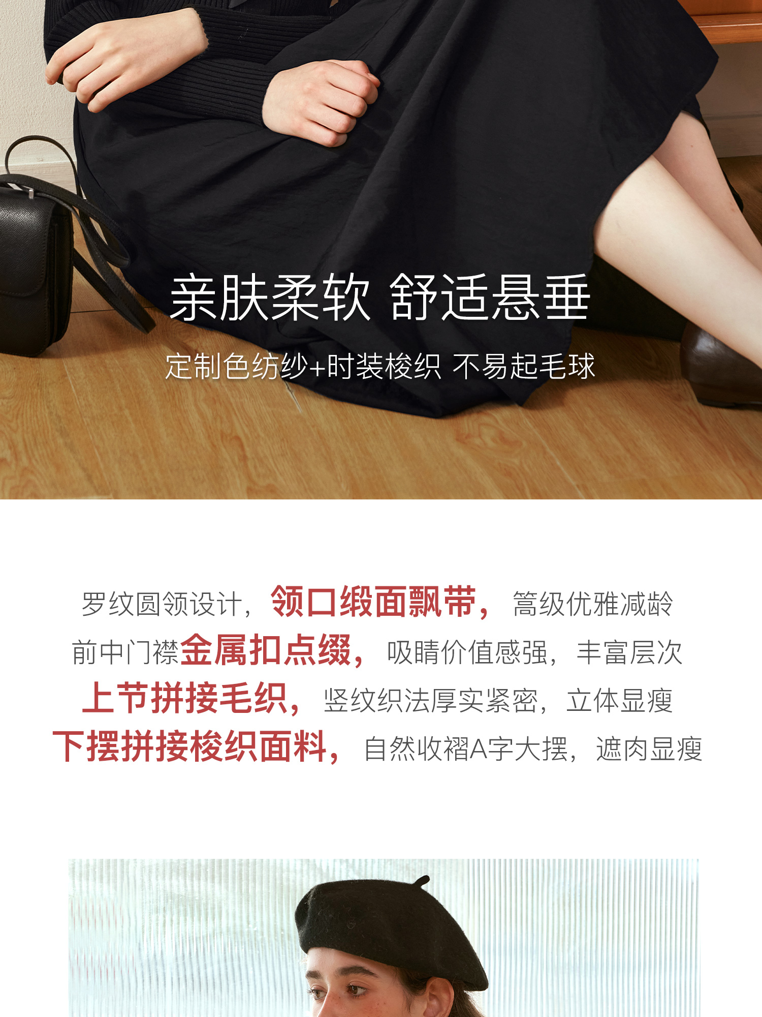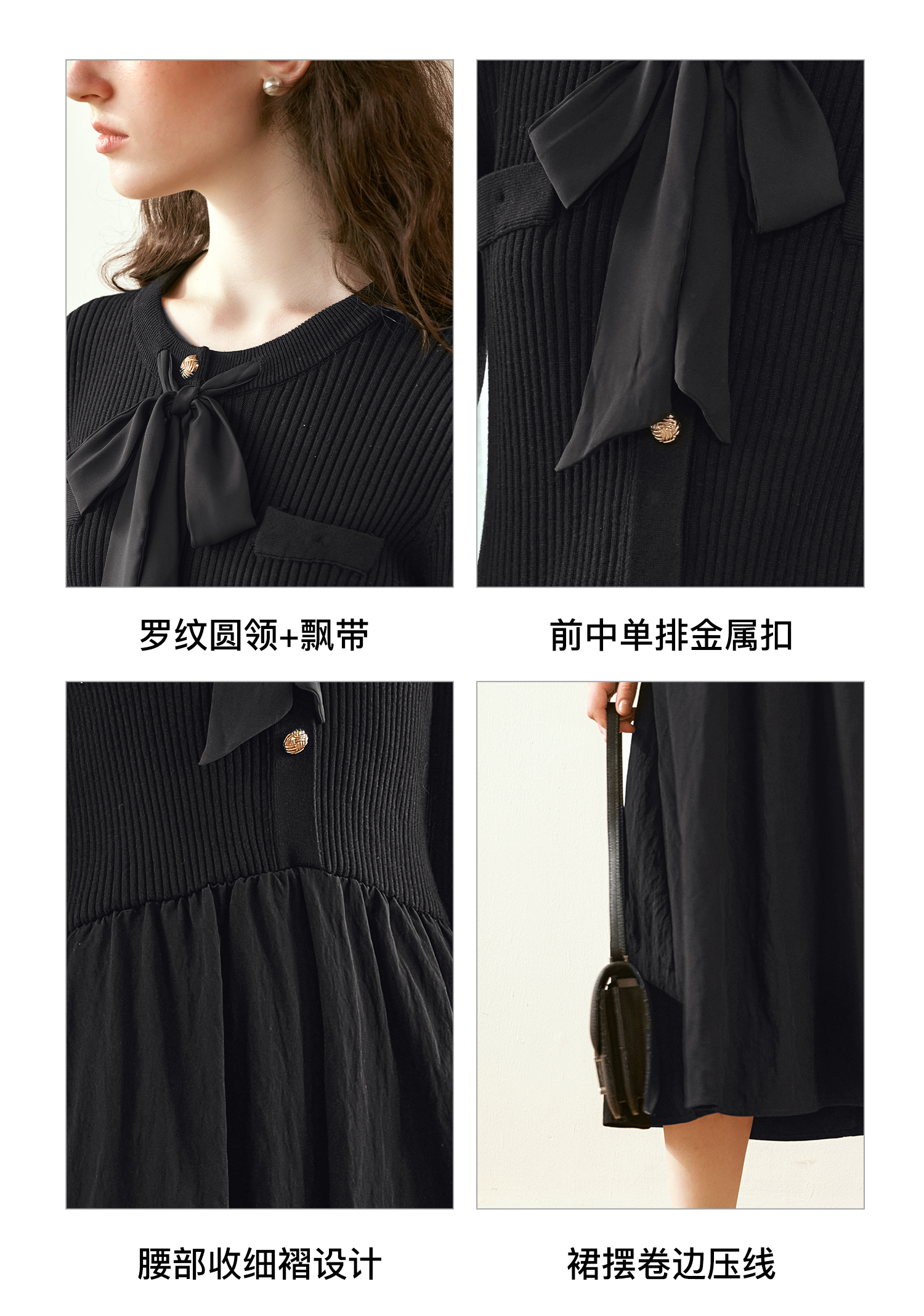 OLrain欧芮儿法式黑色连衣裙女秋季2024年新款小香风收腰A字长裙