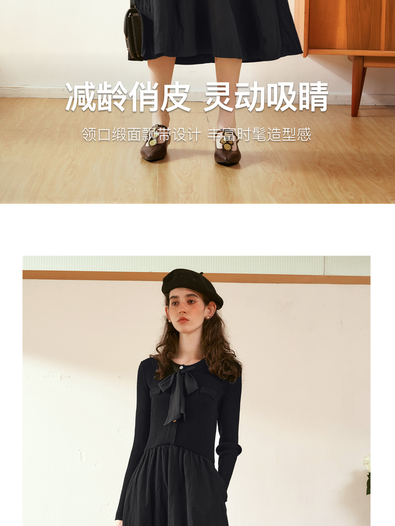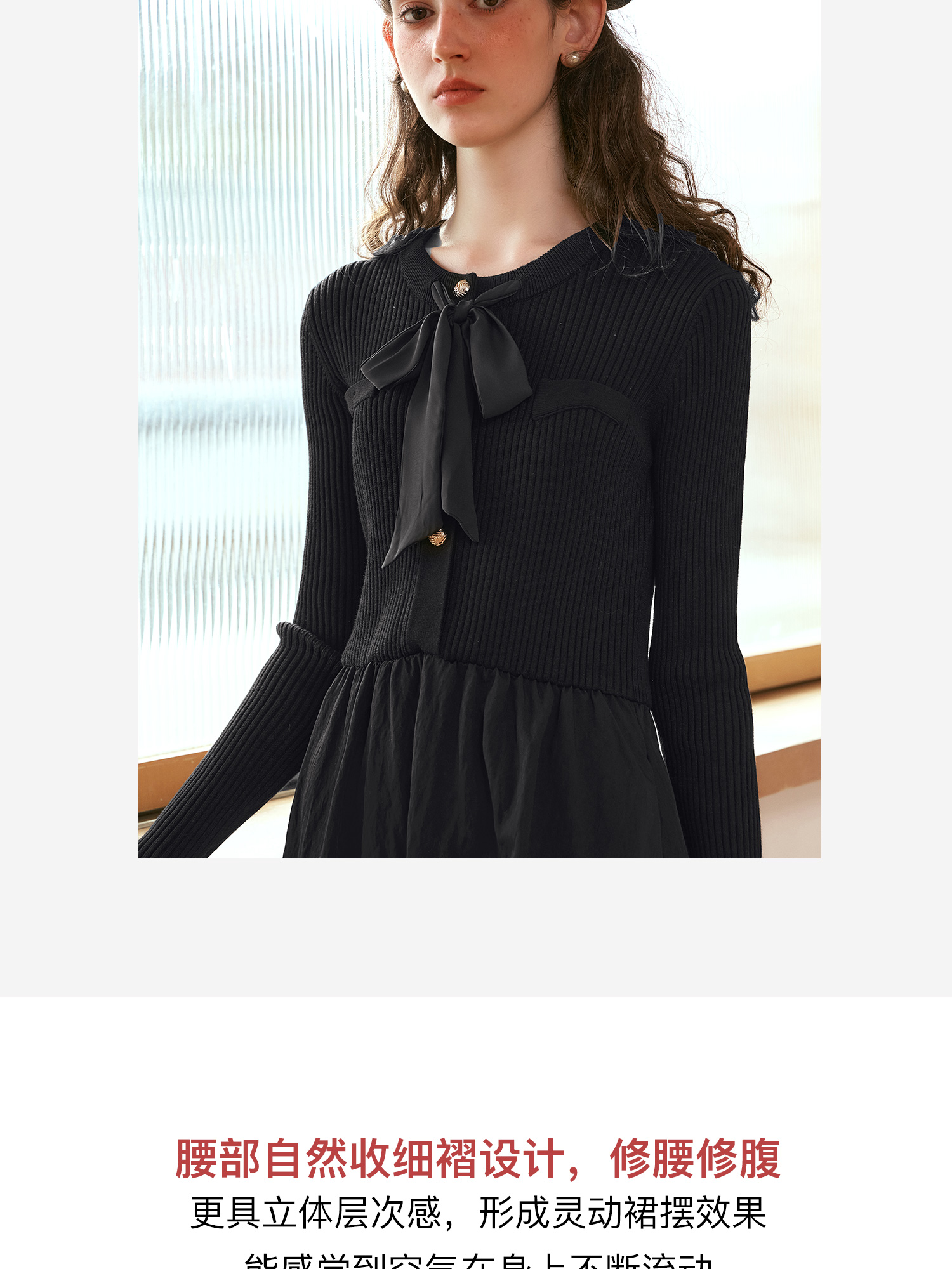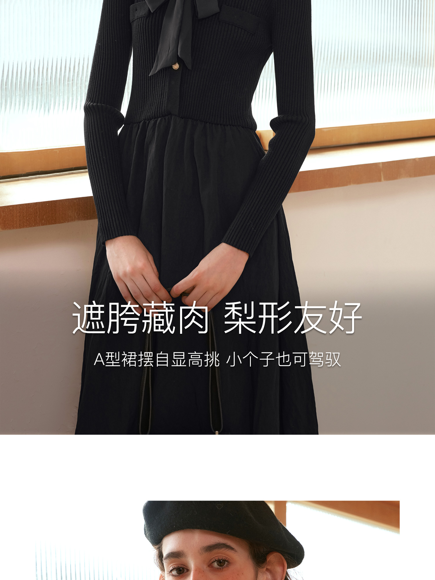 OLrain欧芮儿法式黑色连衣裙女秋季2024年新款小香风收腰A字长裙