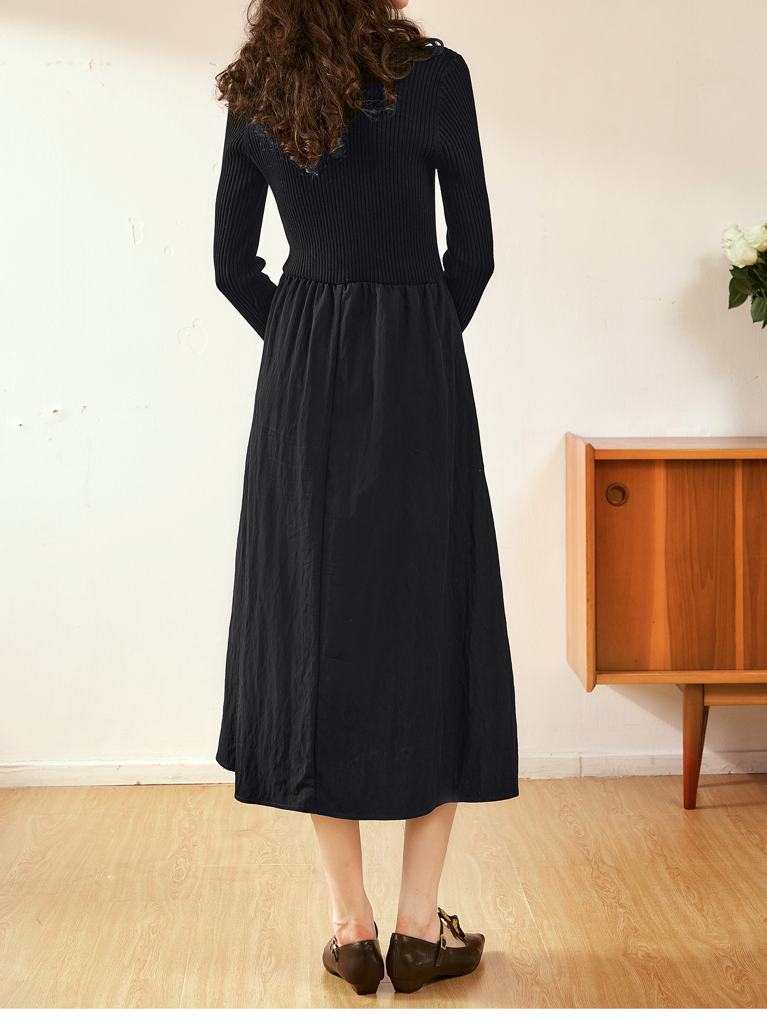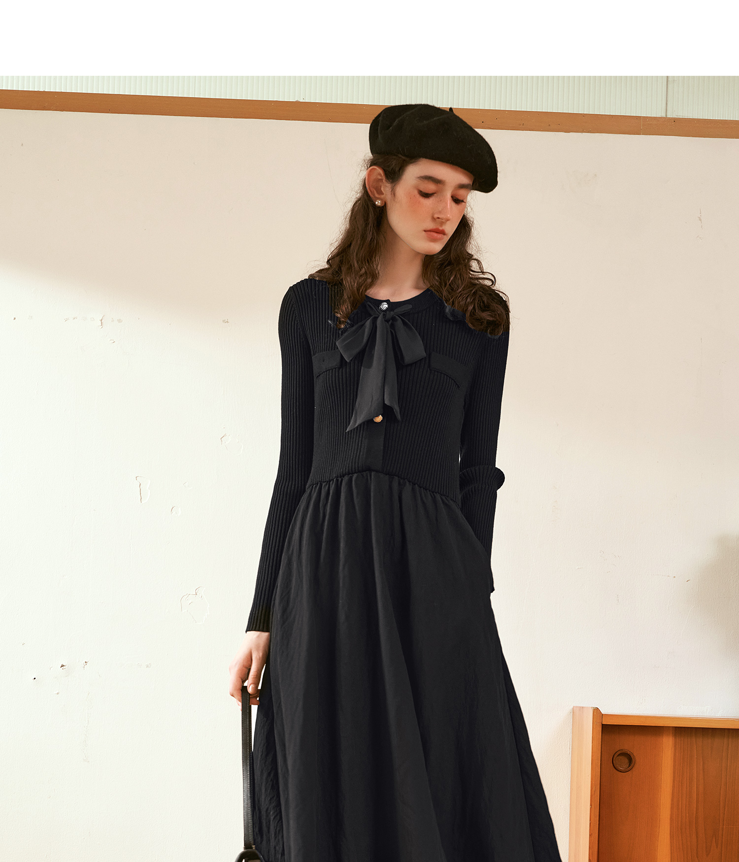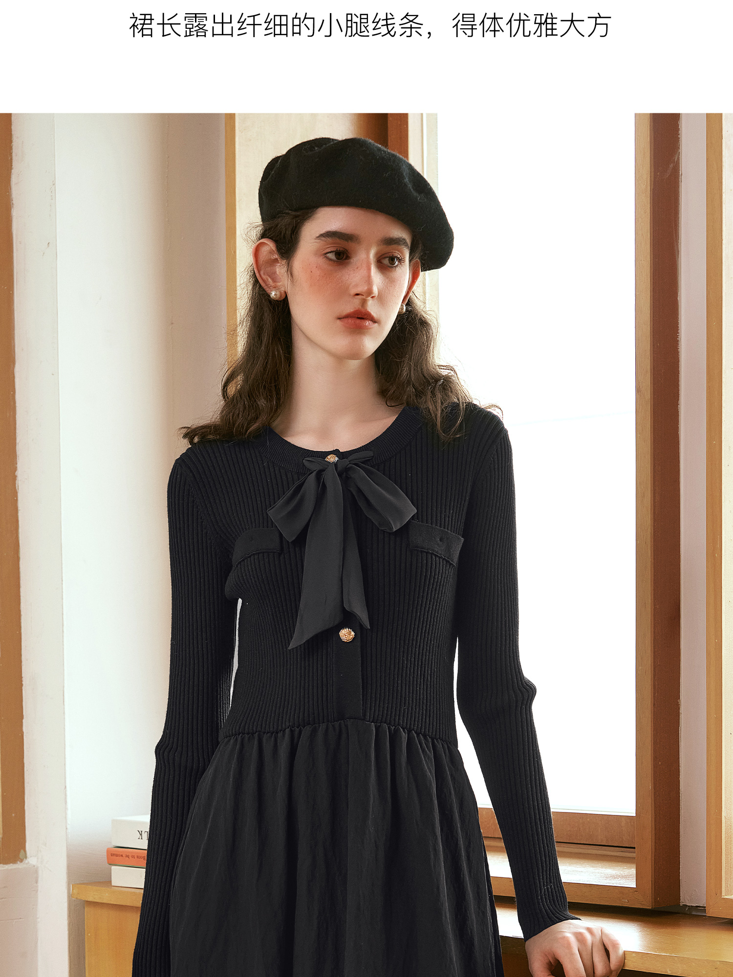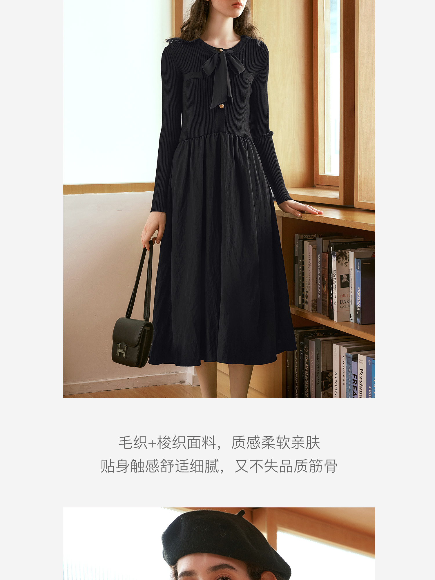 OLrain欧芮儿法式黑色连衣裙女秋季2024年新款小香风收腰A字长裙