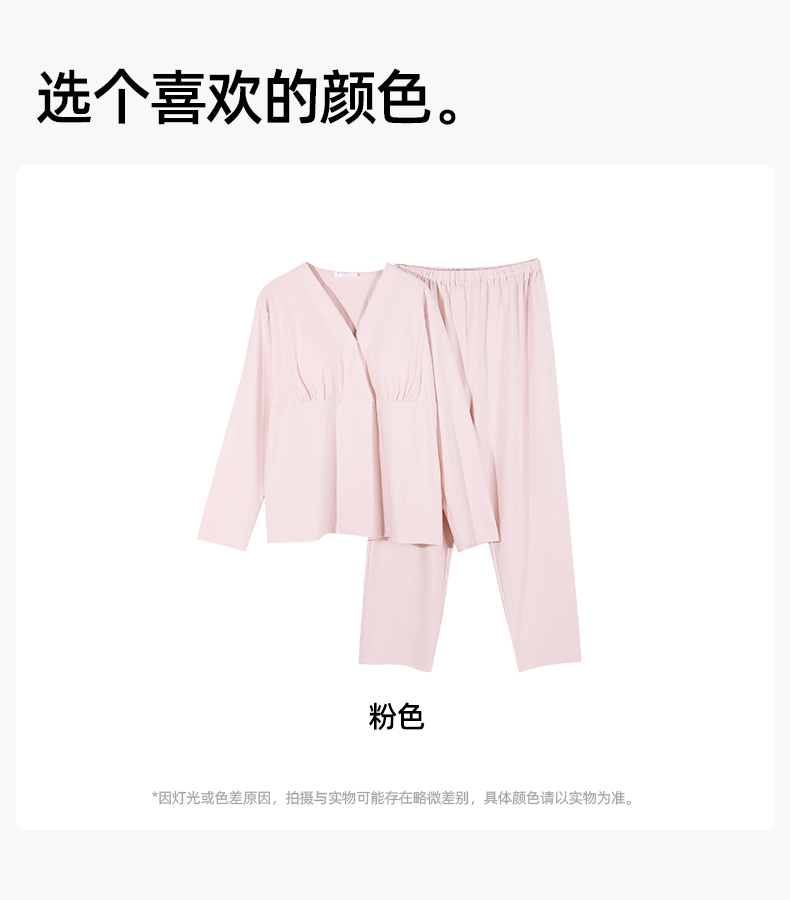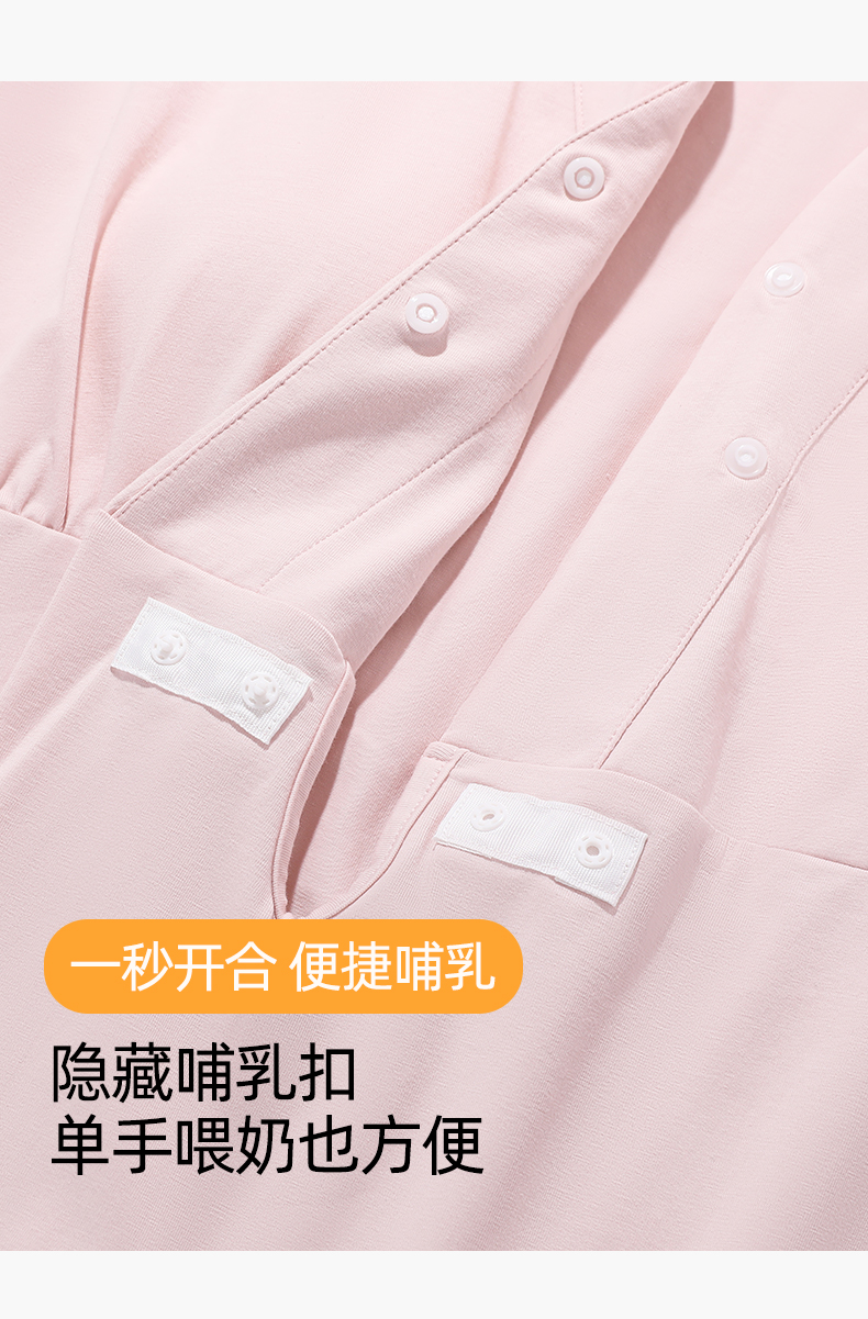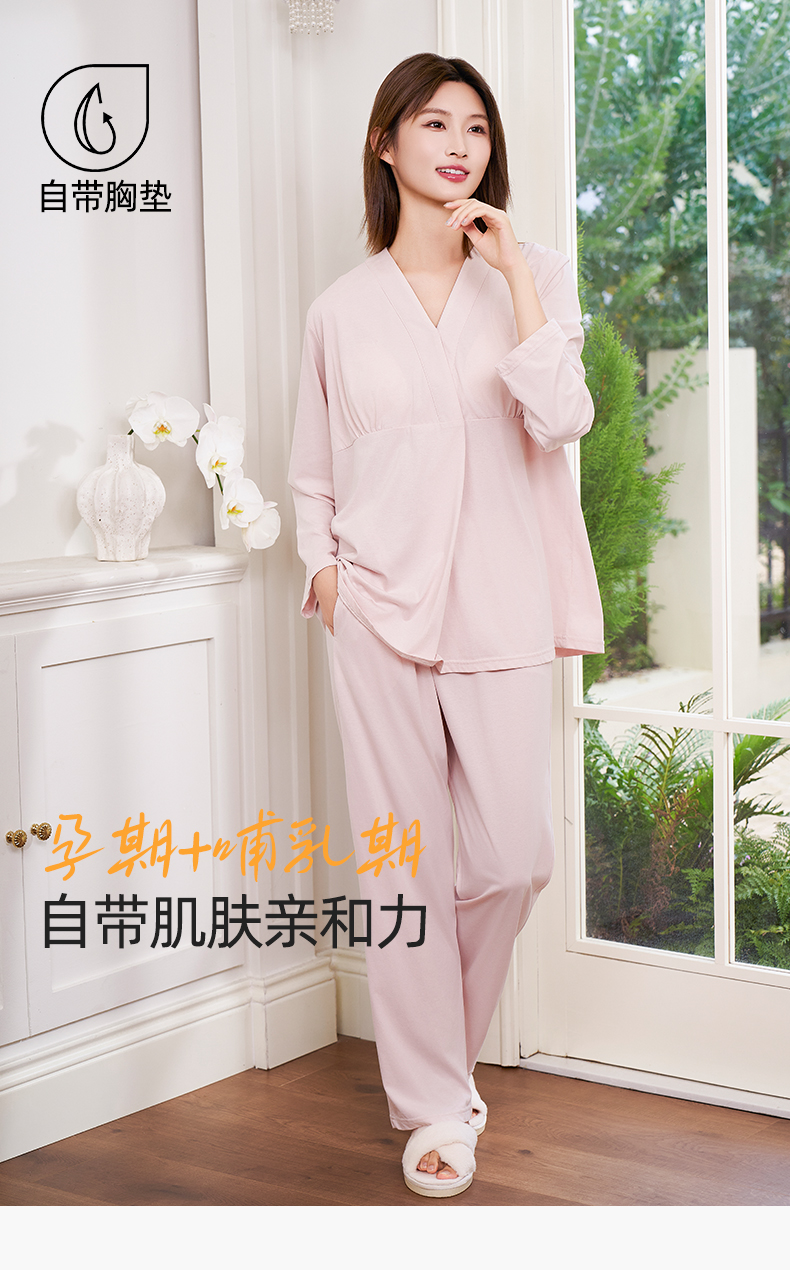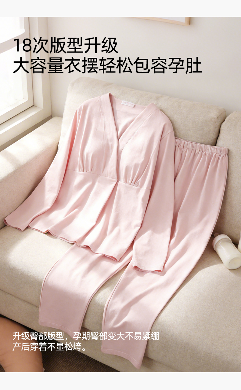 【商场同款】熳洁儿 带胸垫月子服95棉孕妇睡衣哺乳翻领开衫长袖套装25703239