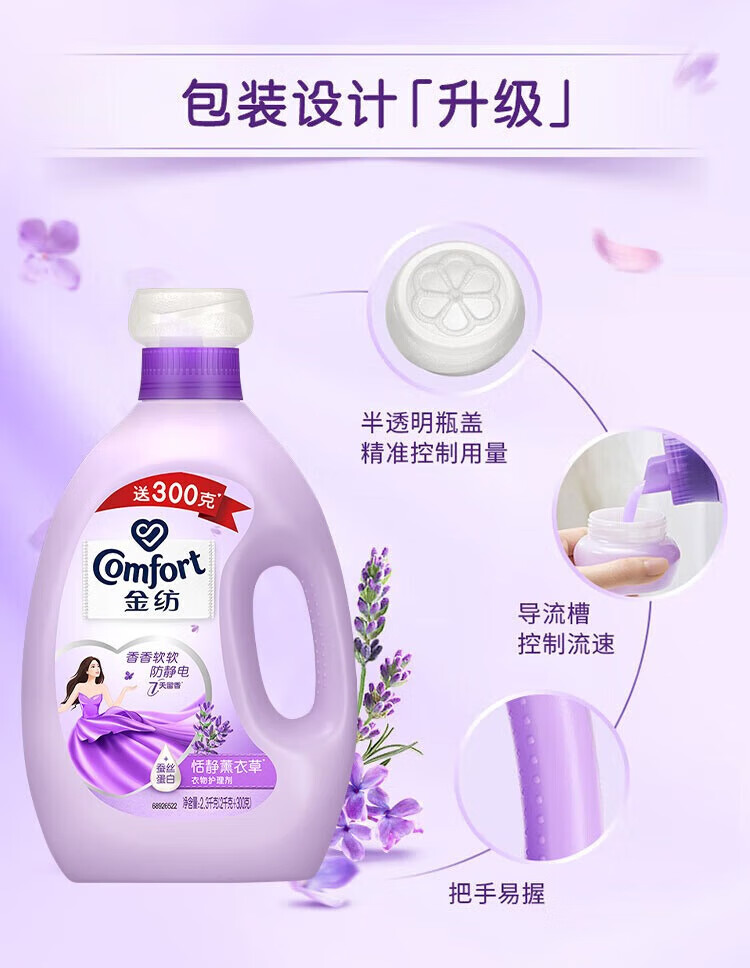 金纺去汗味衣物柔顺剂 防静电柔顺持久留香 恬静薰衣草2.3kg