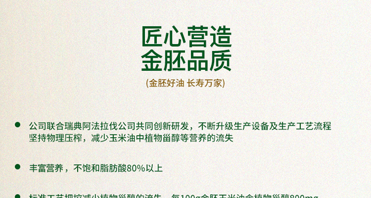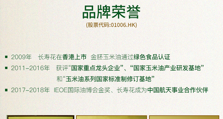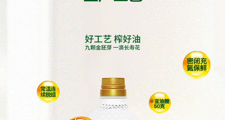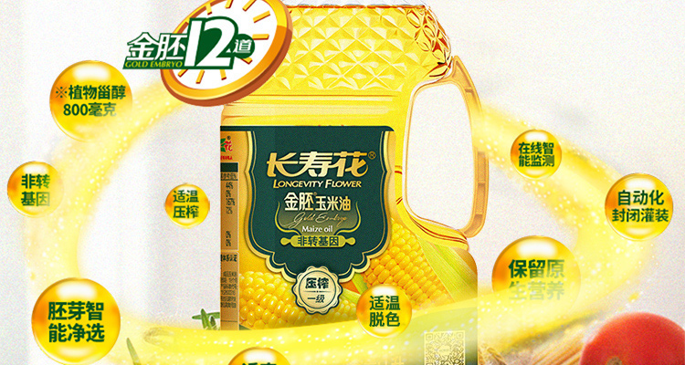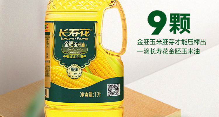 长寿花 食用油 非转基因压榨一级 金胚玉米油 1L