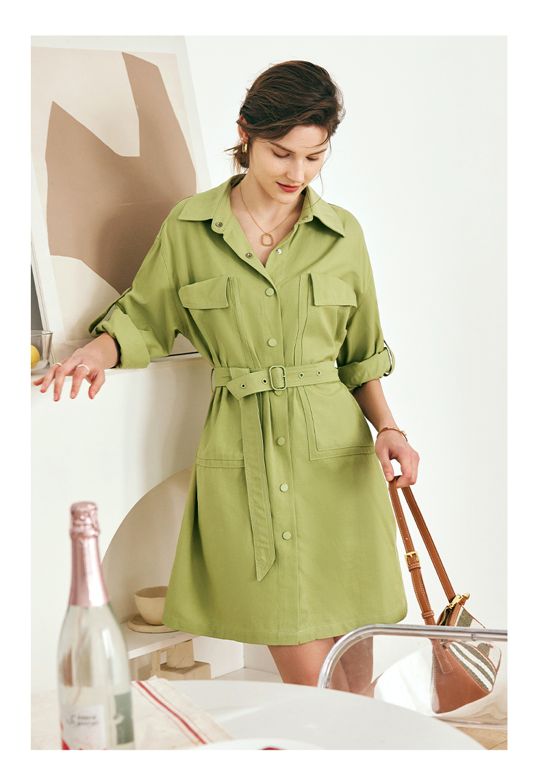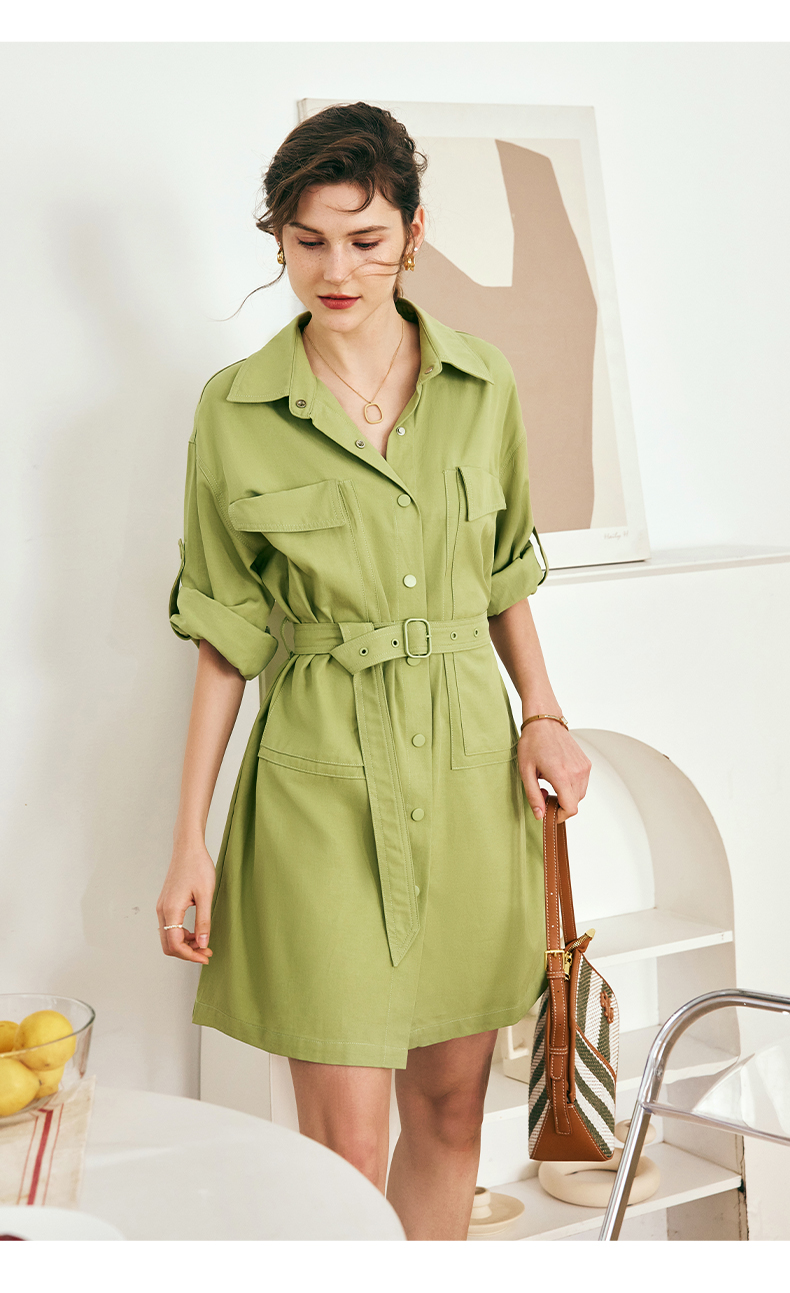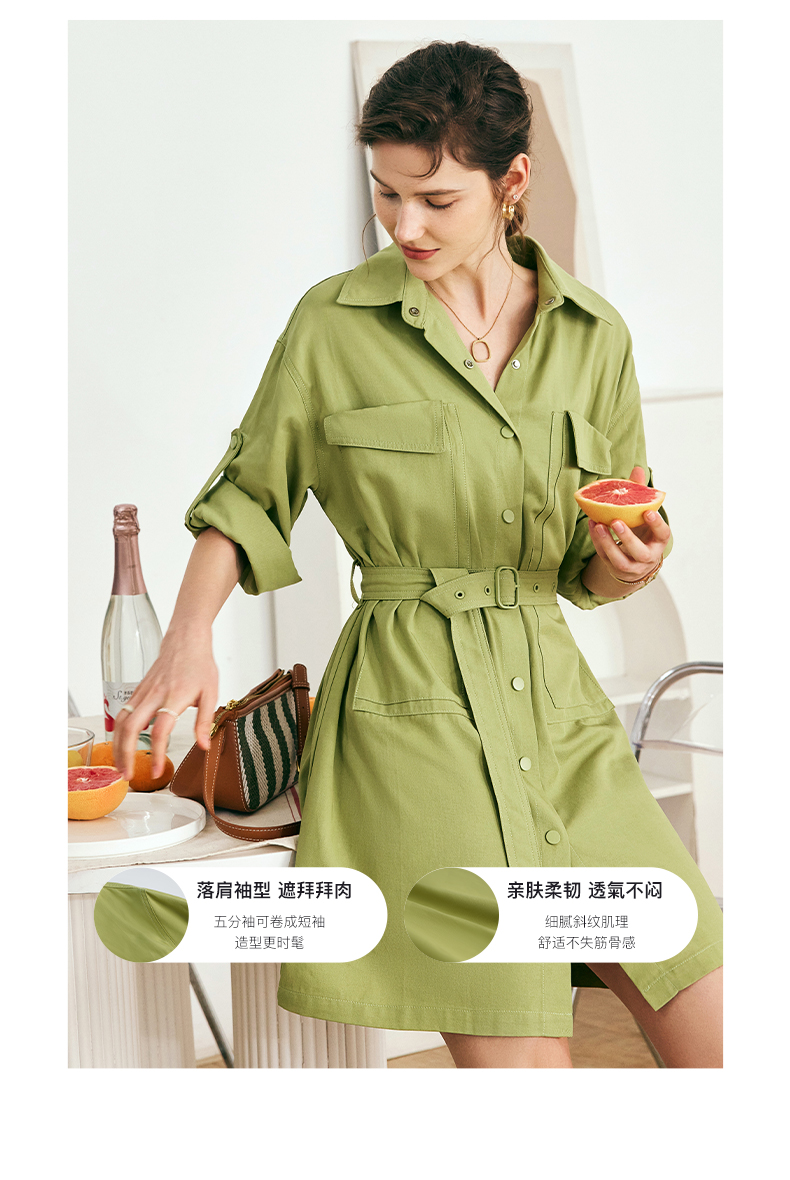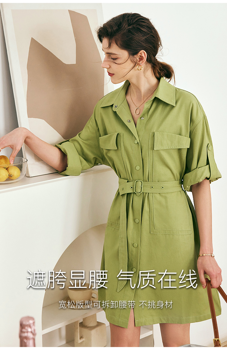 OLrain欧芮儿法式衬衫连衣裙女夏季2023年新款收腰卷边五分袖裙子