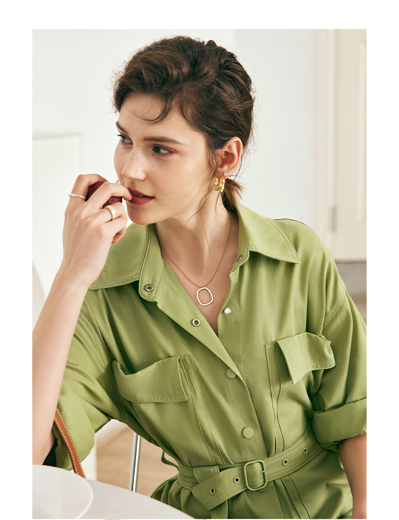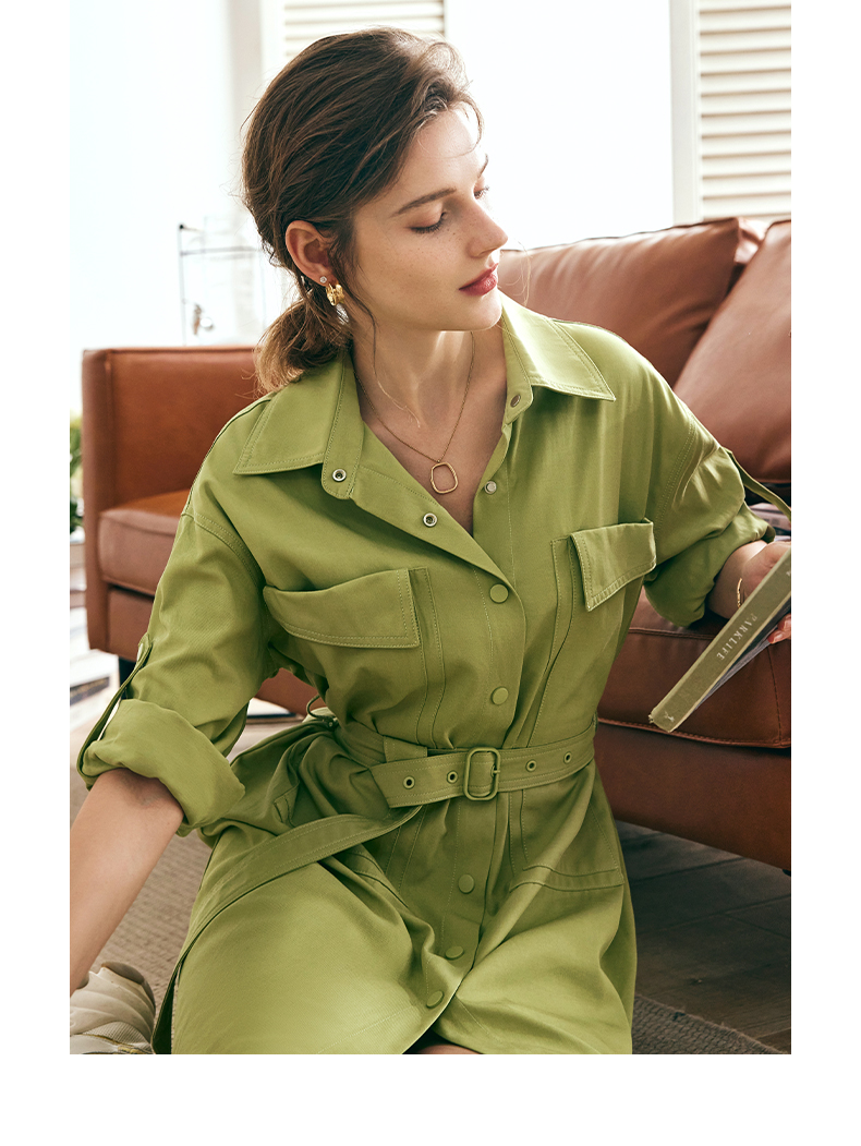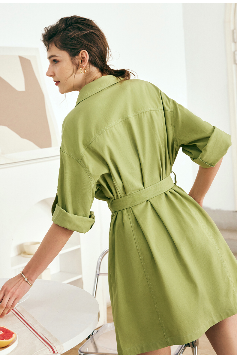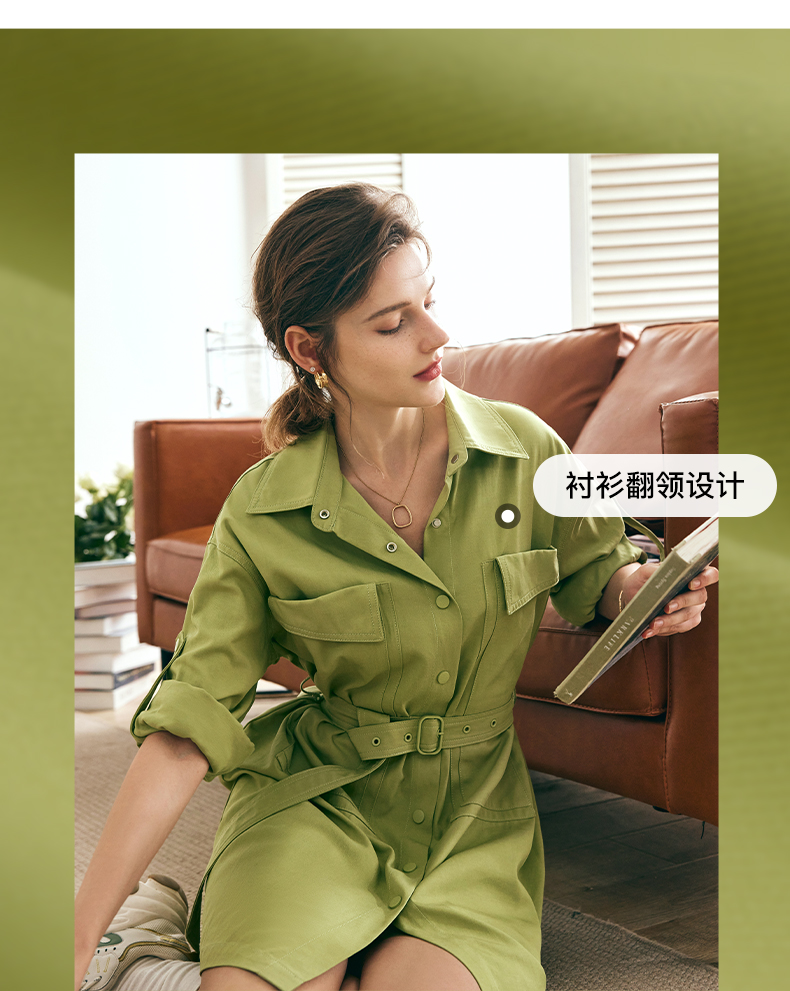 OLrain欧芮儿法式衬衫连衣裙女夏季2023年新款收腰卷边五分袖裙子