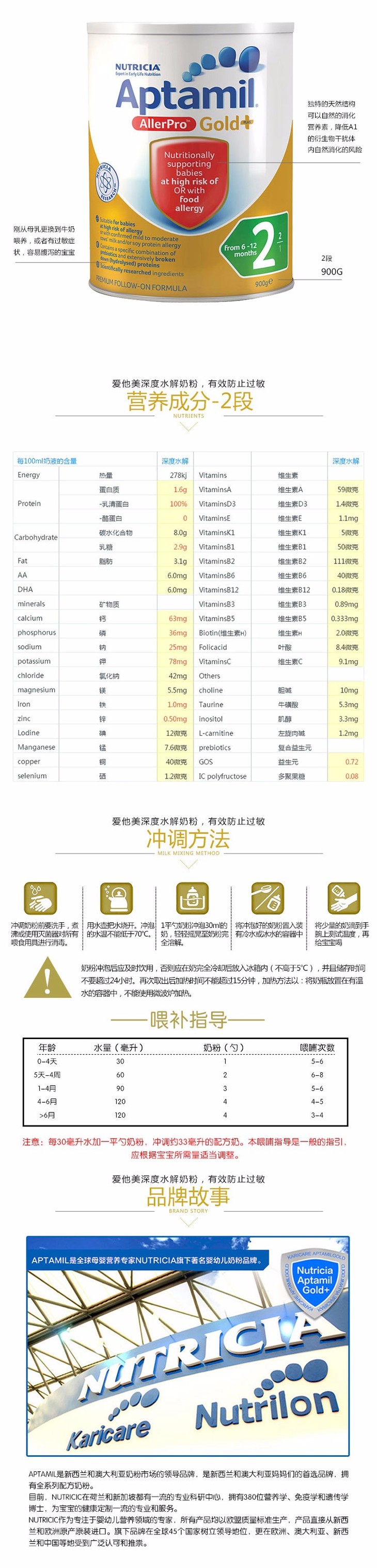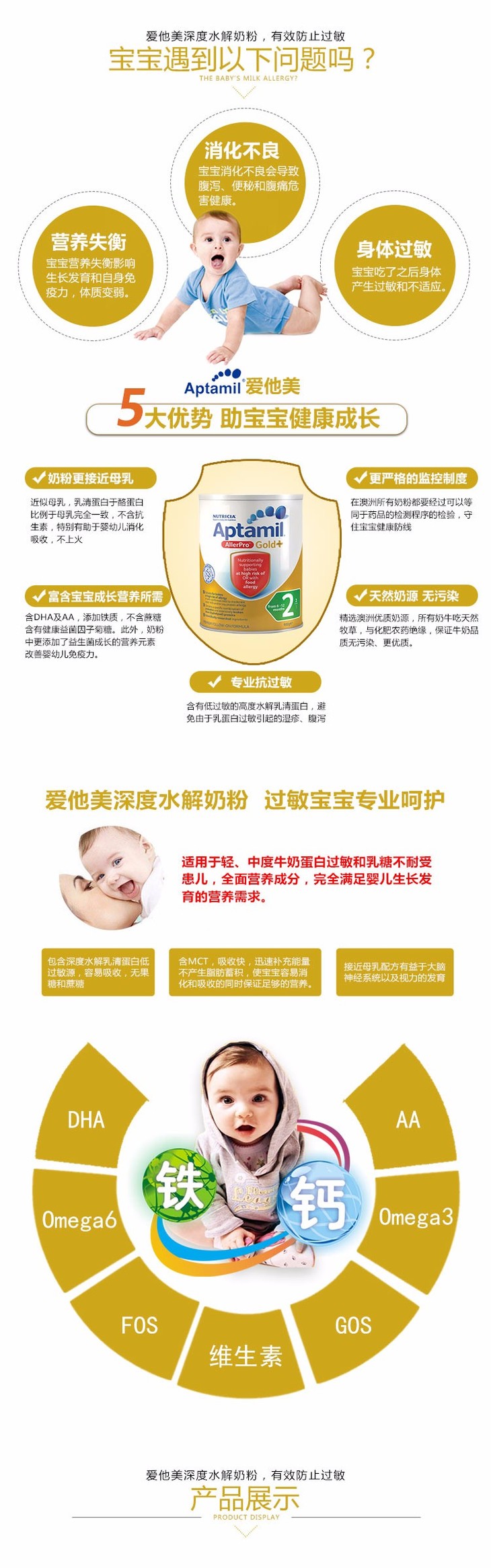 澳洲爱他美2段奶粉深度水解抗过敏湿疹奶粉