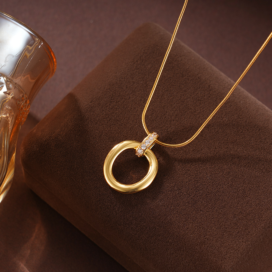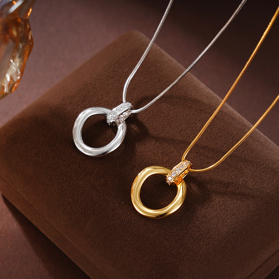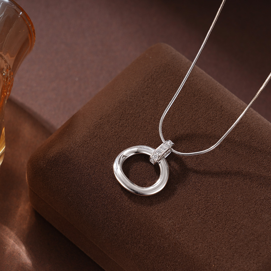 【寓意】:项链纯银材质,搭配经典圆环坠饰,再巧妙通过微镶工艺,塑造波光粼粼质感,犹如夏末晨曦,光影流转。
