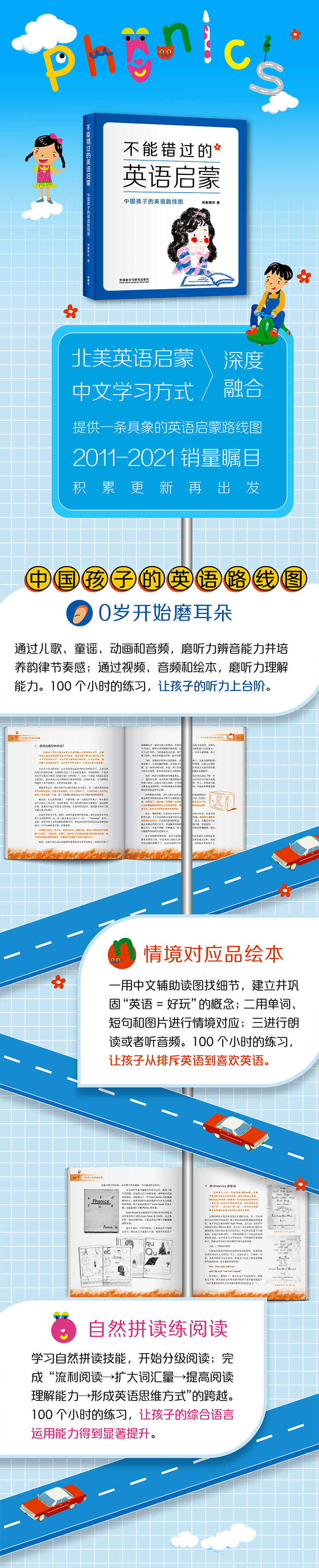 本书提供了一条适合中国孩子的英语学习路线图:O岁开始磨耳朵——情境对应品绘本——自然拼读练阅读。