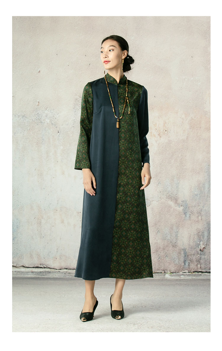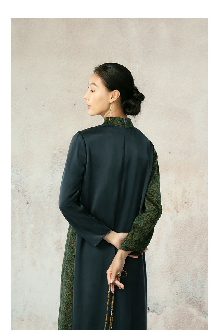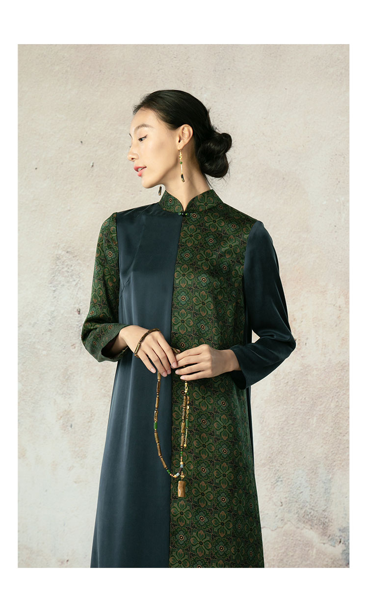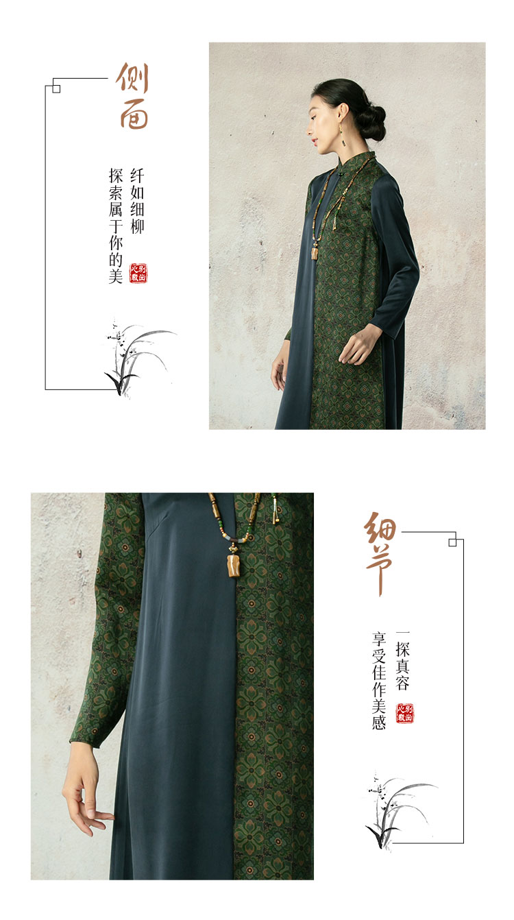 吉祥衣家新中式国风春新款高端气质显瘦修身女装花常逐月红连衣裙