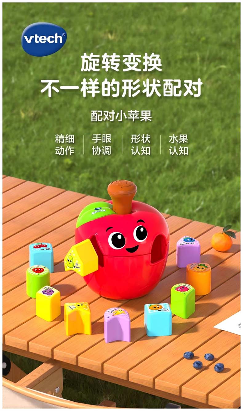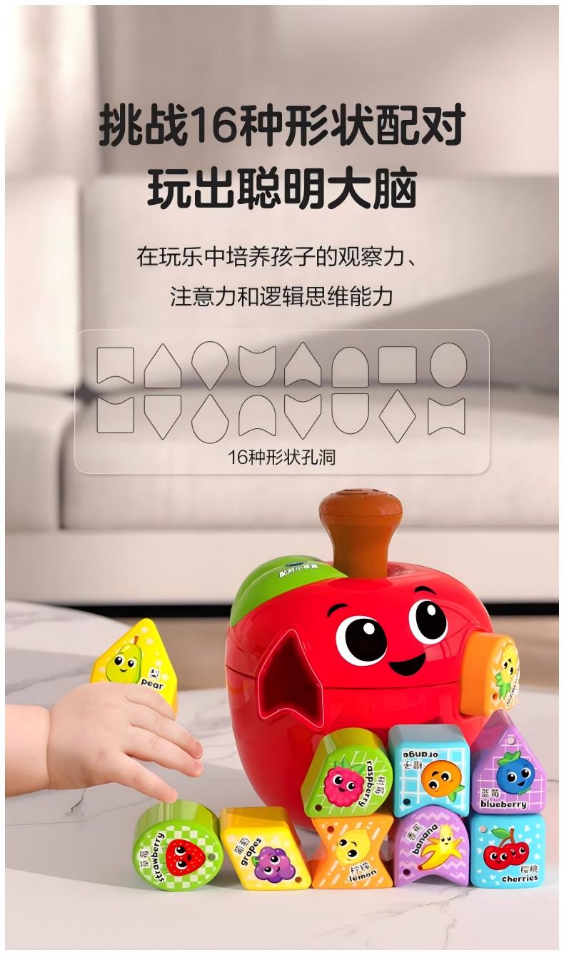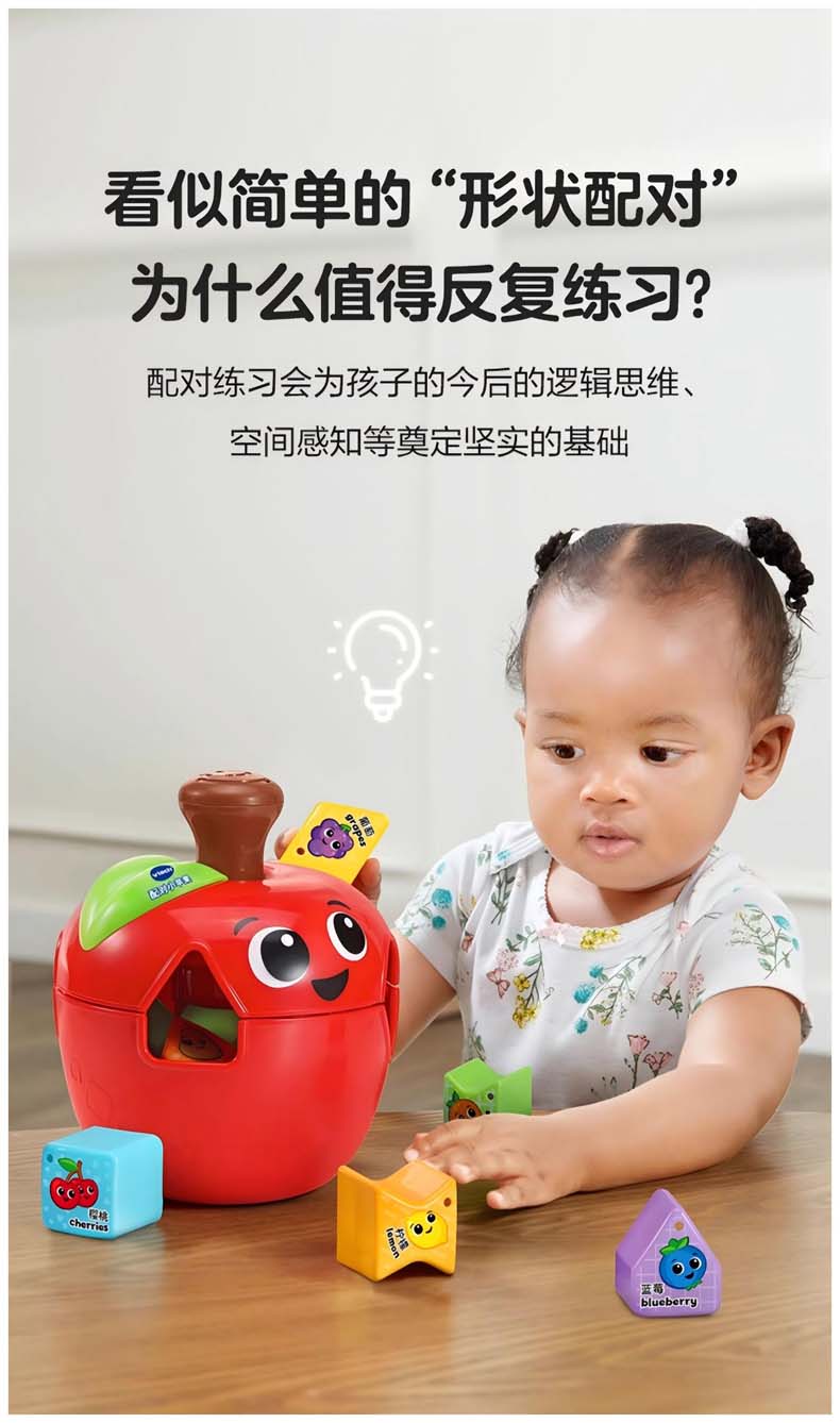 伟易达 配对小苹果 思维早教益智玩具 几何形状积木 48小时发货