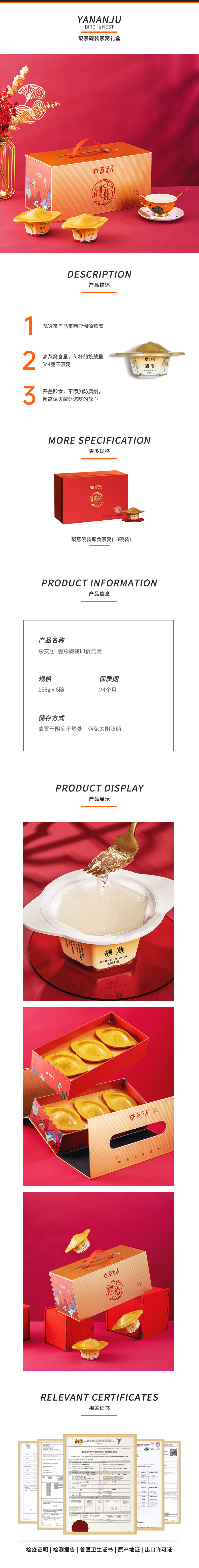 燕安居 靓燕冰糖燕窝旗舰店官网正品孕妇滋补品年货送礼礼盒168克*6碗