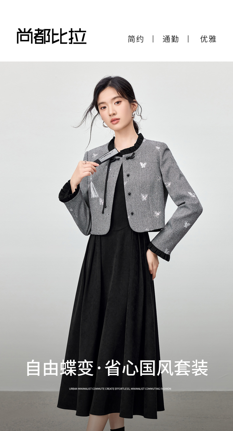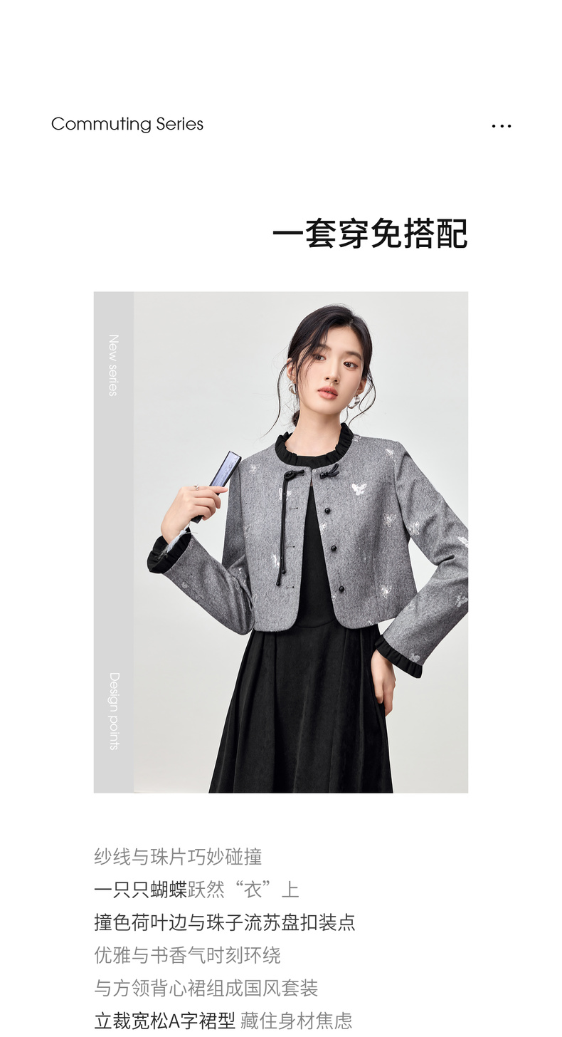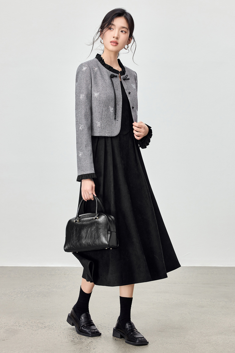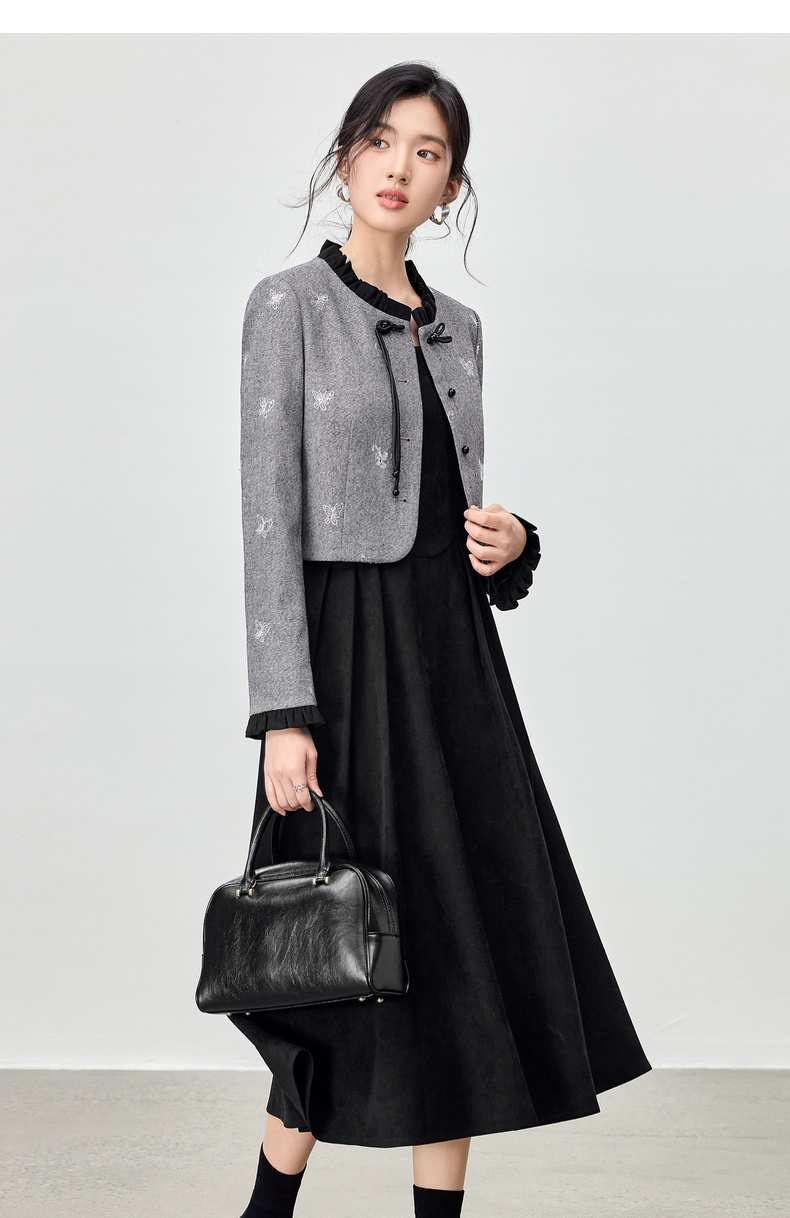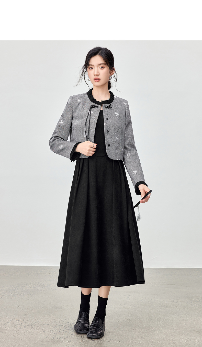 【内购】【免搭配套装】优雅国风荷叶边垫肩外套&方领显瘦立裁吊带连衣裙-Q53ZB3568