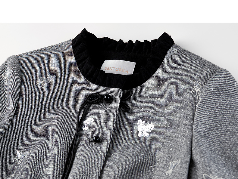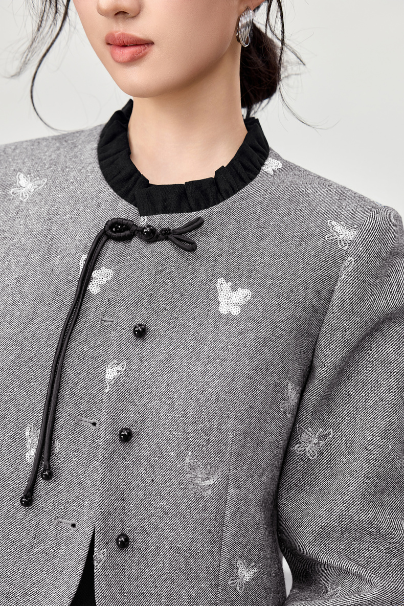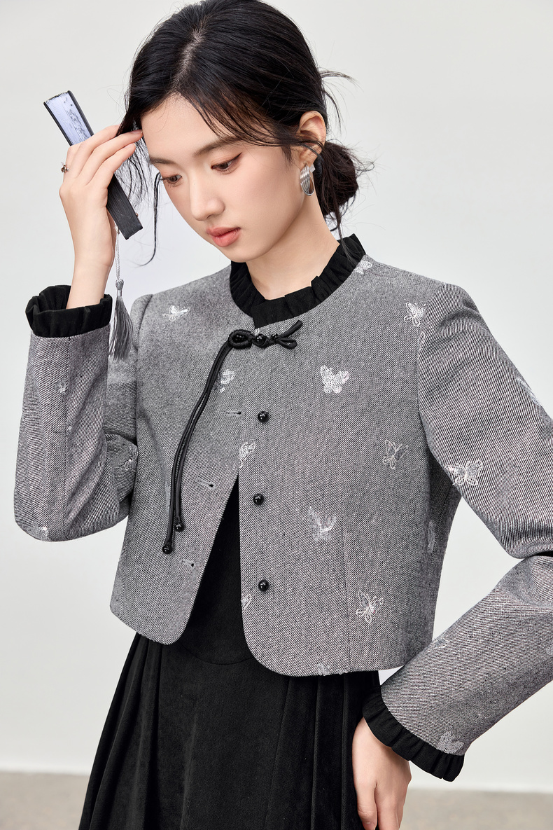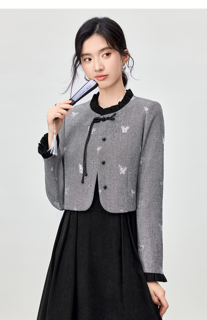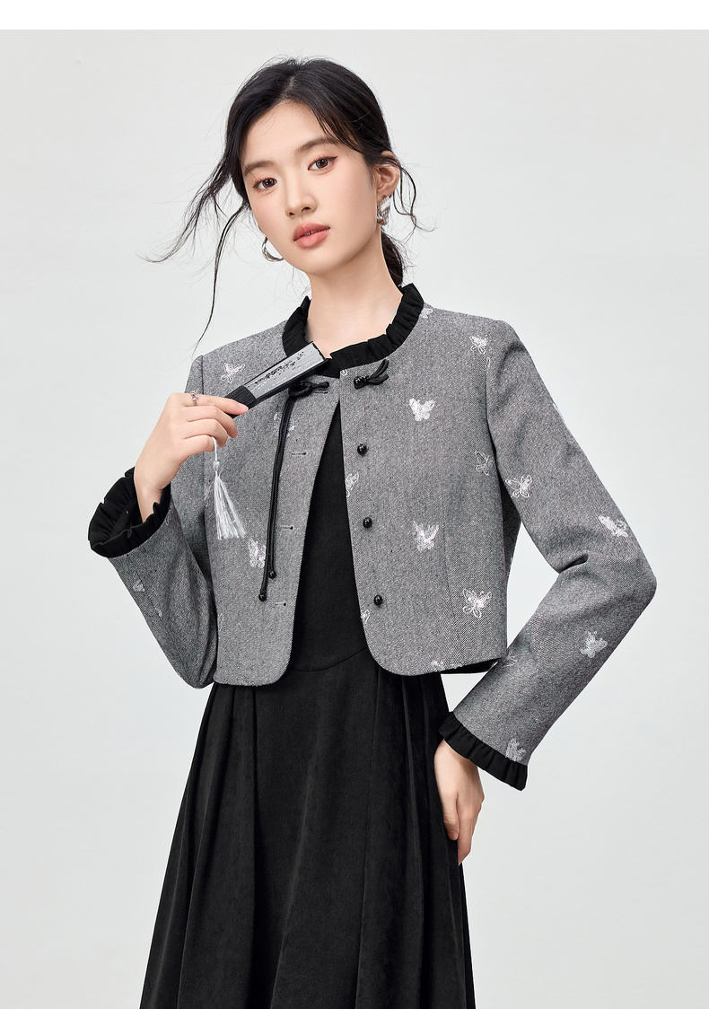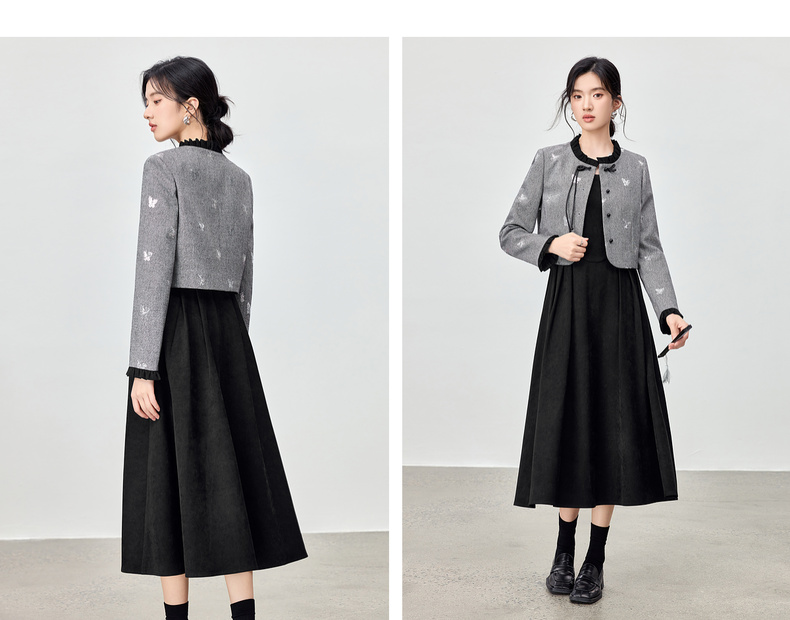 【内购】【免搭配套装】优雅国风荷叶边垫肩外套&方领显瘦立裁吊带连衣裙-Q53ZB3568