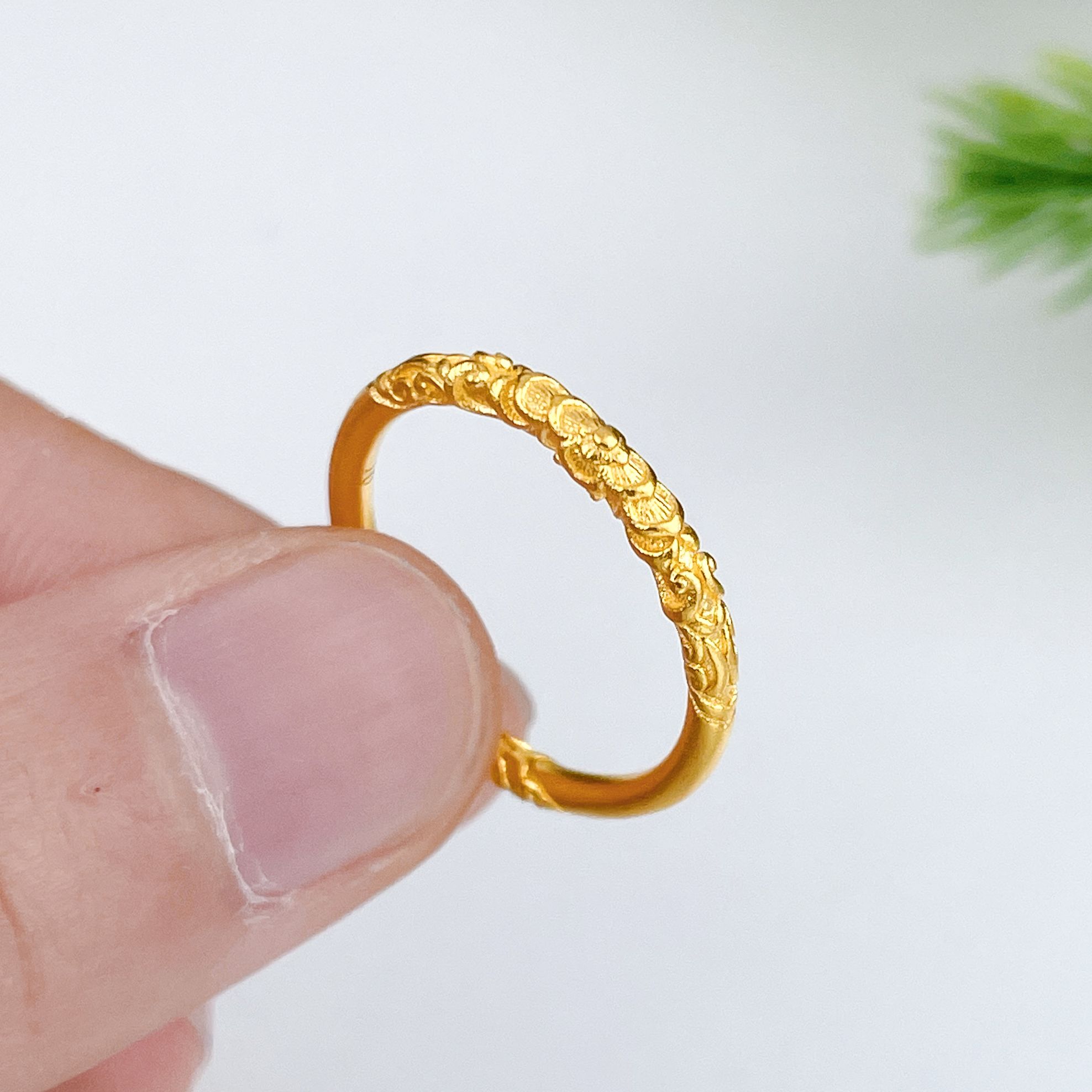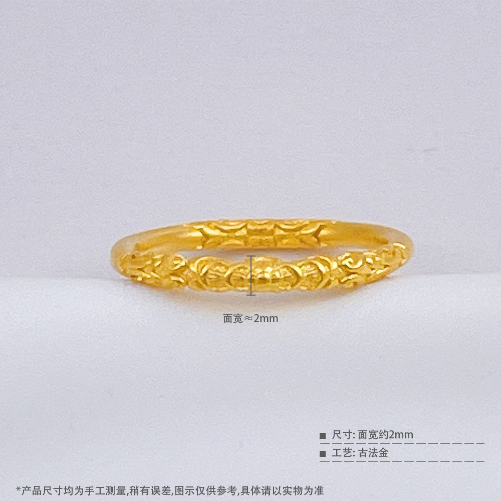 【限时克减150元】足金999.9 古法实心固口心上花錾刻卷草纹圈戒(面宽约1.8-2.2mm)(AIGFJZ00059)(预售产品下单后不退款不退货不换货不补差价