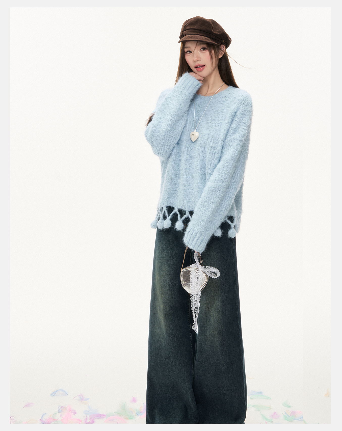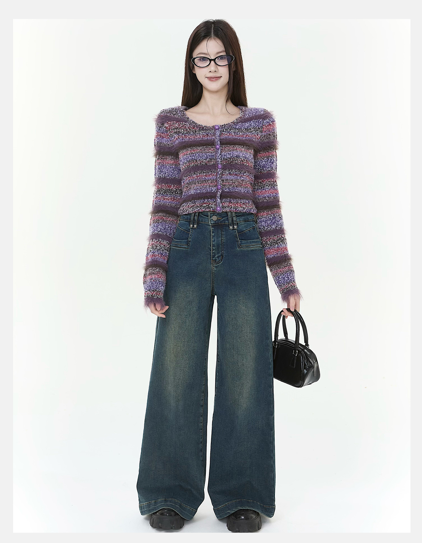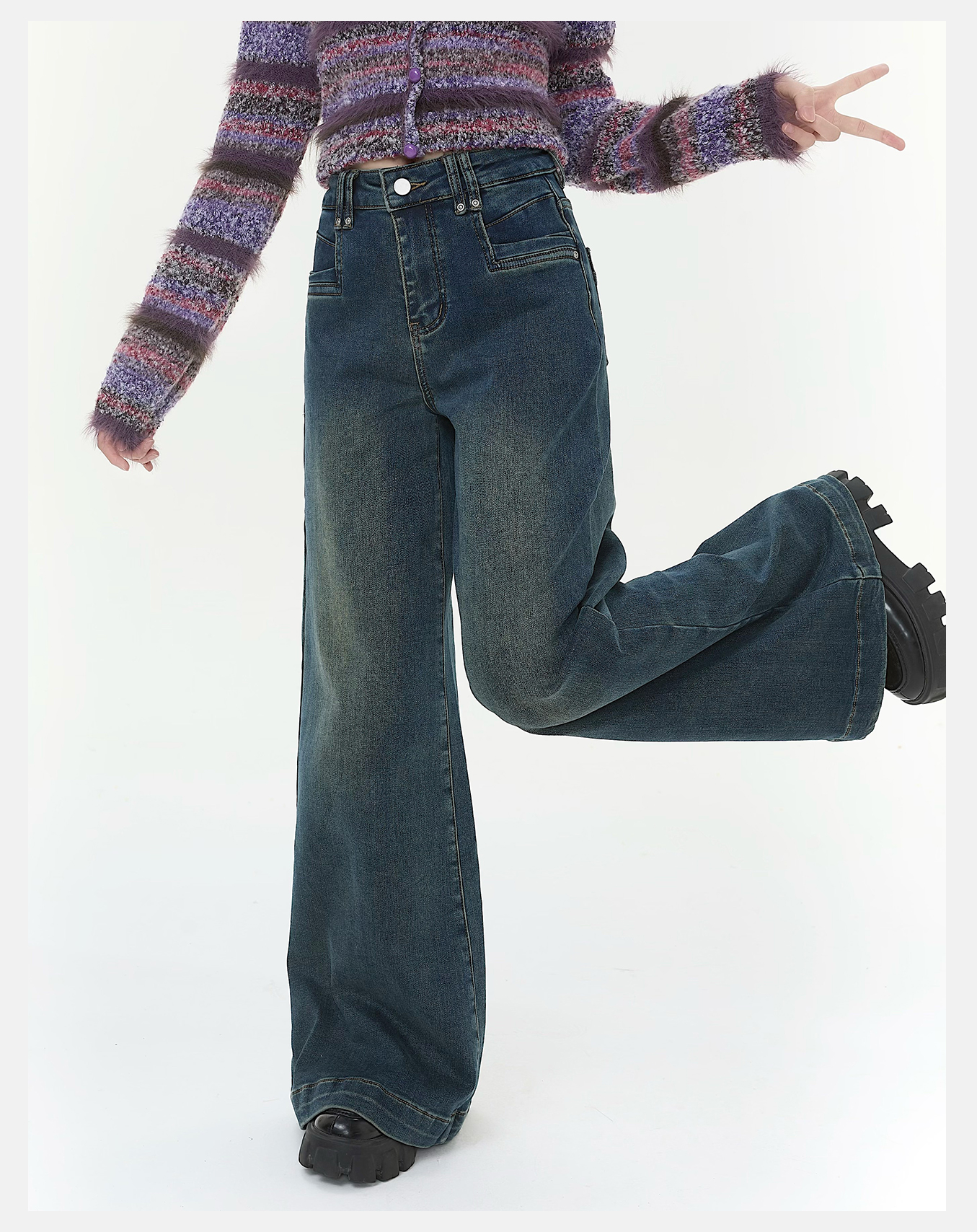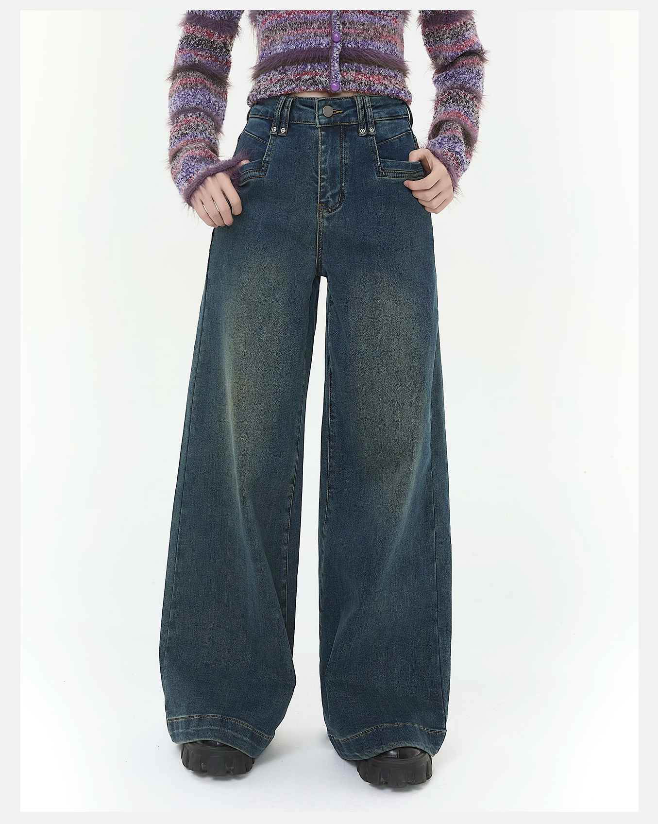 P&X设计师女装2025冬季休闲阔腿裤水洗牛仔长裤825410176 蓝色