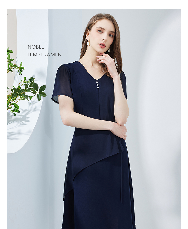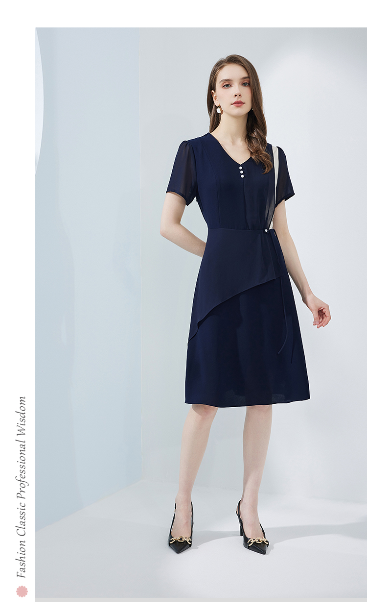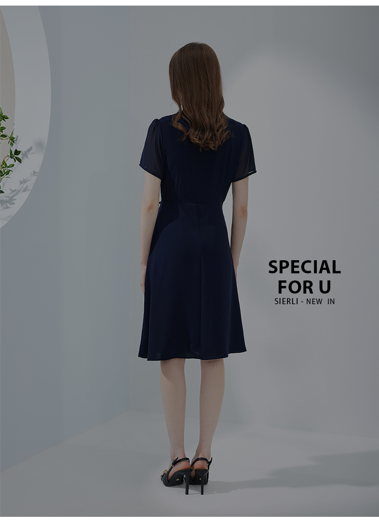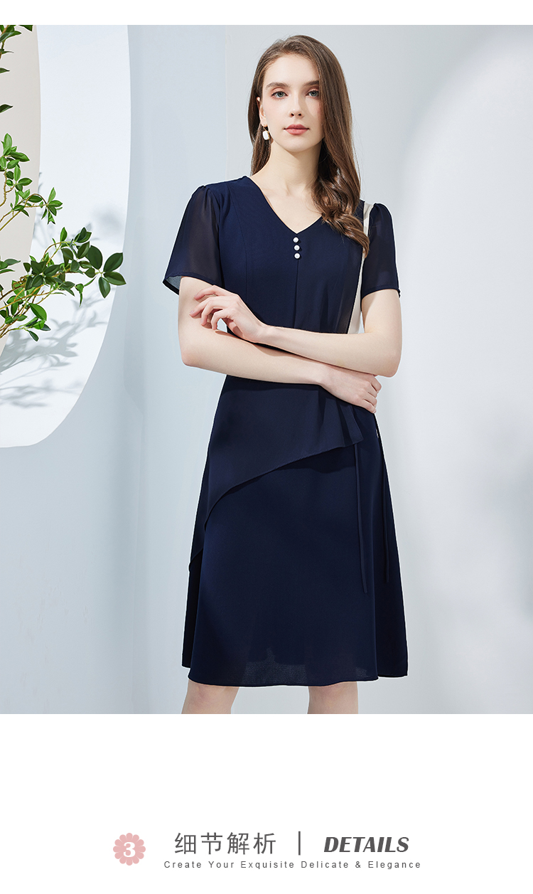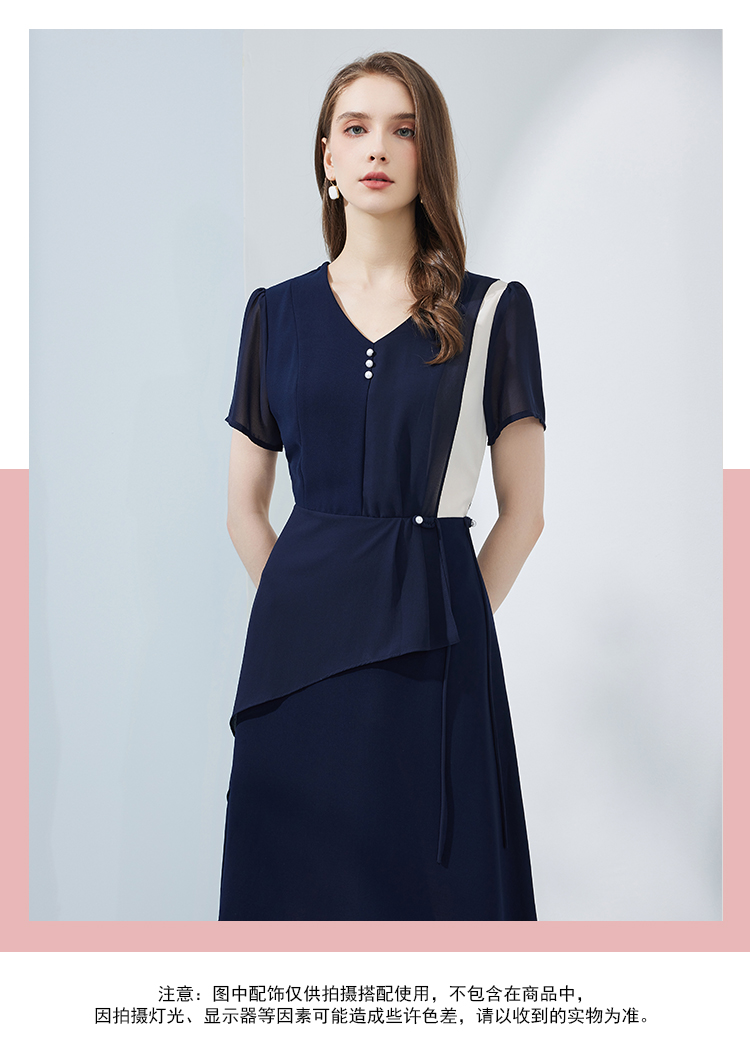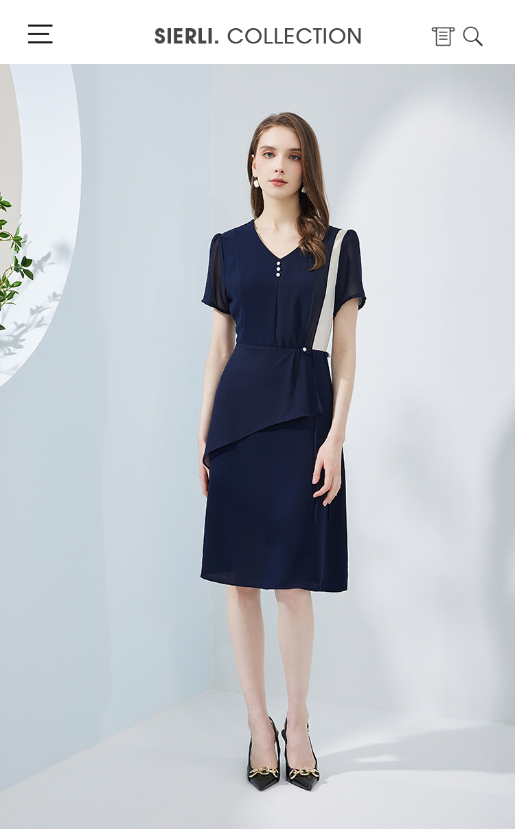 NF8K9斯尔丽瑟俪2023夏季新款撞色拼接不规则双层裙摆收腰显瘦连衣裙