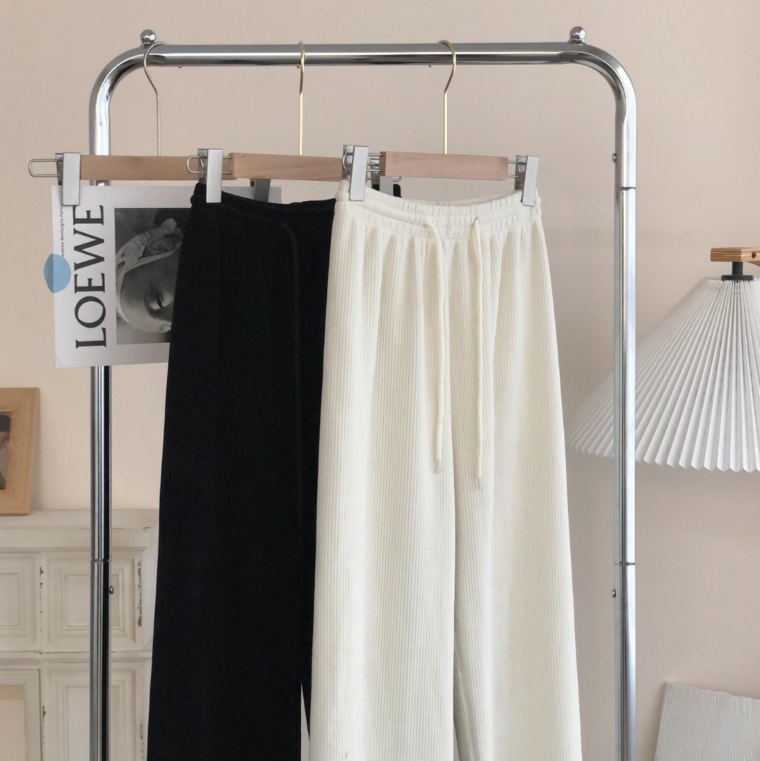 金蘑菇菇 冬日暖暖裤 竖条纹理松紧腰阔腿裤长裤秋冬休闲宽松