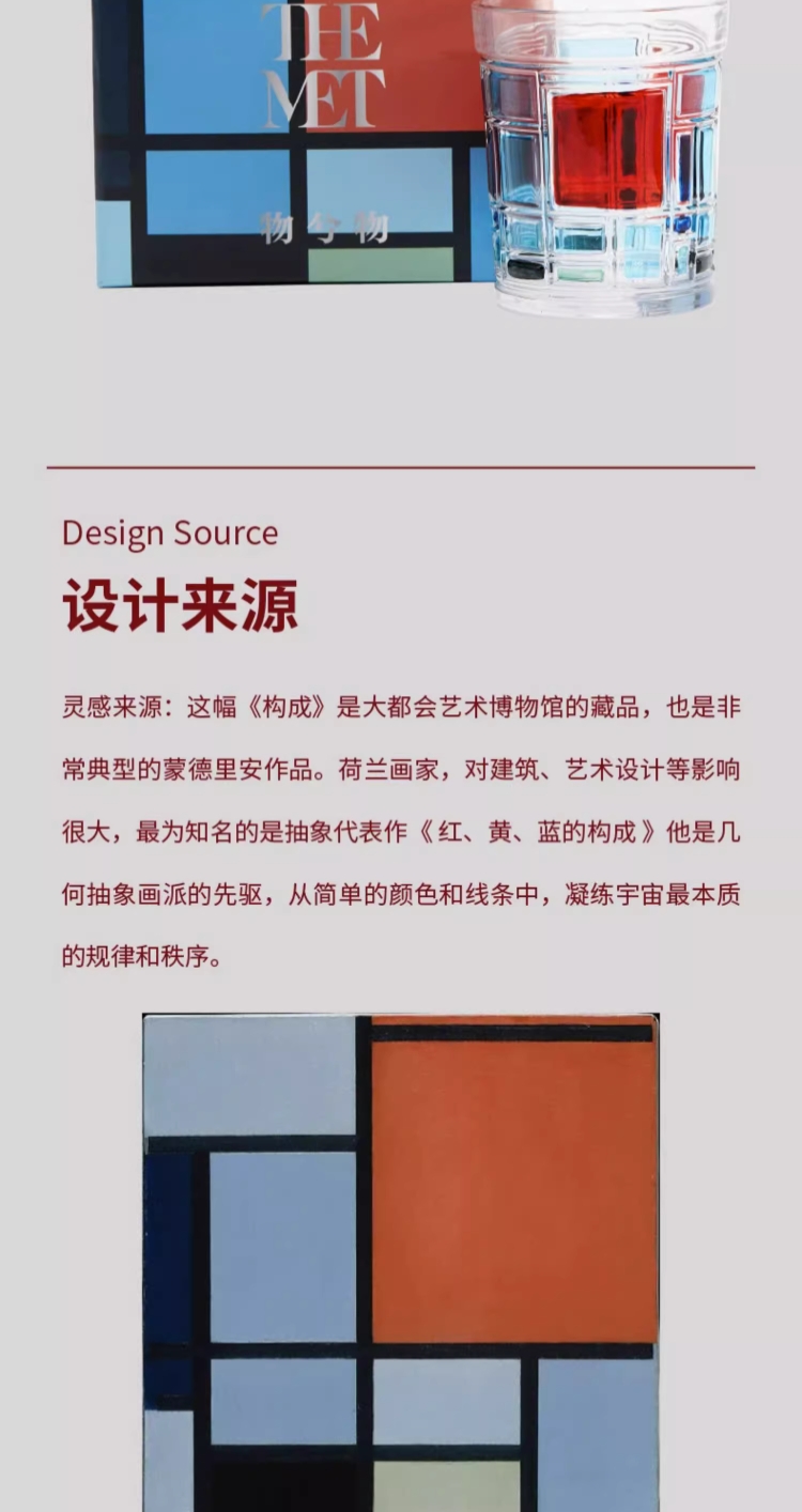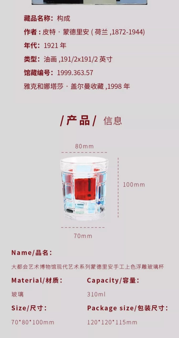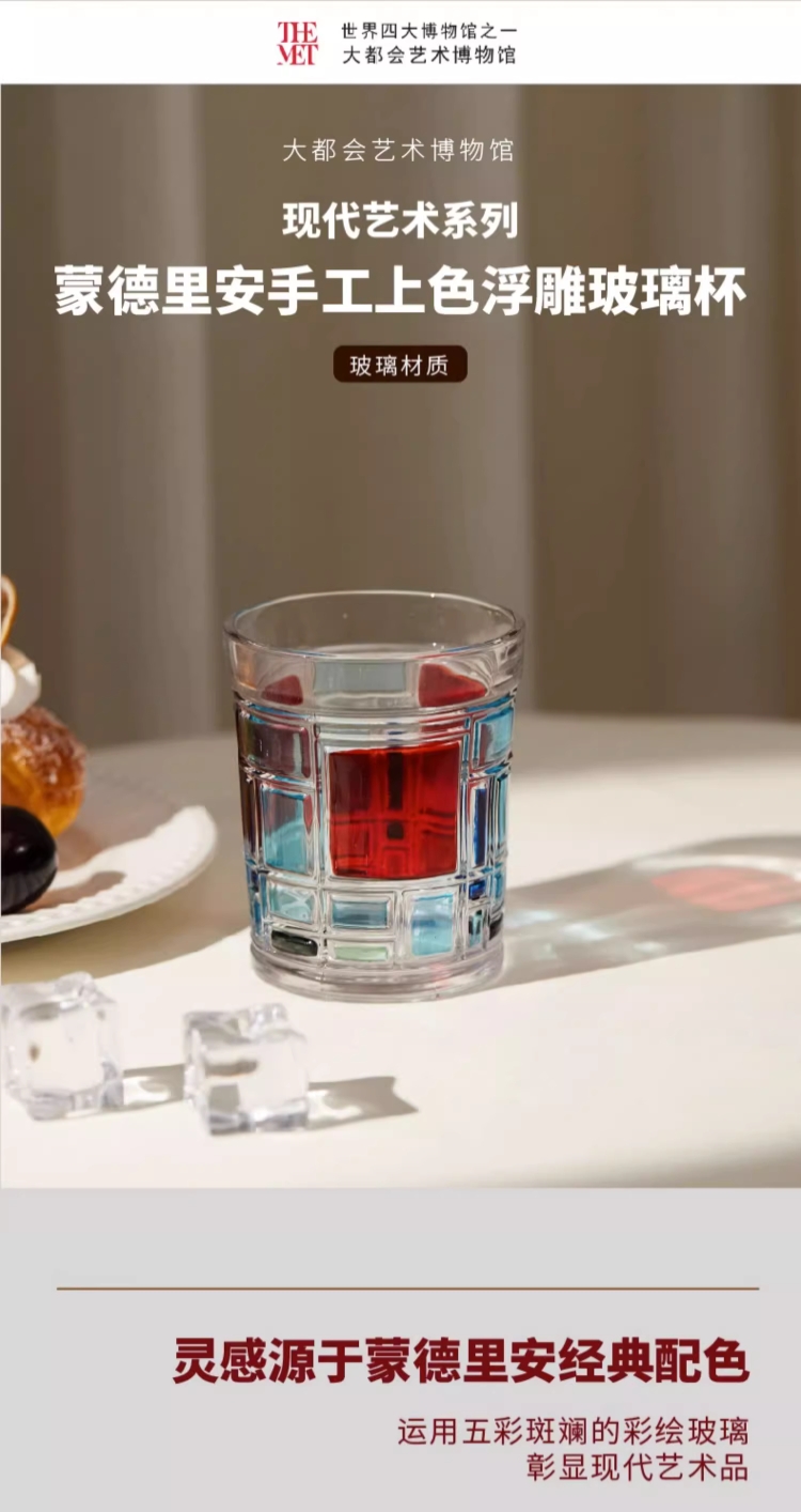 大都会艺术博物馆现代艺术系列 蒙德里安手工浮雕玻璃杯礼盒310ml