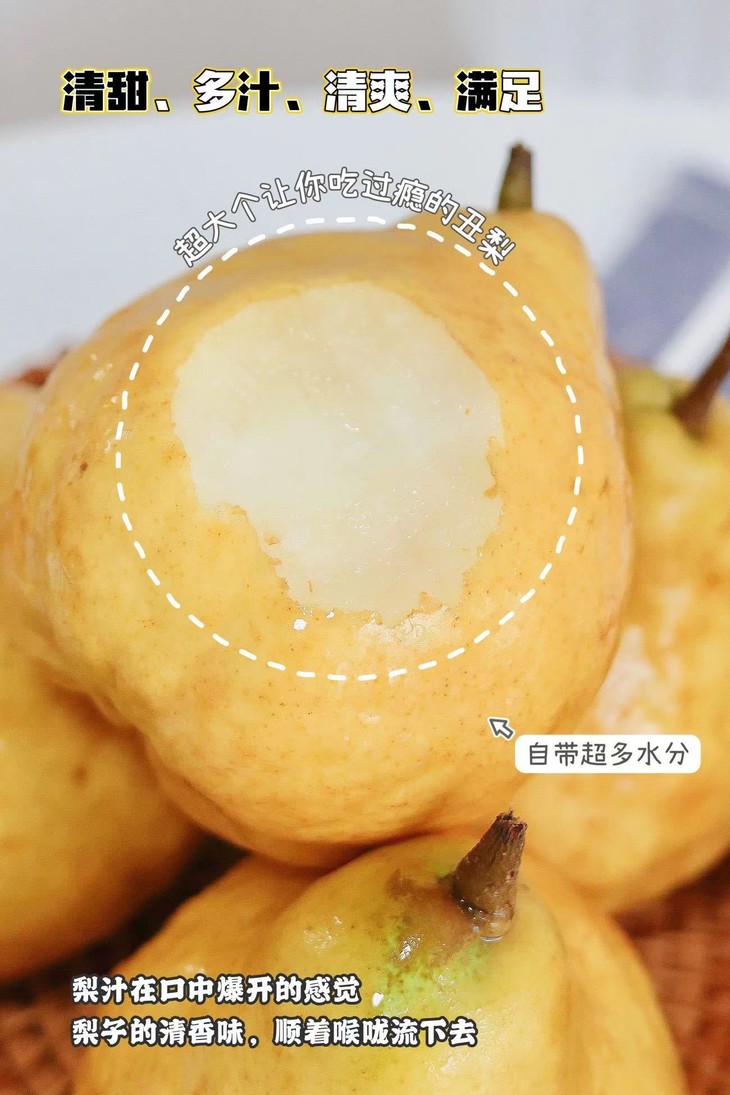 每一口都是充盈的汁水。秋冬干燥,感冒多发嗓子也容易干痒,这时候吃上一个丑梨,瞬间感觉全身细胞都吸饱水,润透了!