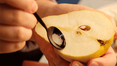 绵软如乳酪,熟透后的丑梨,果肉细腻到无需用力咀嚼,用勺子口就能舀着吃,口感堪比冰淇淋