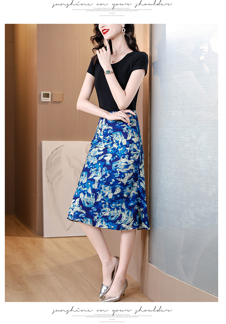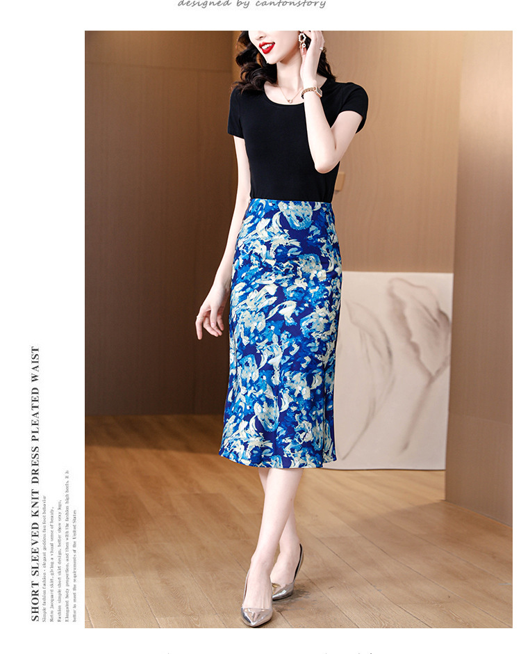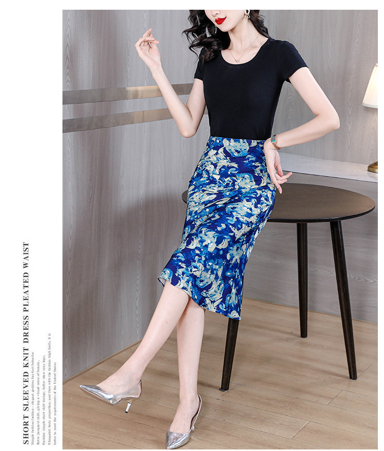 气质感高腰修身显瘦,荷叶边碎花鱼尾包臀裙AHM-yme7097