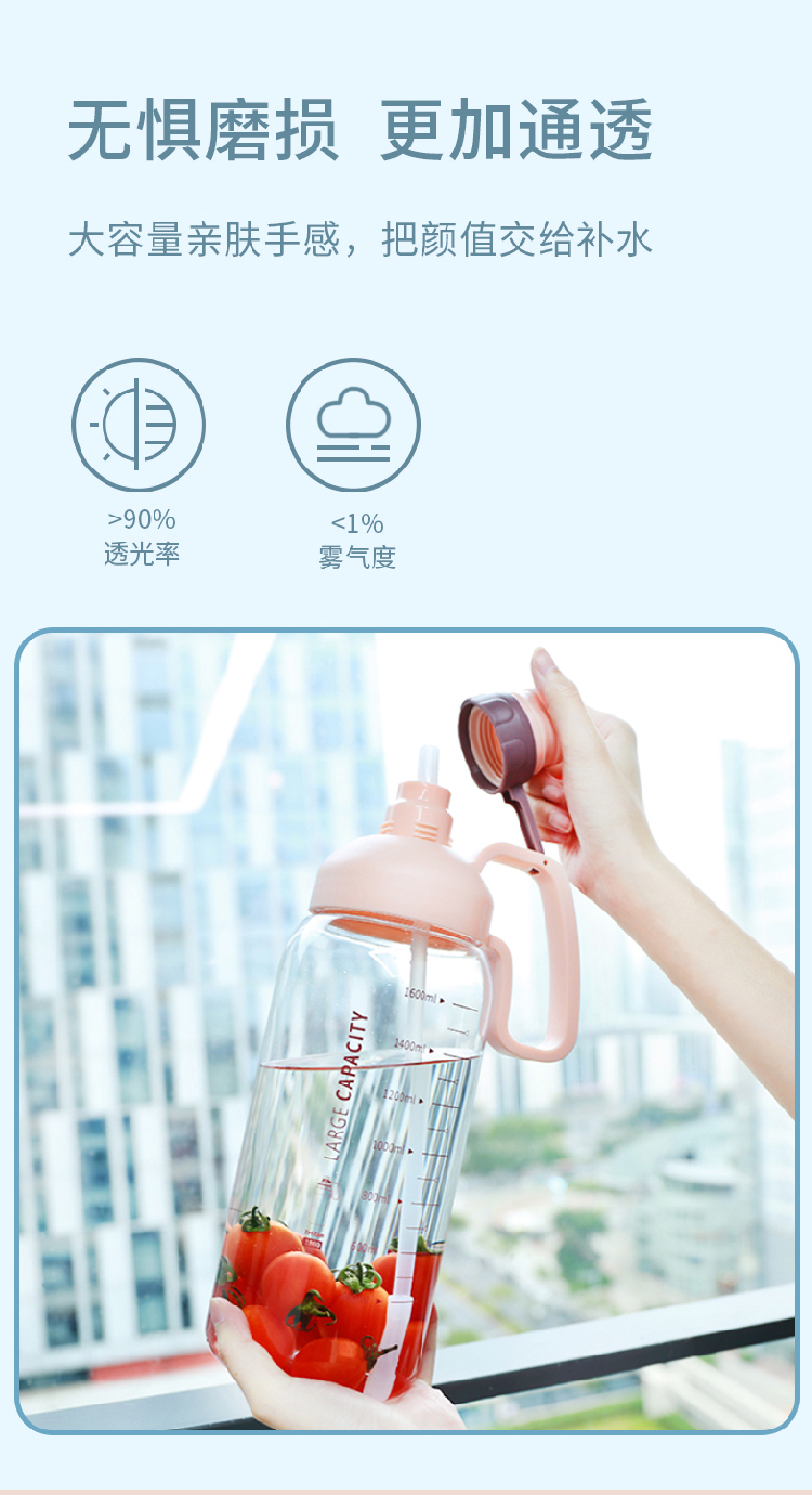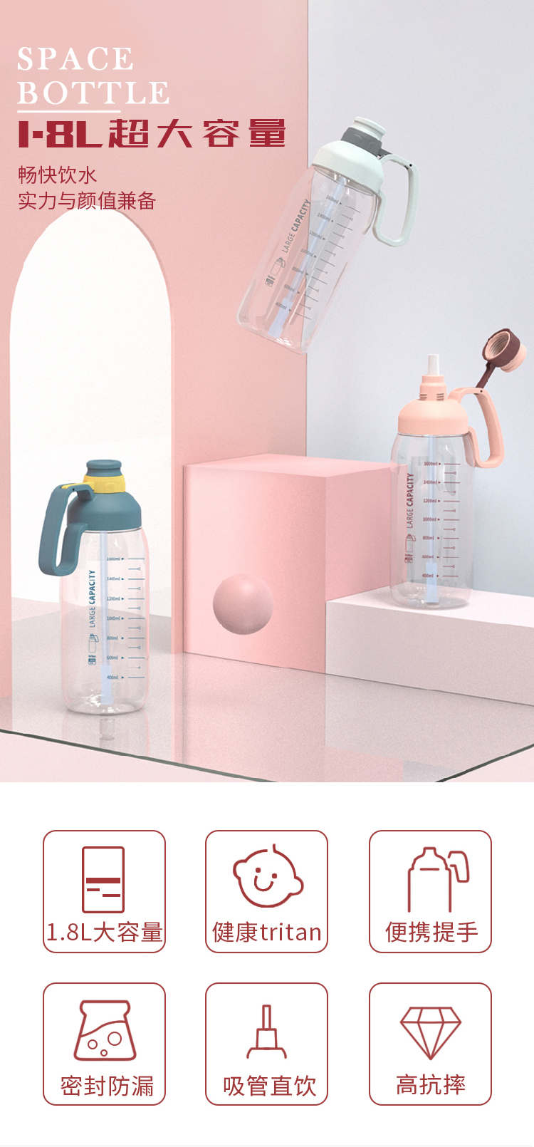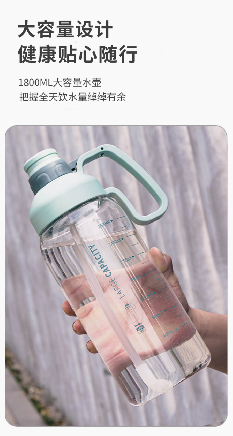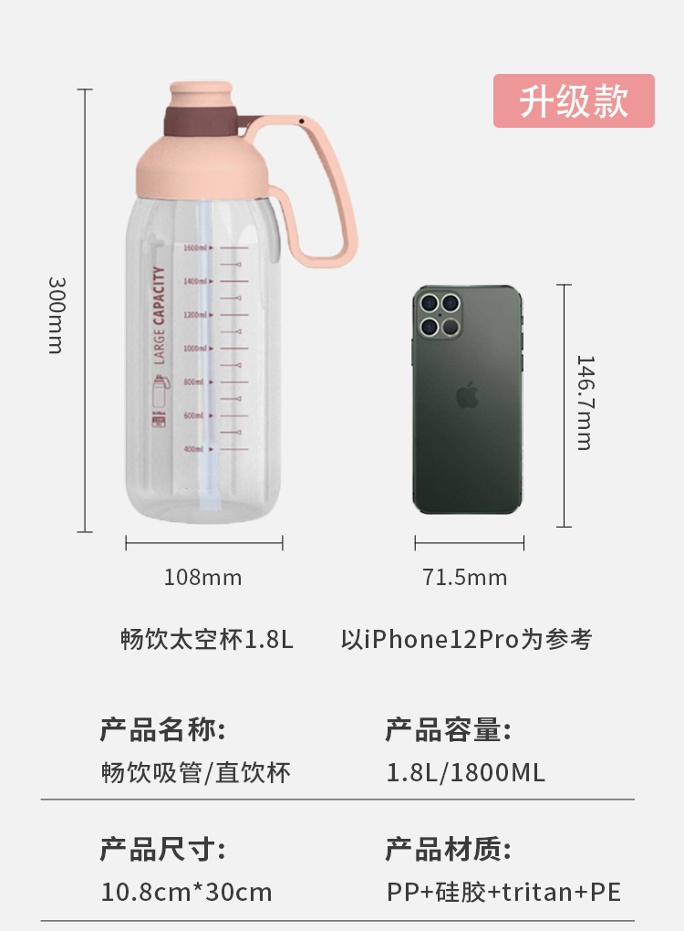 【1.8L畅饮水杯】网红明星同款带刻度塑料水杯 大容量便携水瓶太空杯户外运动水壶