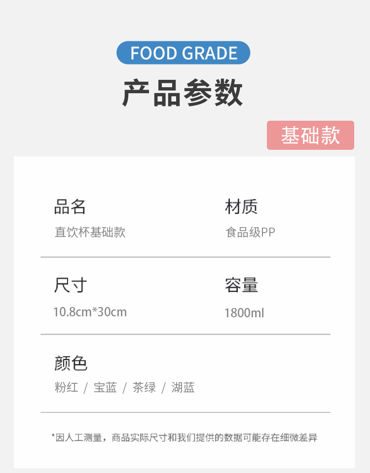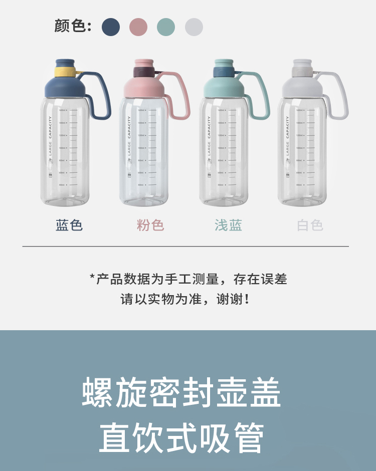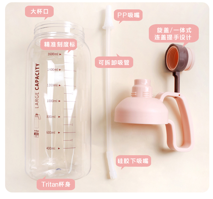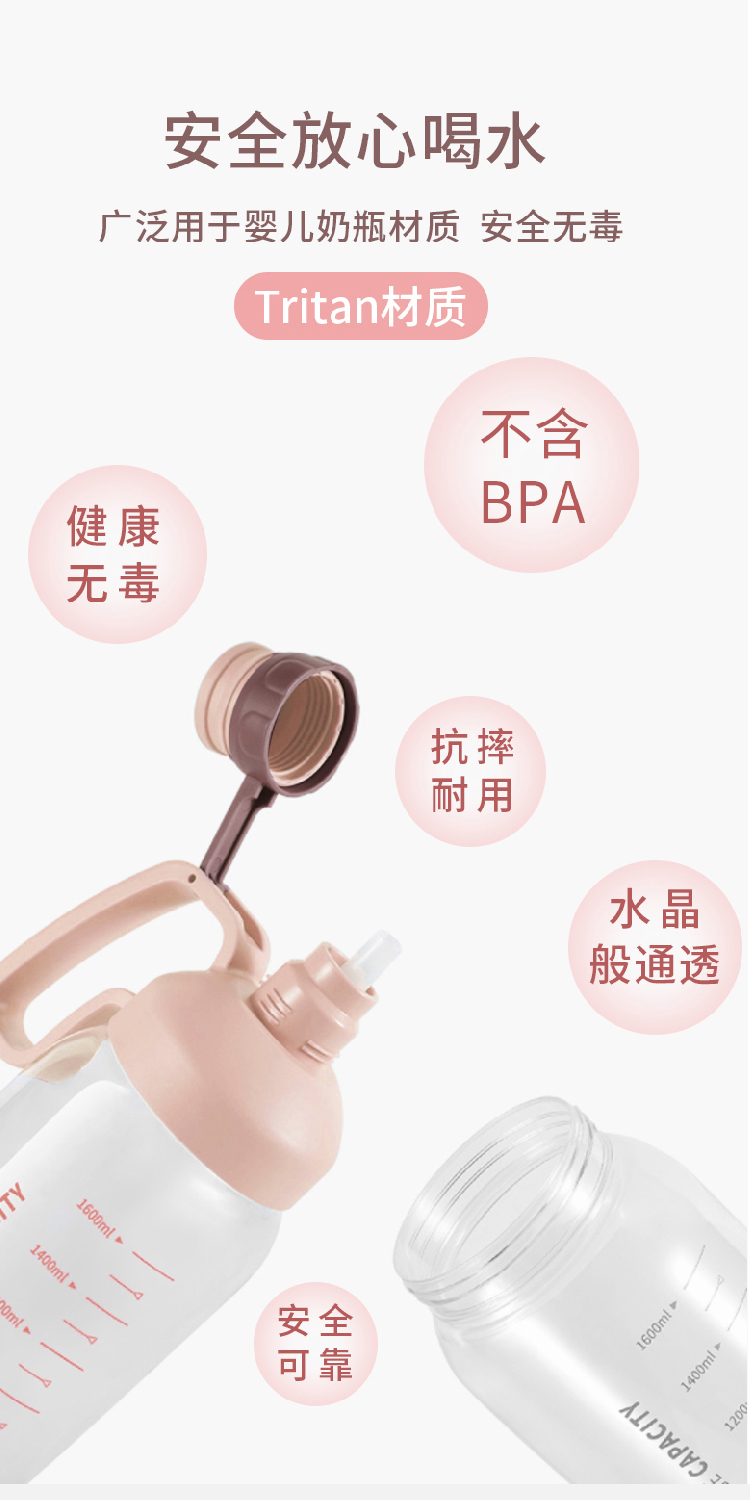 【1.8L畅饮水杯】网红明星同款带刻度塑料水杯 大容量便携水瓶太空杯户外运动水壶