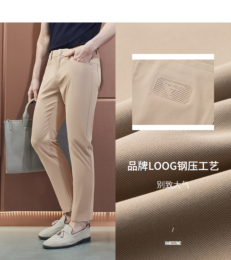 【高端系列】柒牌索罗娜休闲裤男2024夏季新款中青年高弹直筒长裤126H72680