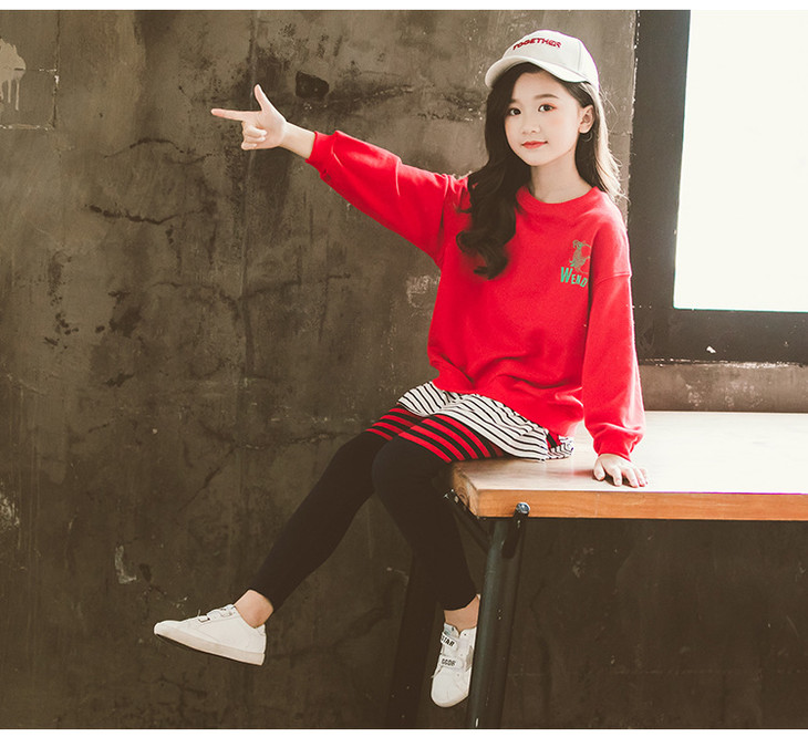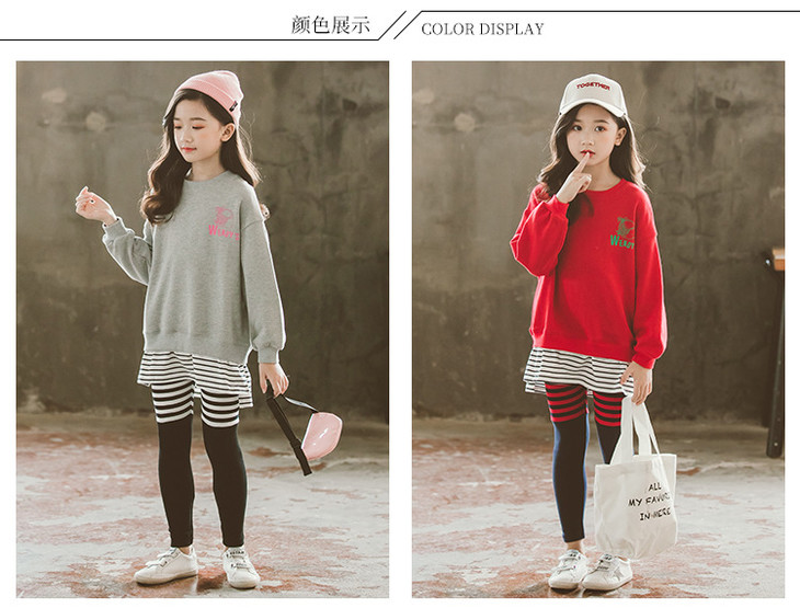 【童装】中大童卫衣条纹裤套装