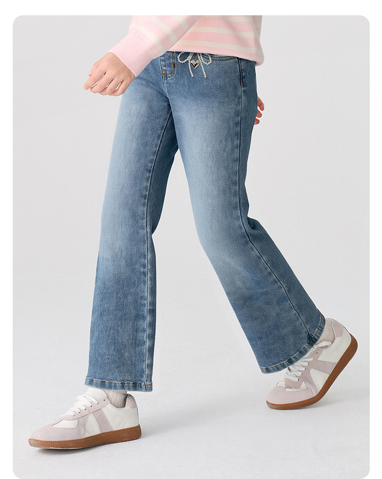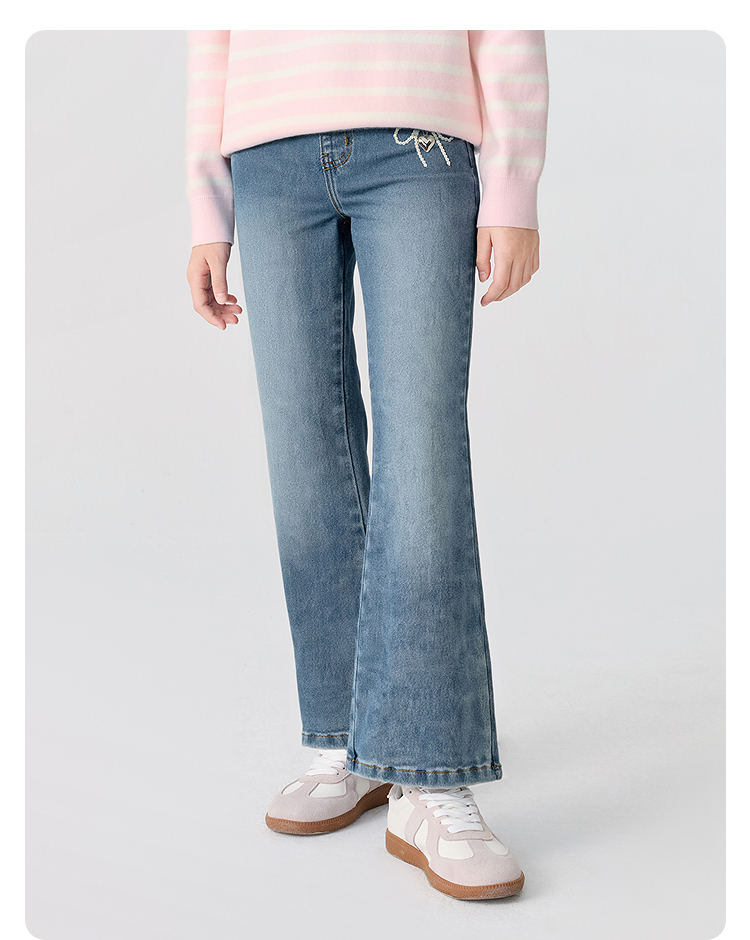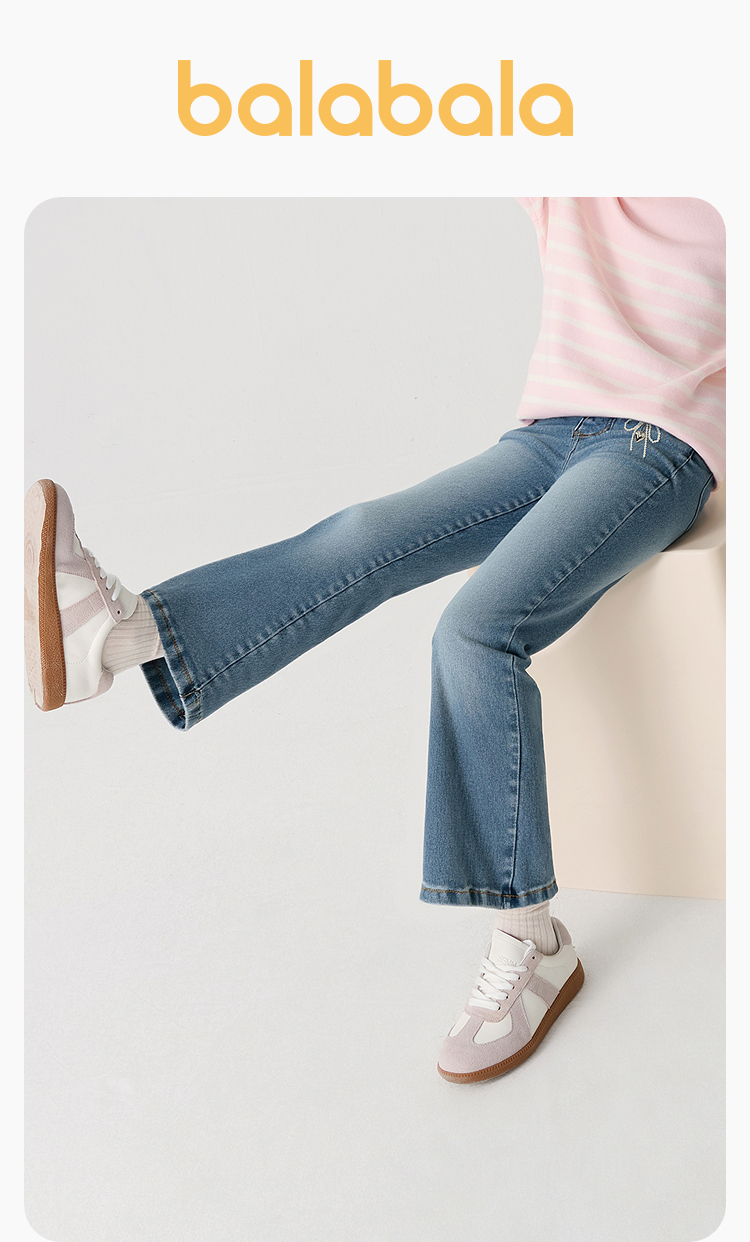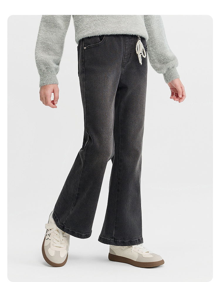 【商场同款】巴拉巴拉儿童裤子女童冬加绒牛仔长裤2025新款喇叭裤