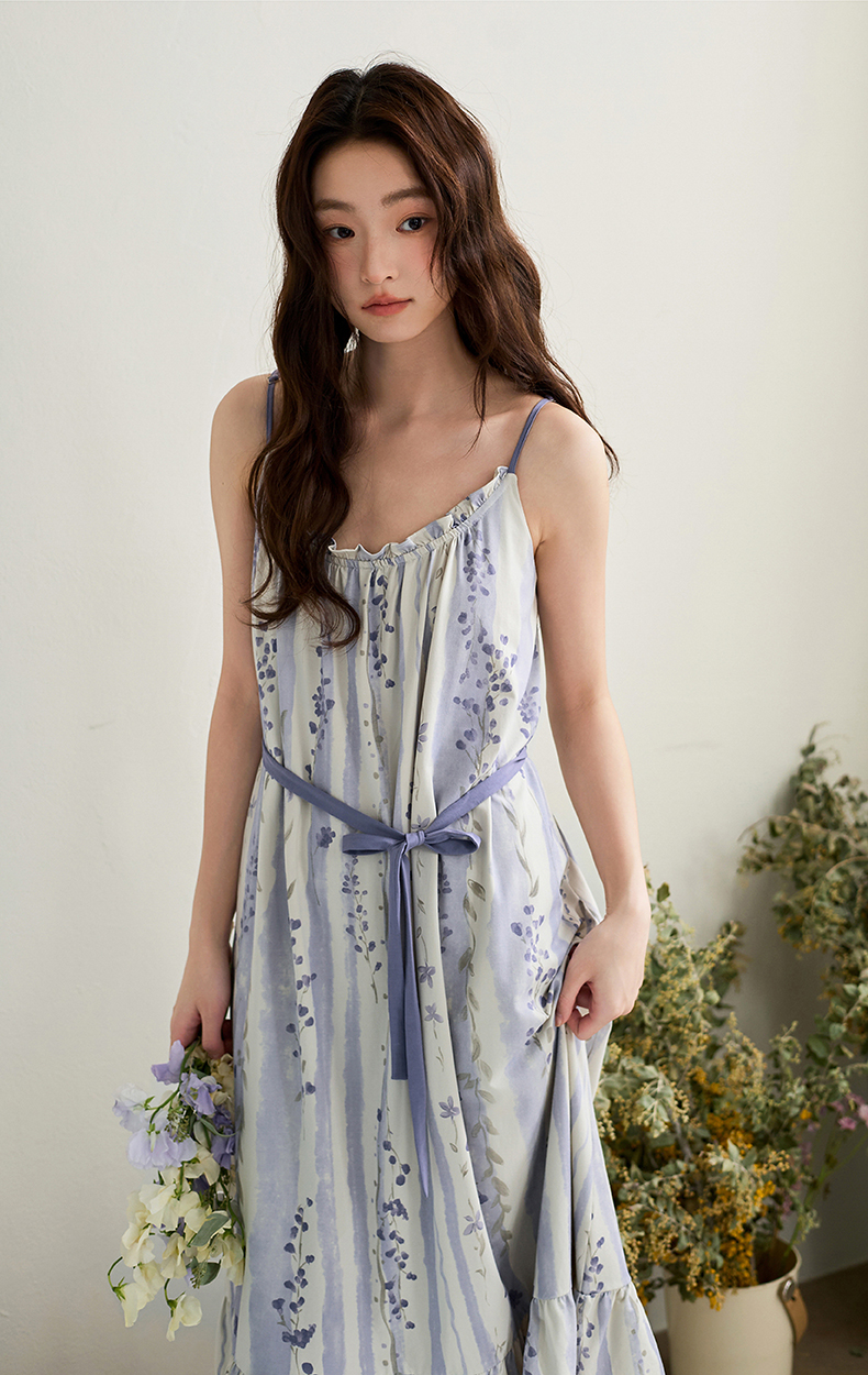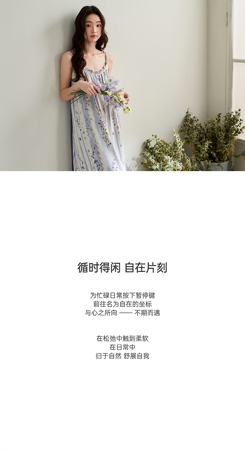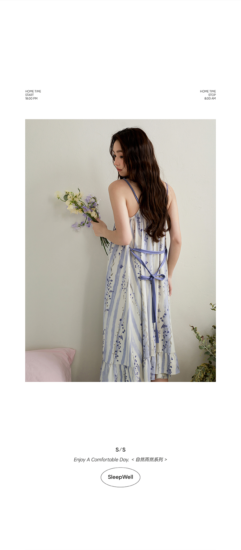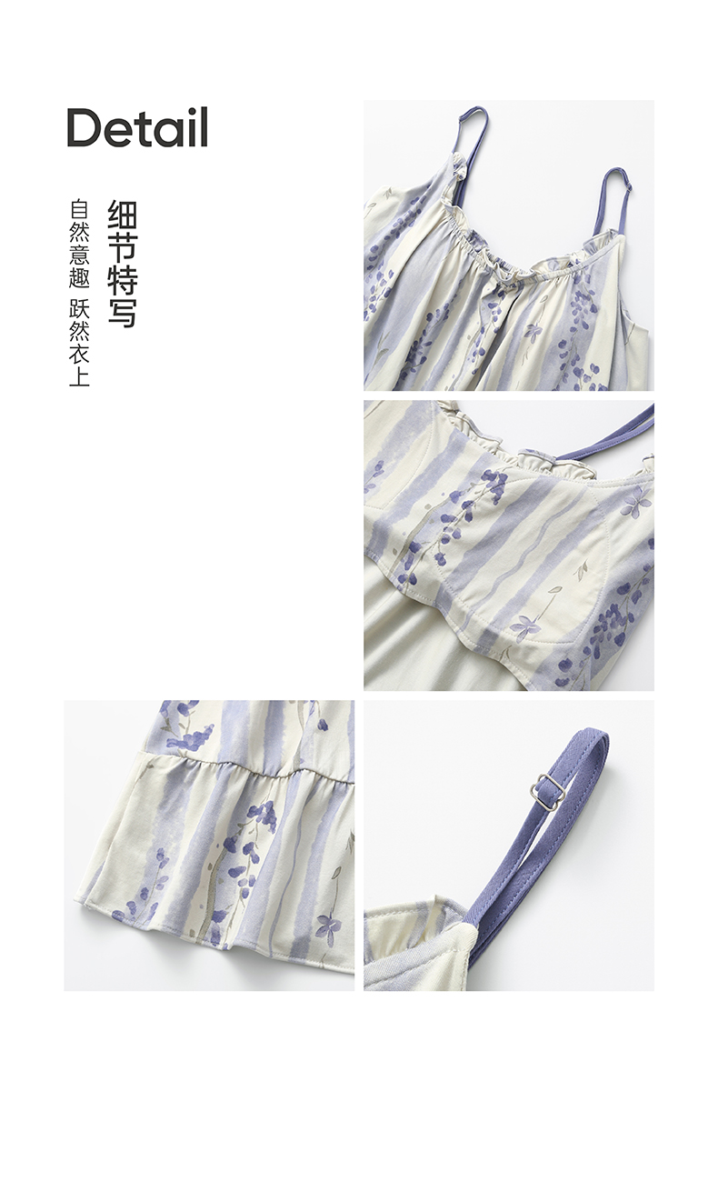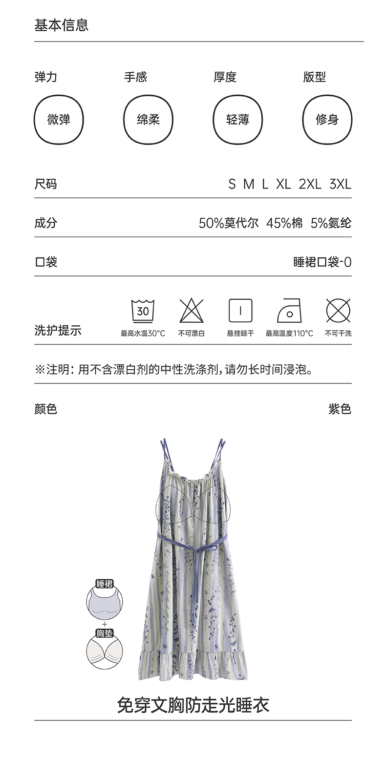 芬腾【带胸垫】防凸点睡裙女夏季新款莫代尔碎花性感吊带裙外穿休闲