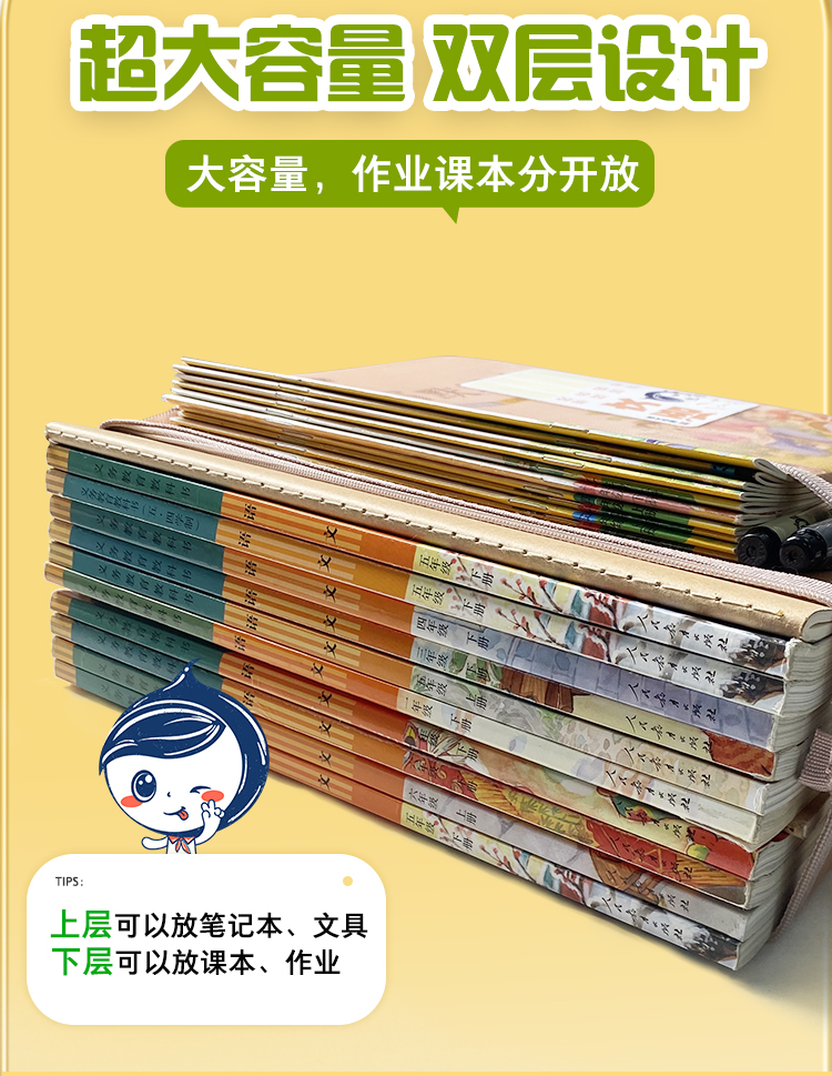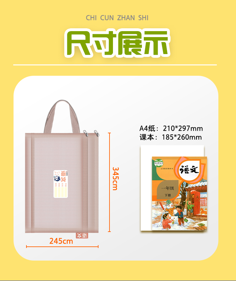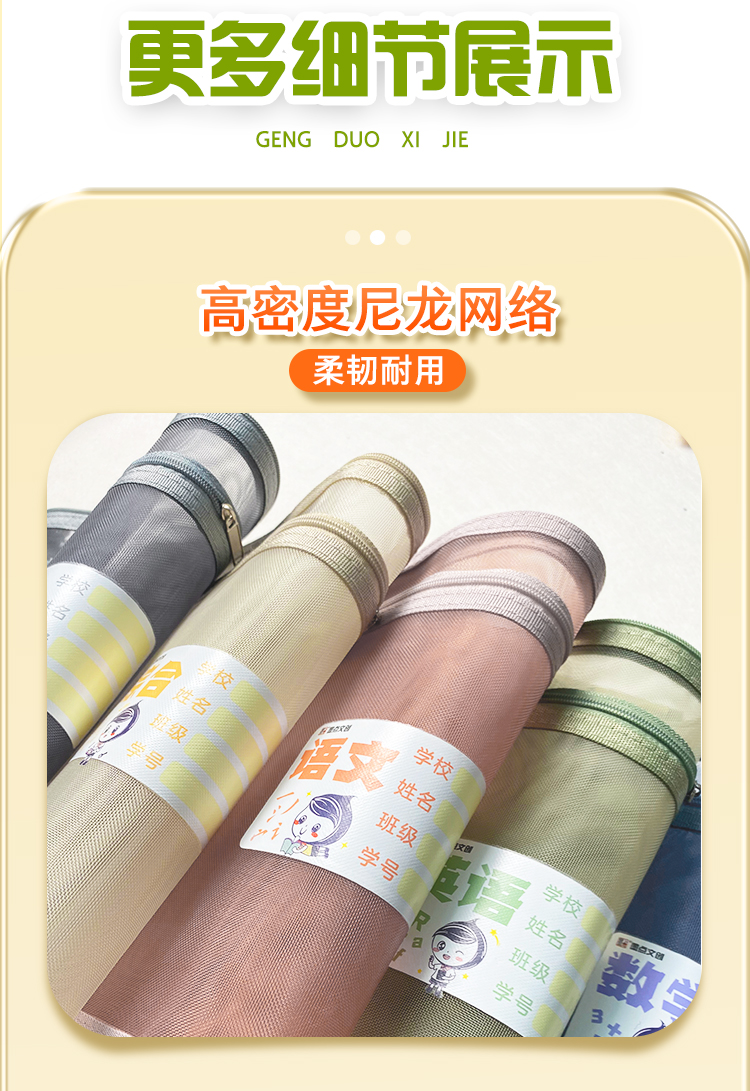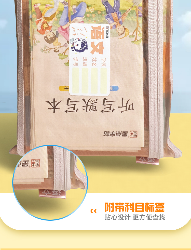 墨点 科目分类袋 小学生双层加厚大容量学科手提式拉链款A4透明网纱资料课本作业试卷收纳袋