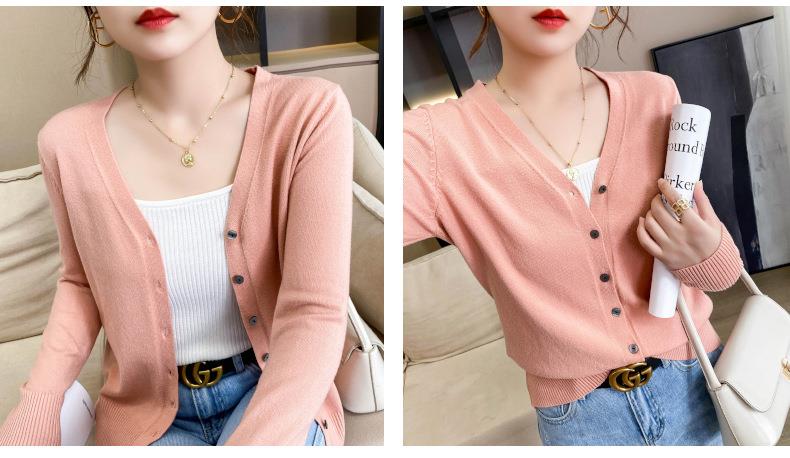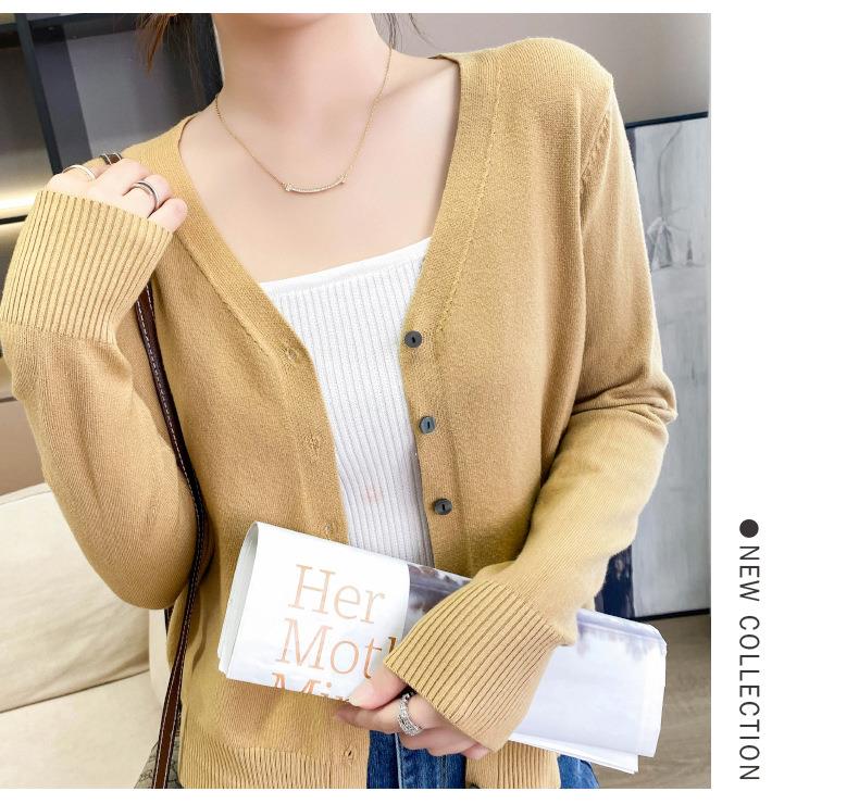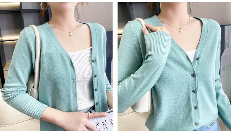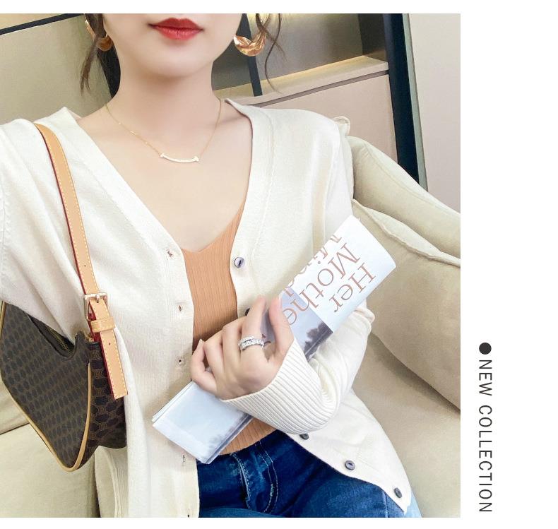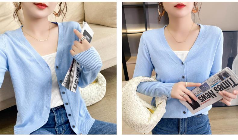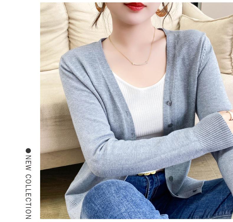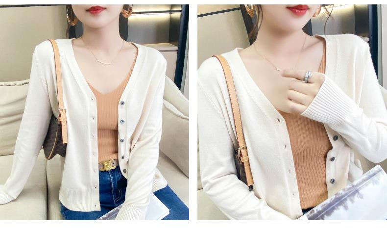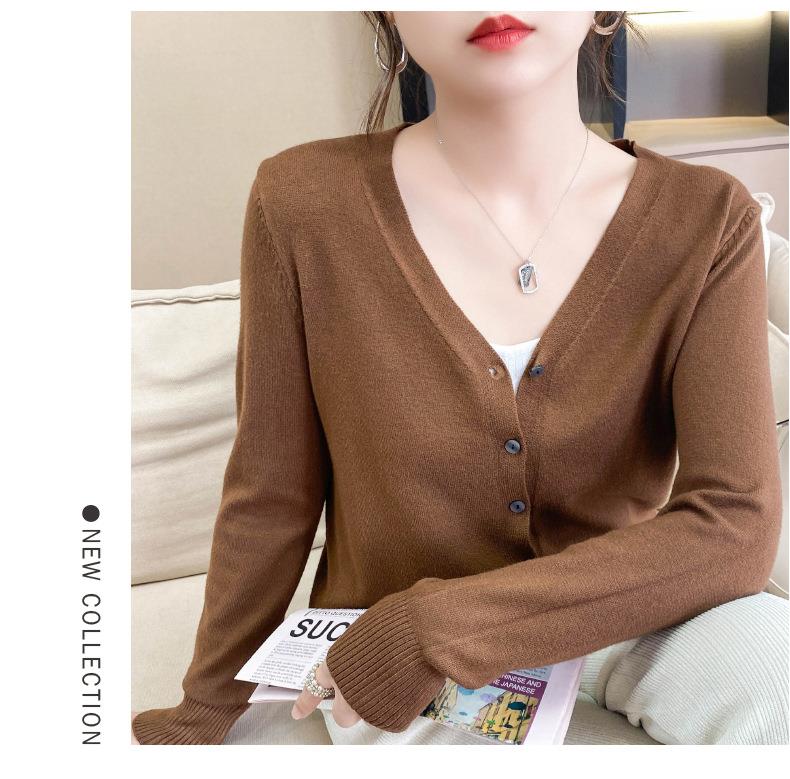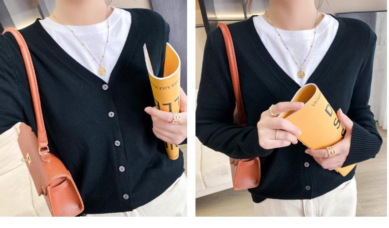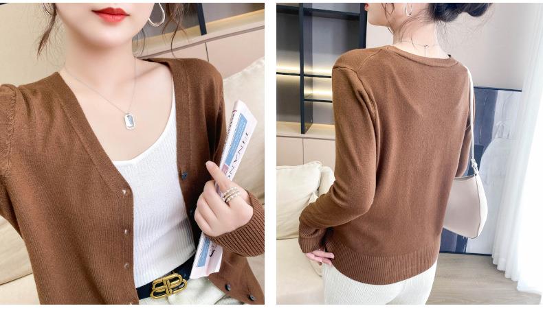 新款2023春季OL气质针织开衫V字领直筒型毛衣女式针织衫