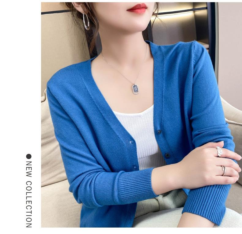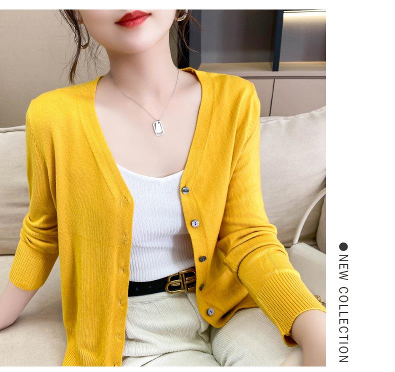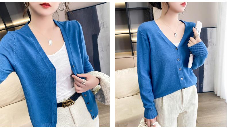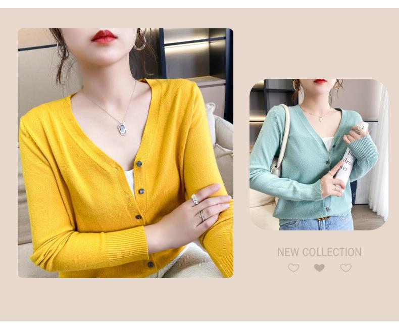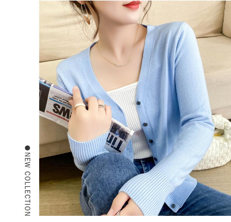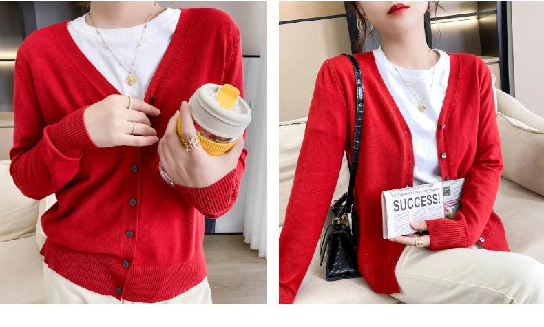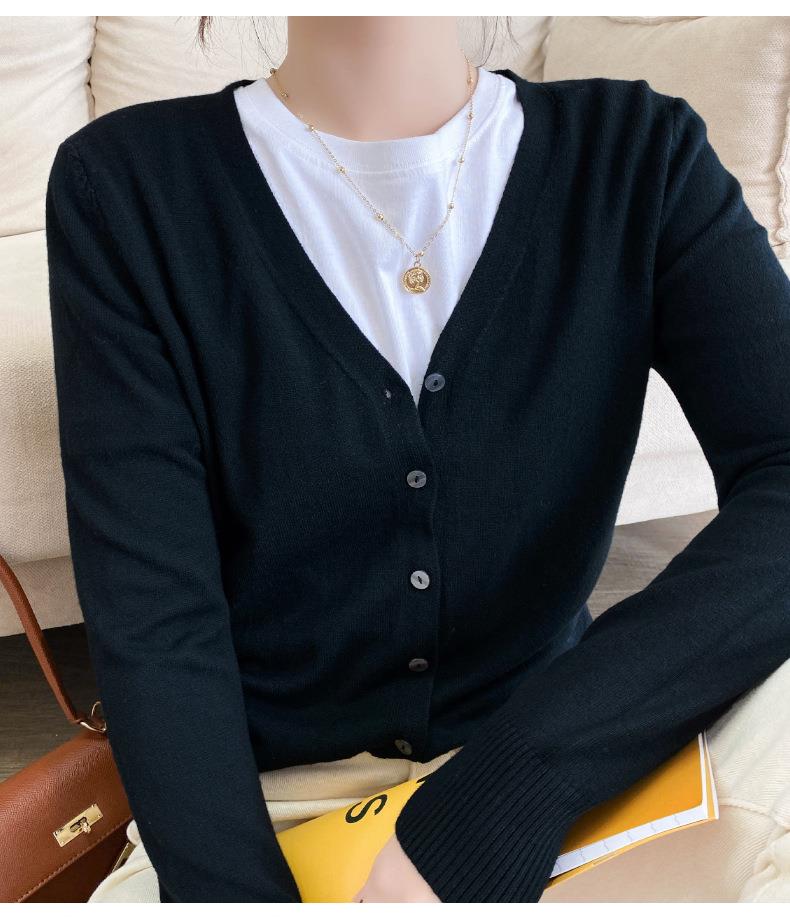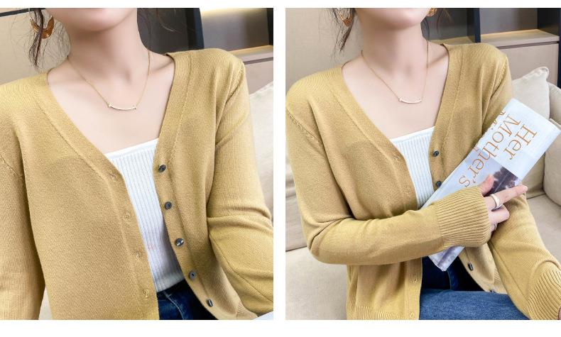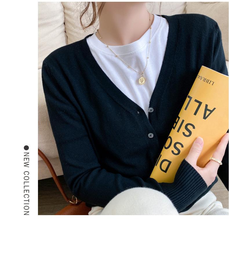 新款2023春季OL气质针织开衫V字领直筒型毛衣女式针织衫